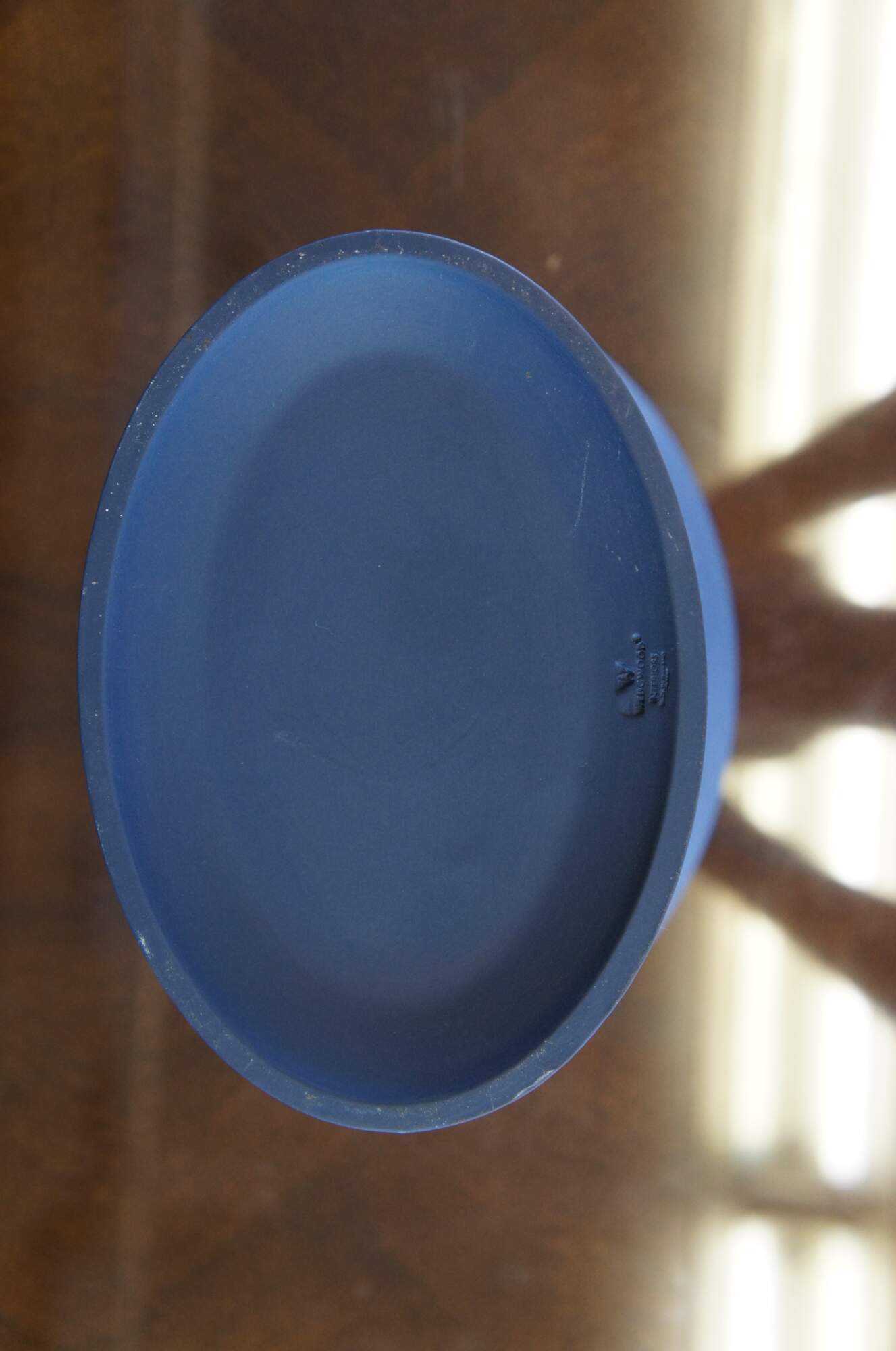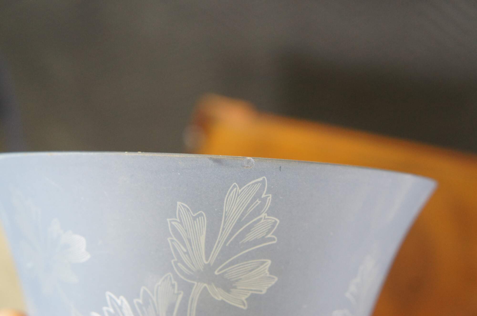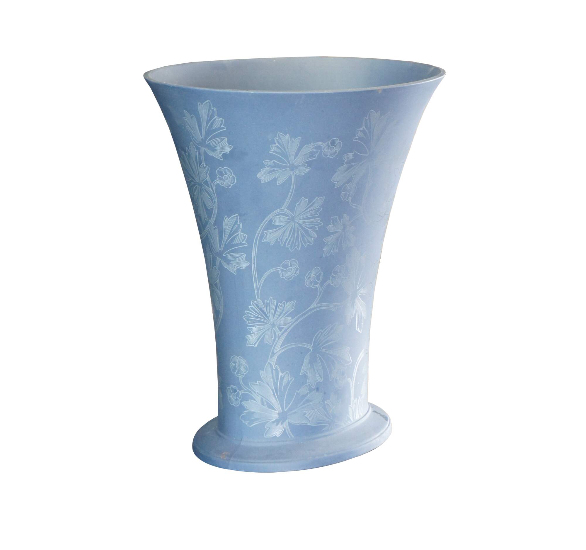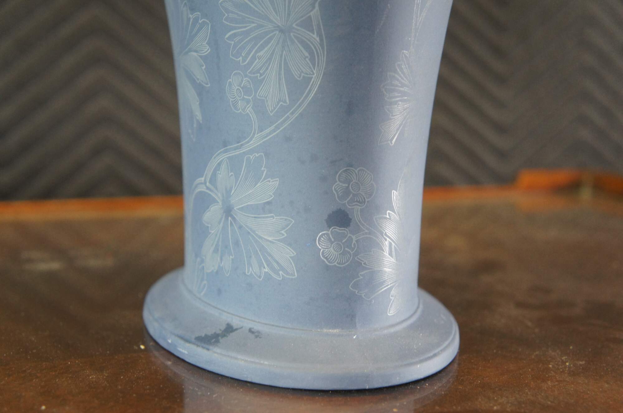 Vintage Wedgwood Interiors flared vase featuring oval form with an etched floral leaf design and footed base.