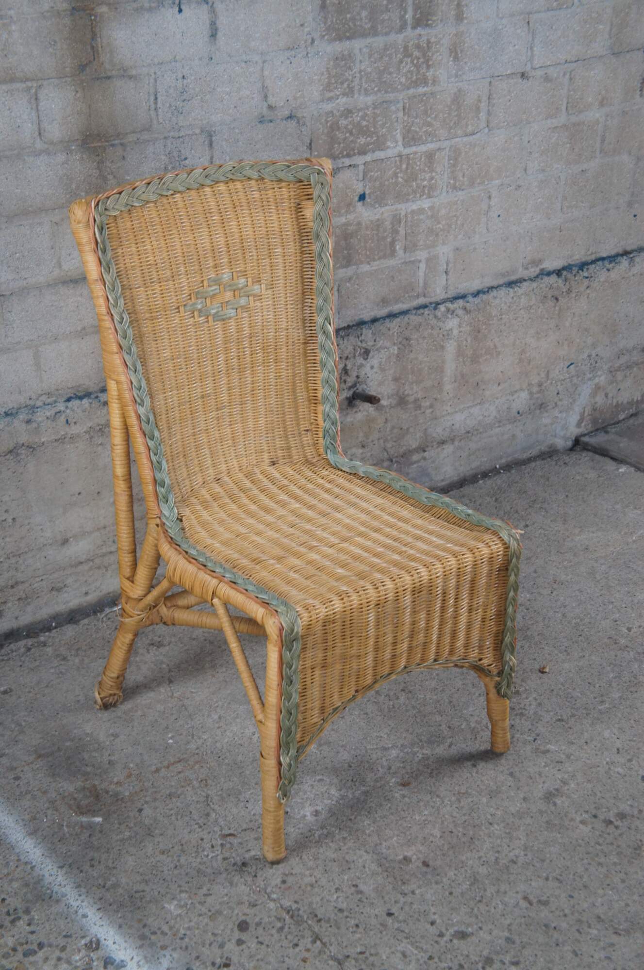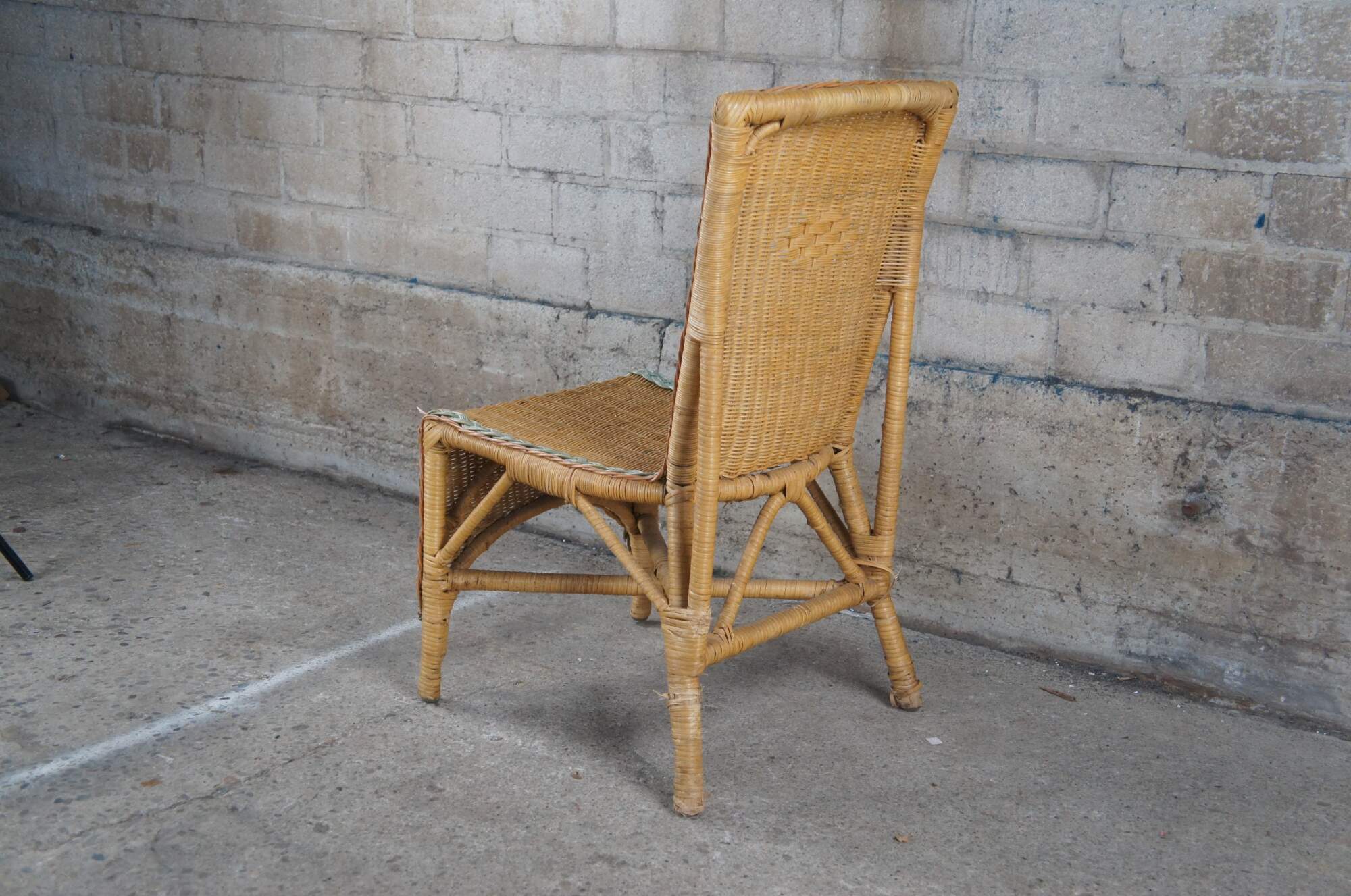Good vintage condition, wear and distressing commensurate with age and use, fraying / broken / missing rattan.