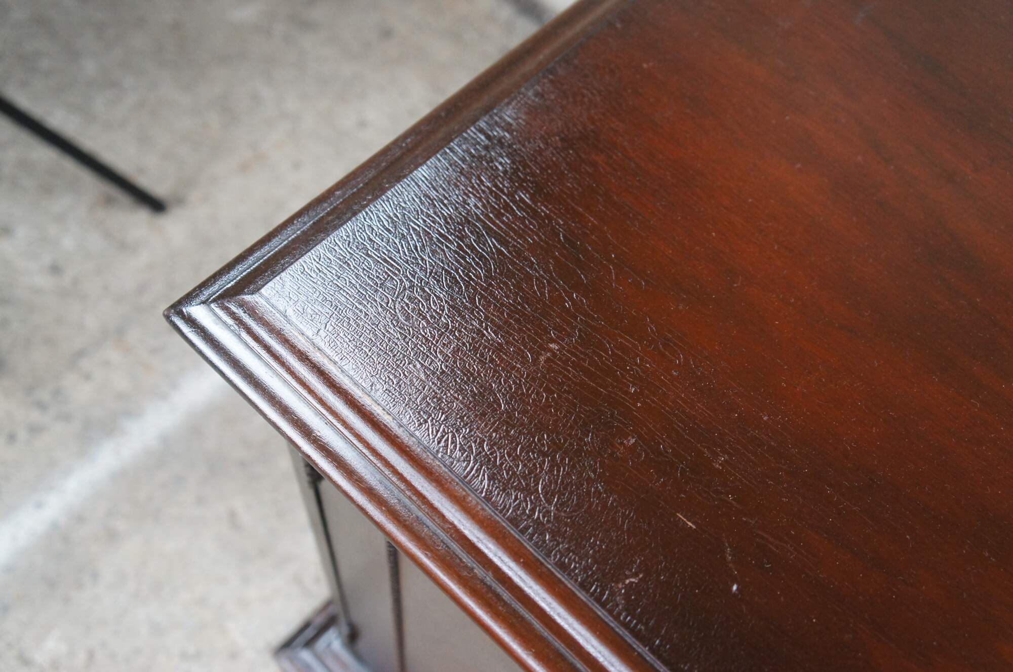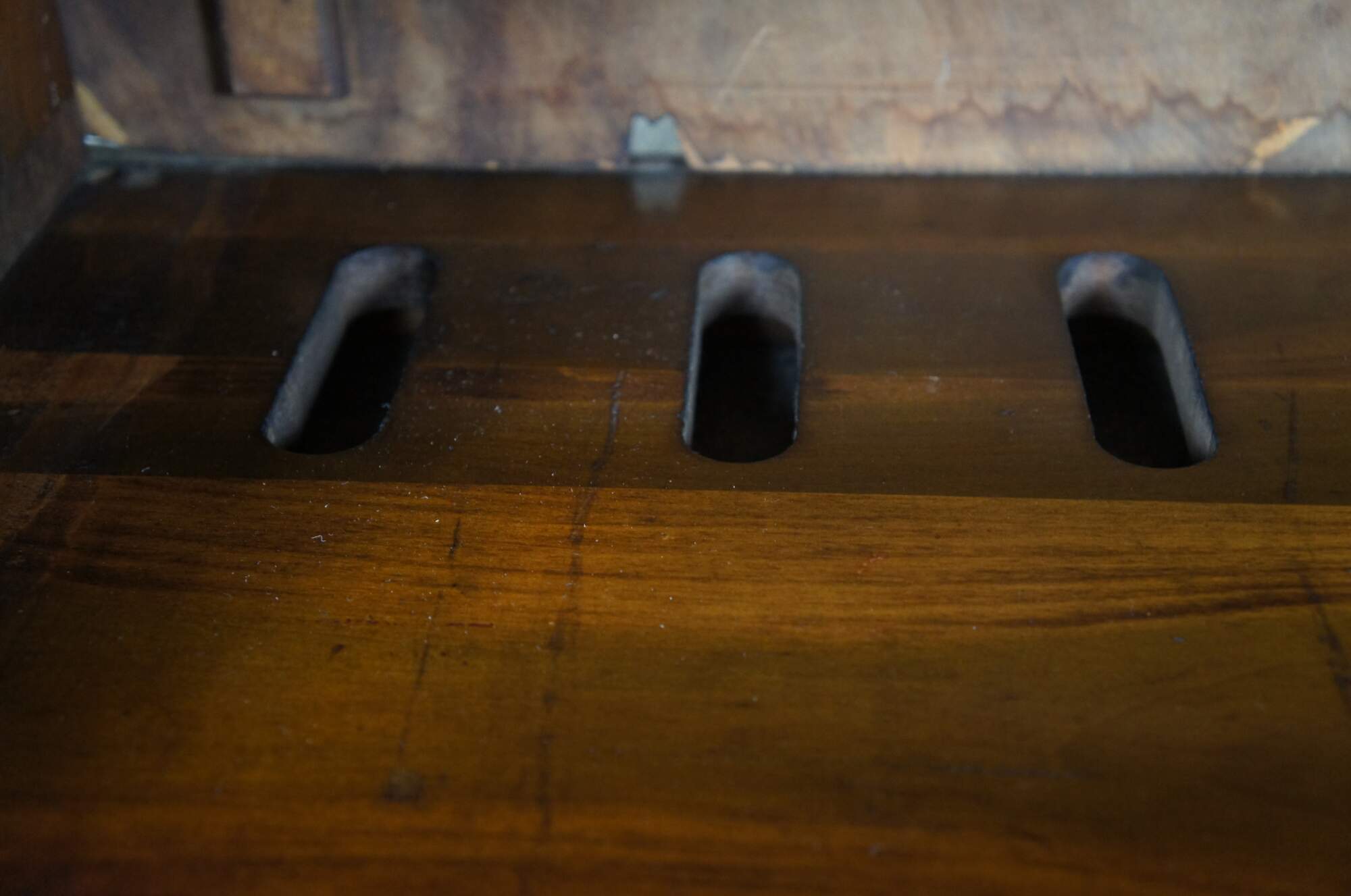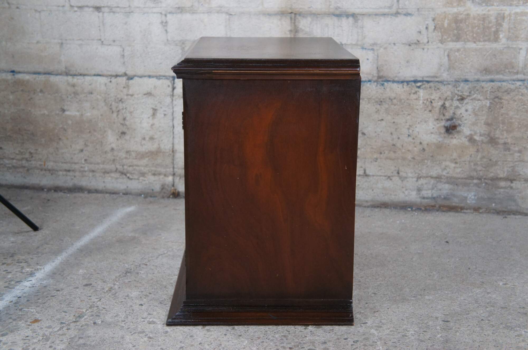 1940s vintage 2 door cabinet. Made from walnut with matchbook doors featuring beaded trim and acanthus carved center. The cabinet opens via lion head knocker pulls to a storage area with s helf. Vented along back left. This cabinet was originally on a stand. Most likely used for a tube radio. It will be a great console, record cabinet or side table.