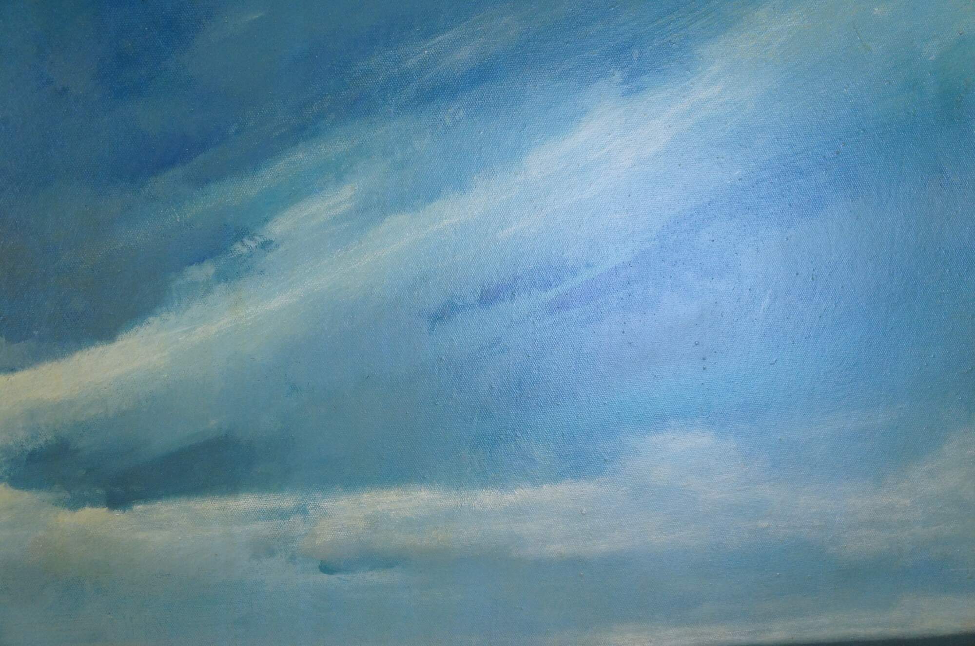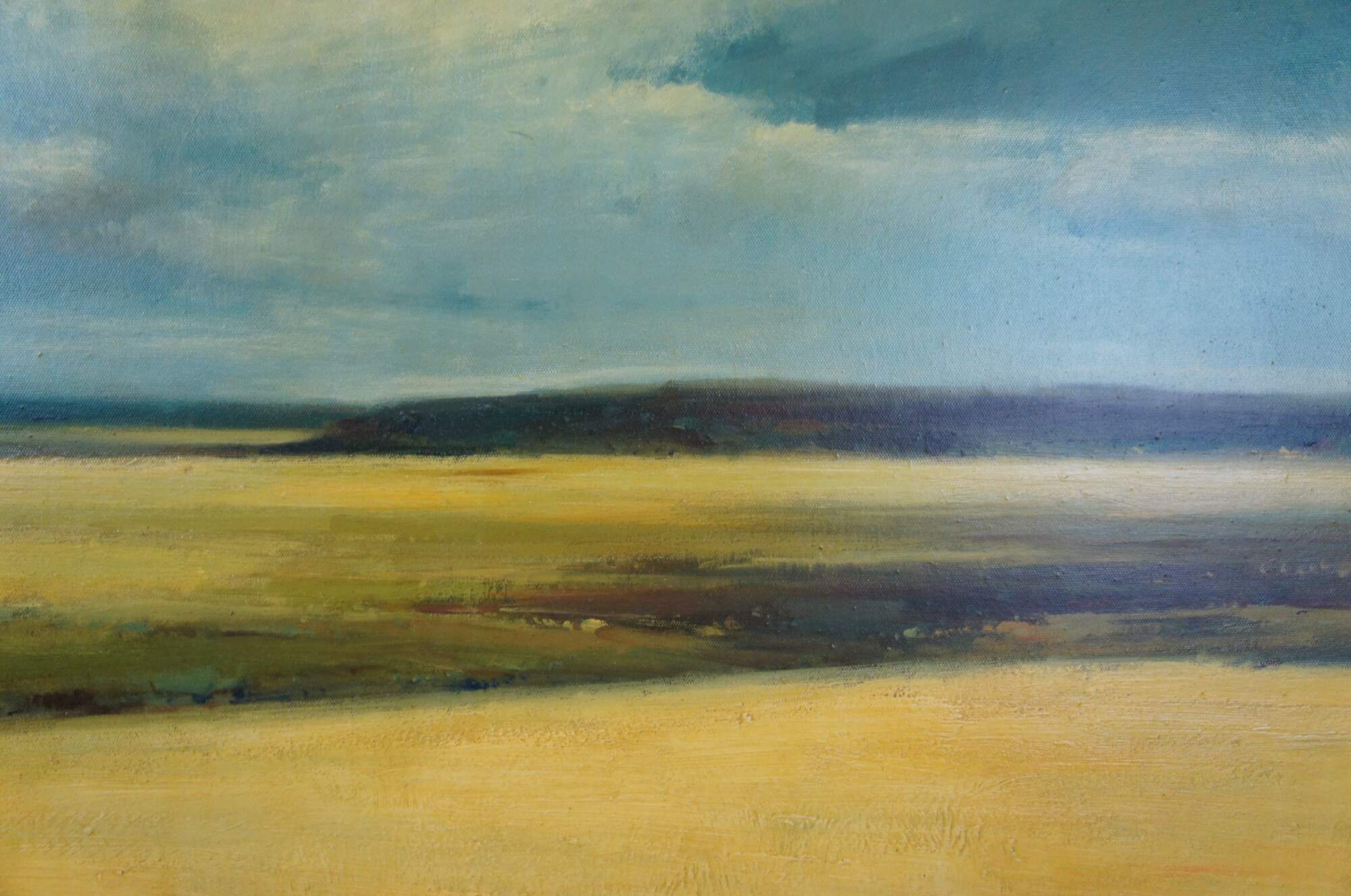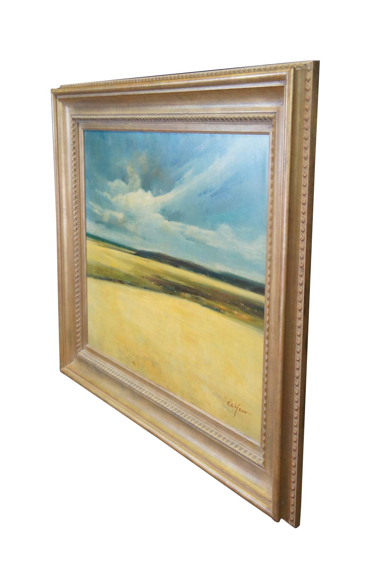 Zhao Huxie "Clifton" signed Prairie Landscape. An oil painting on canvas, framed in gold.