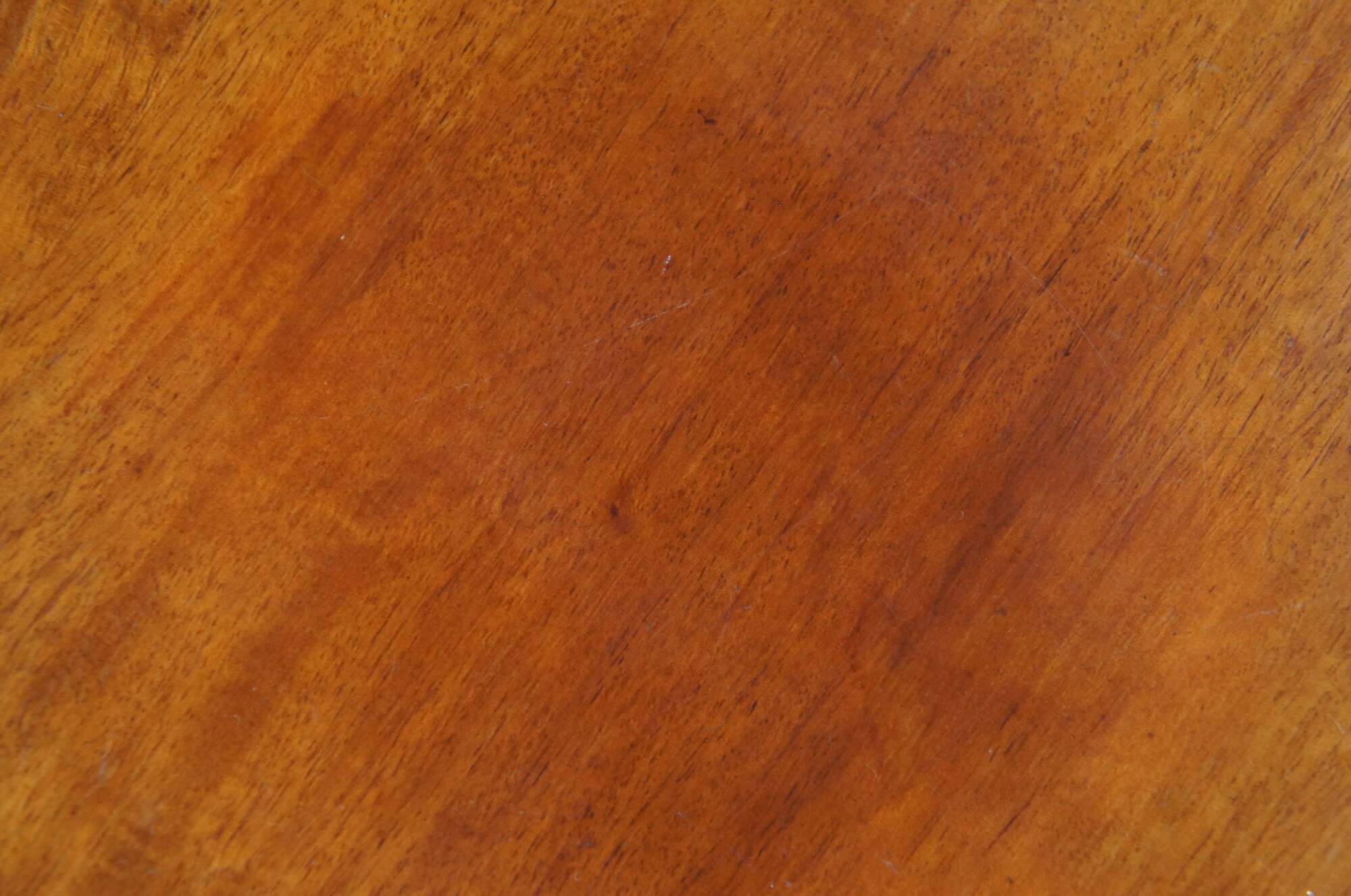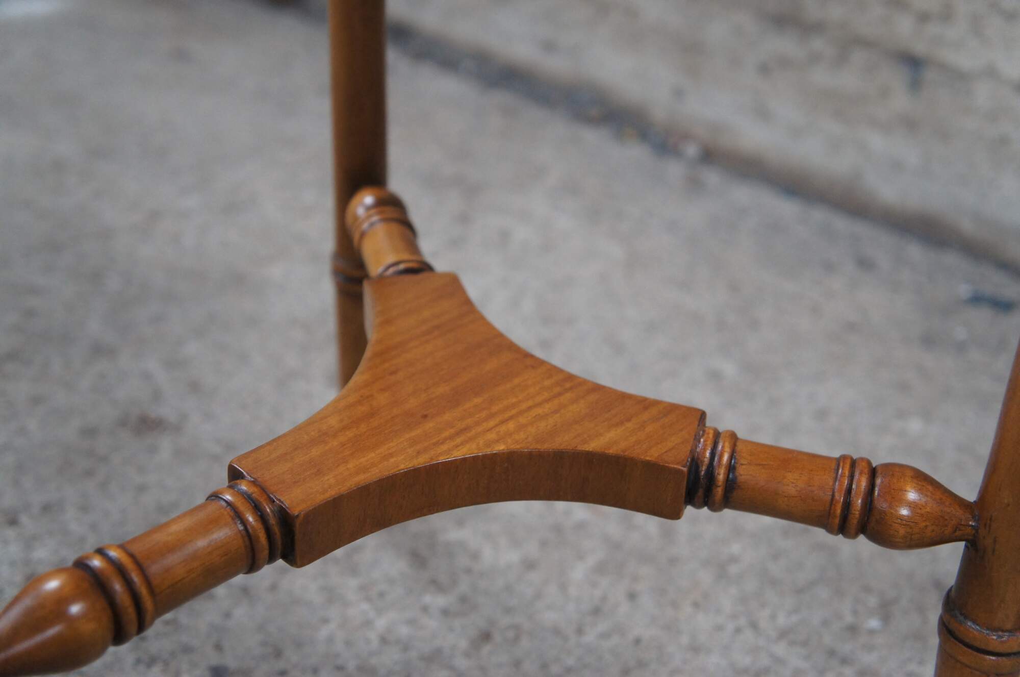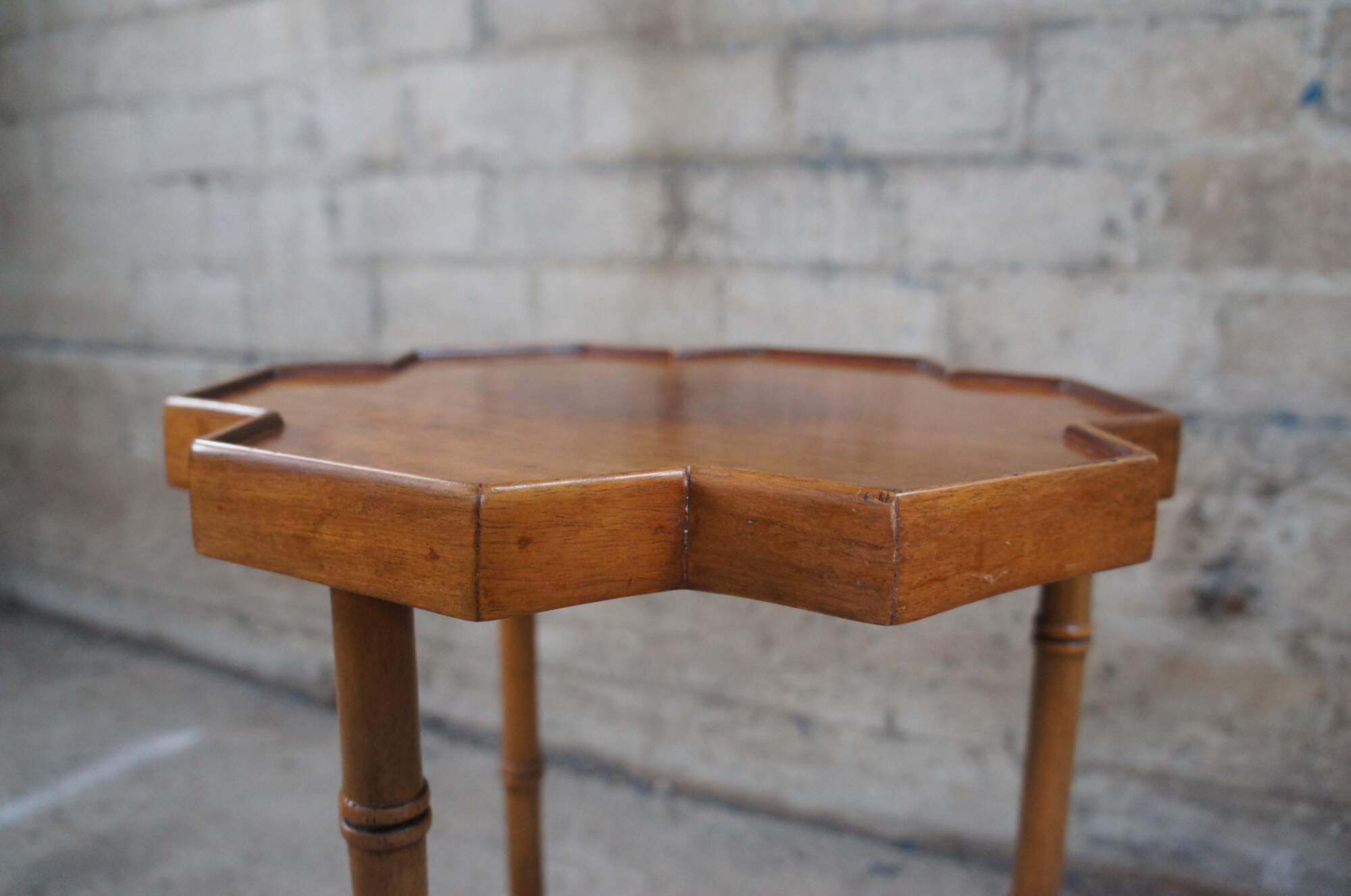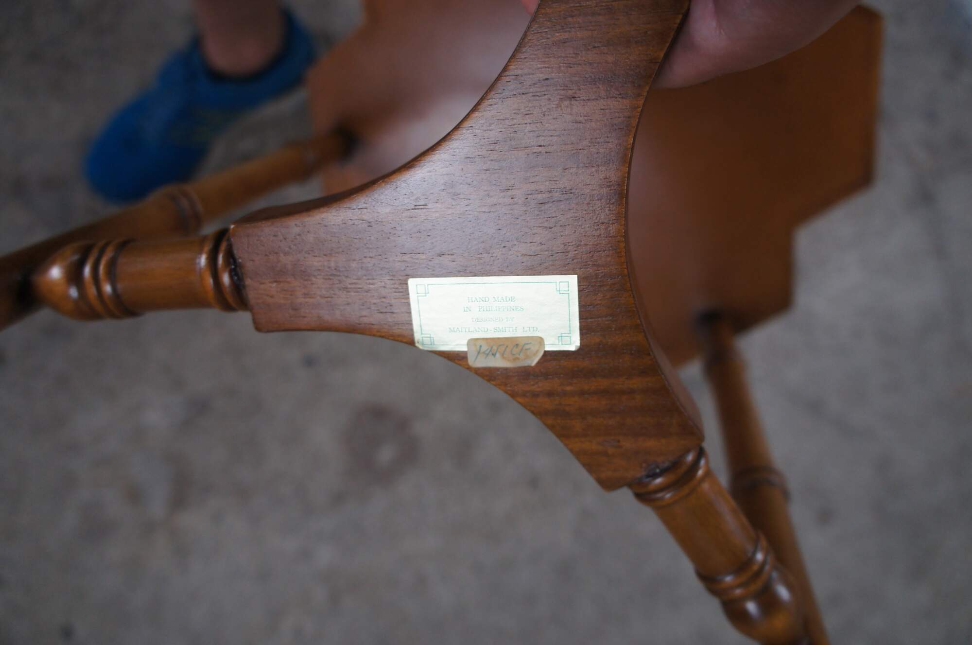 Handmade martini side table by Maitland Smith Ltd, circa 1990s. Features an inset honeycomb top over faux bamboo legs connected by a tripod stretcher. Made from solid mahogany.