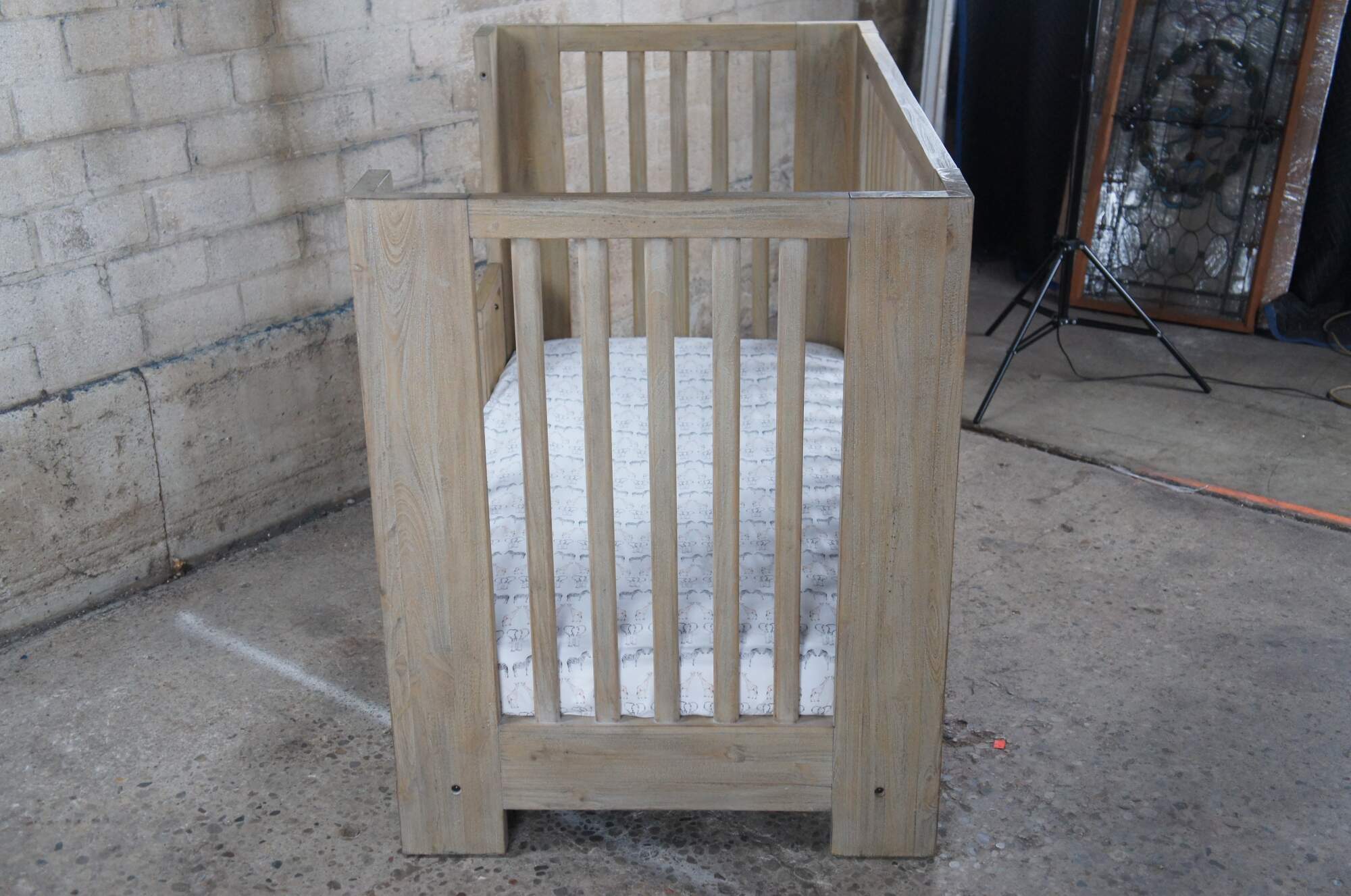Callum crib bed in Sandwashed Grey, convertable from crib to toddler bed, includes mattress and giraffe sheet. Stout corner posts and simple, straight lines define the Callum Crib. A protective safe haven for little ones, it combines tried-and-true functionality with a pleasingly modern aesthetic.