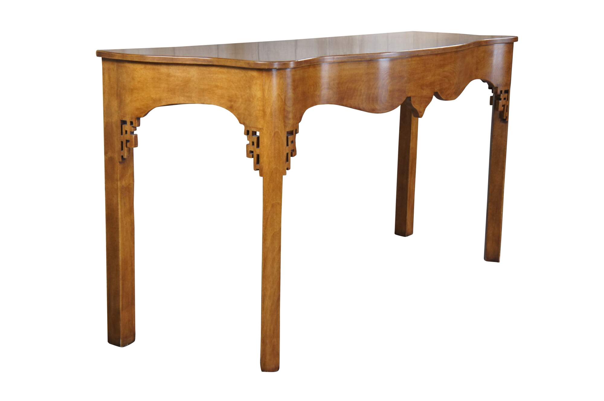 Vintage Minton Spidell Lyford Console or sideboard table. Made of walnut featuring Chinese Chippendale and serpentine styling.