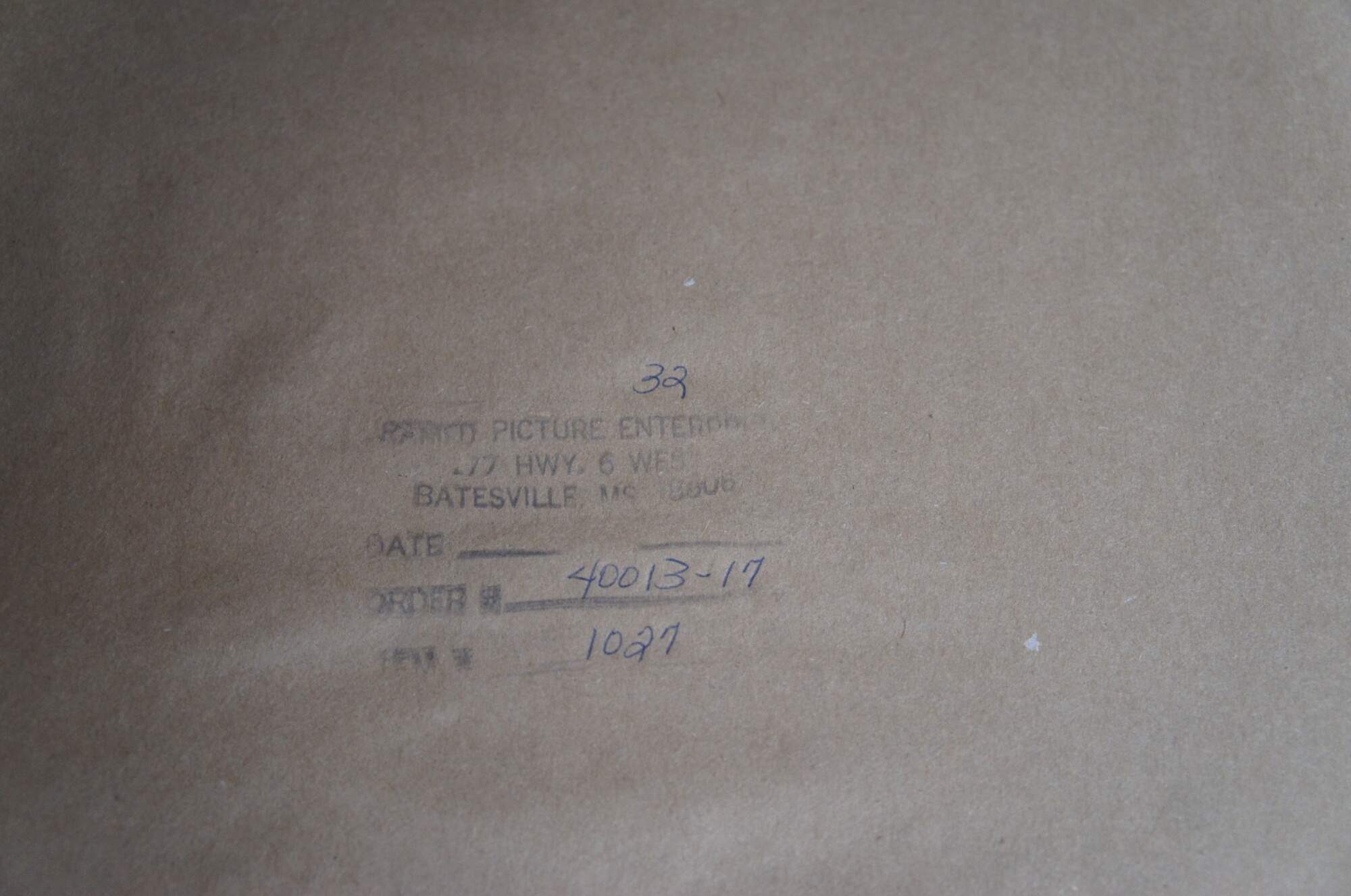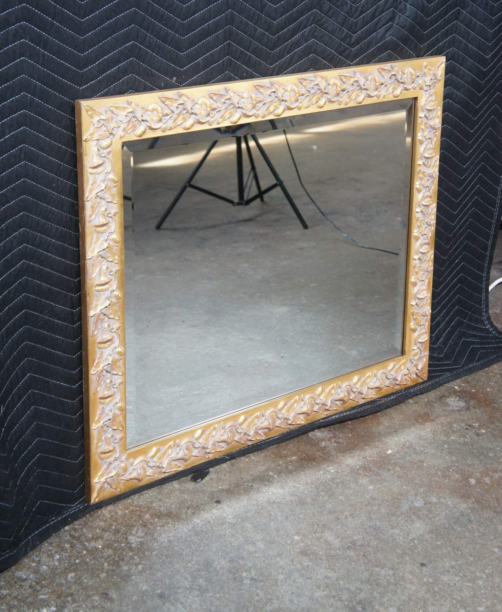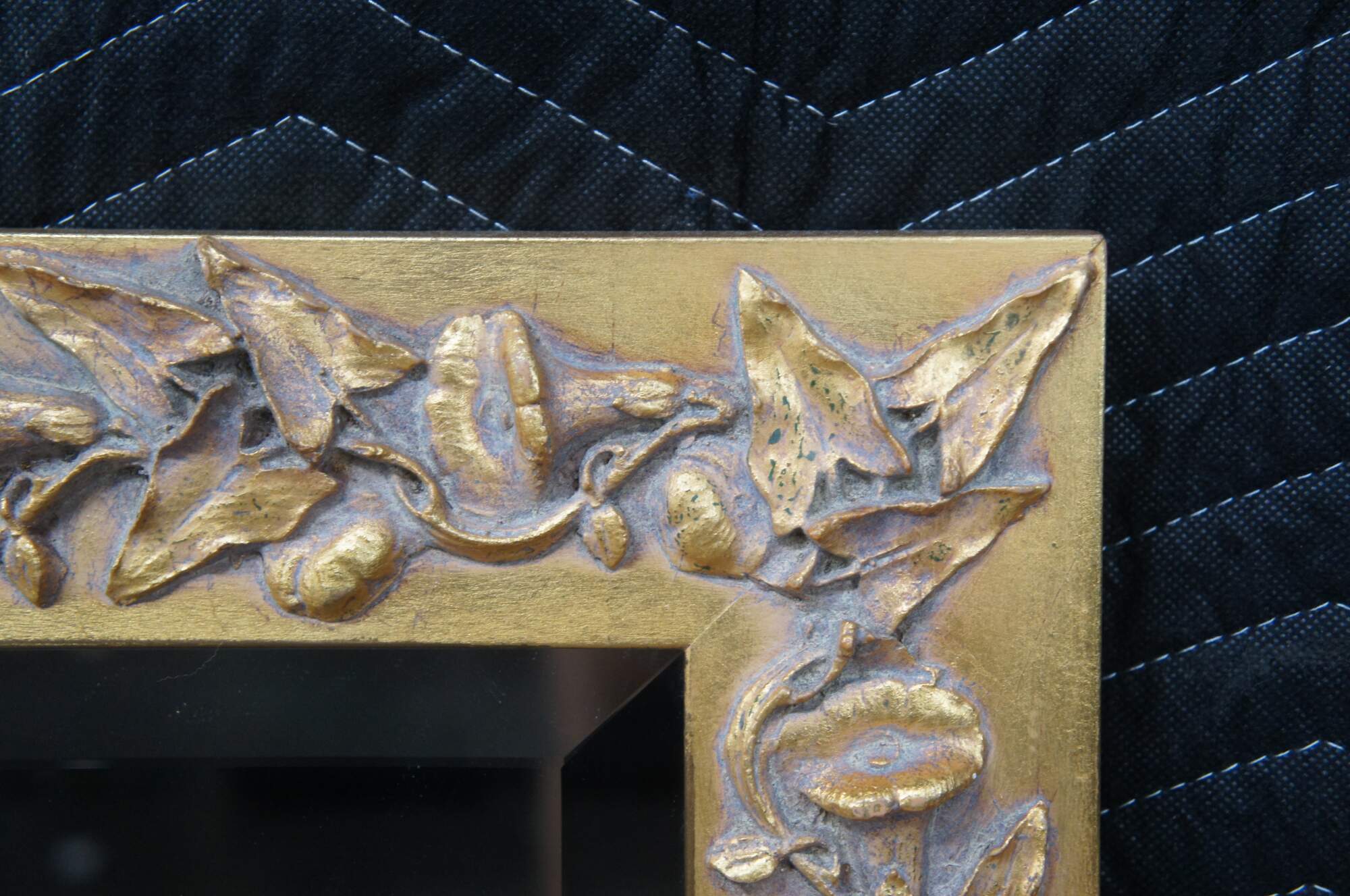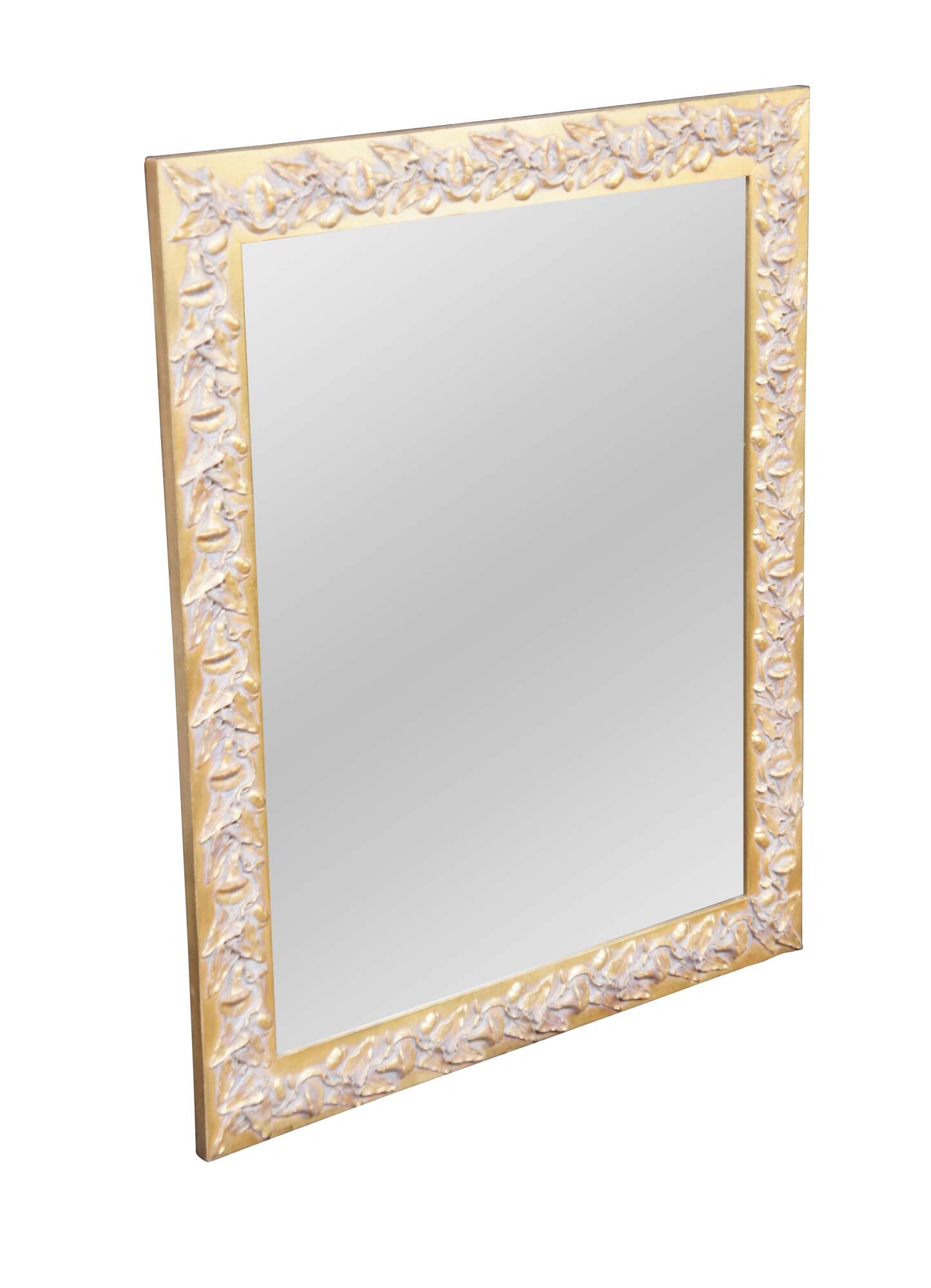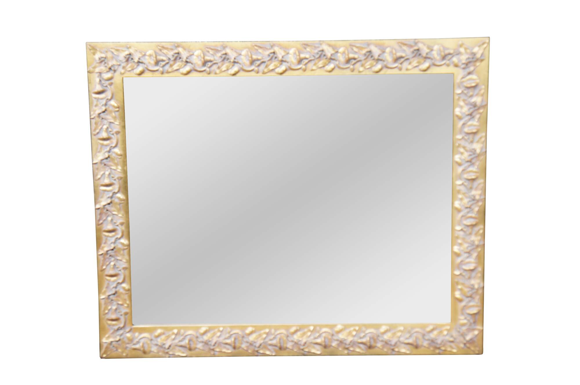 An ornate Neoclassical style mirror from the last half of the 20th century. Features a low relief raised frame with foliate and vine motif. The mirror can be used horizontal or vertical. Great for use in along any wall, in a bathroom or as an over mantel mirror. From Framed Picture Enterprices in Batesville, MS