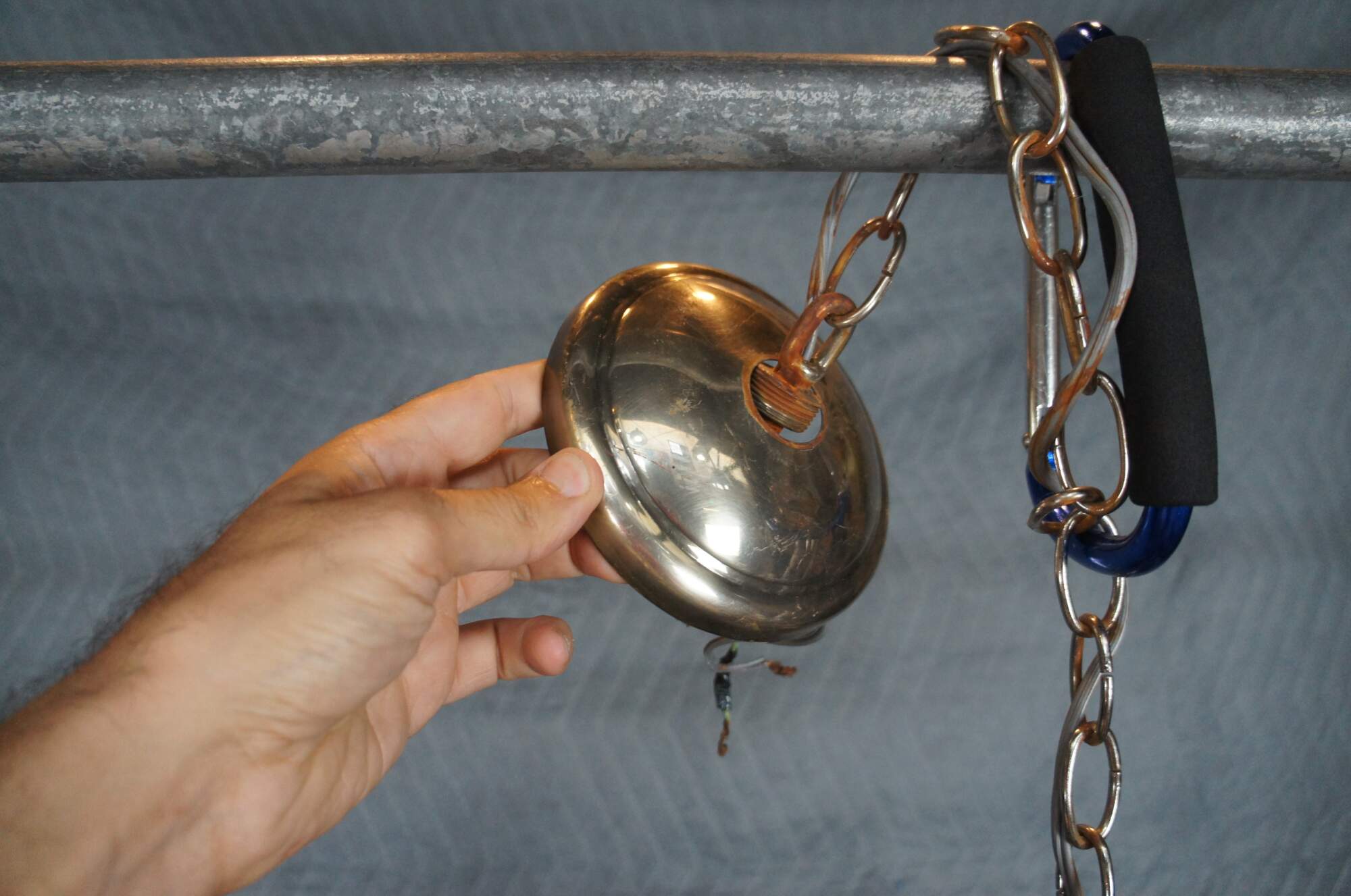 44" x 44" x 28.5"h, shades 7" x 4", medallion 5", chain 24"