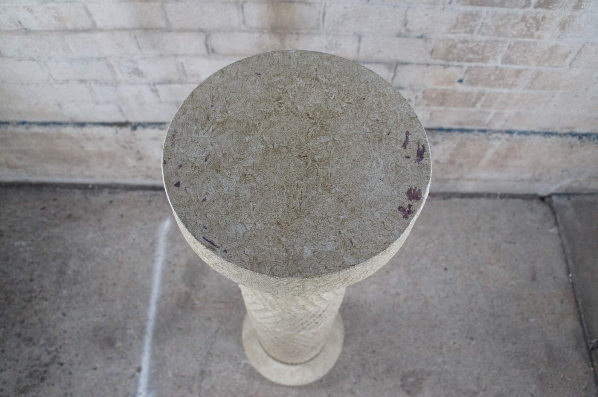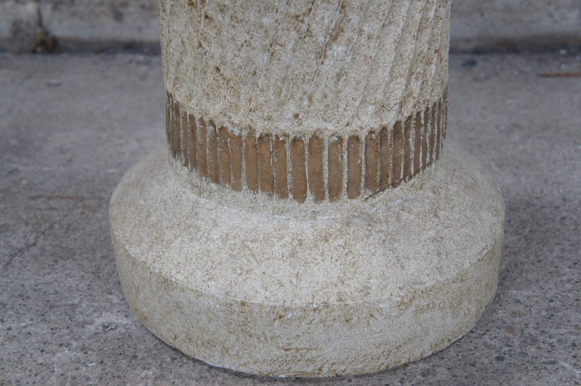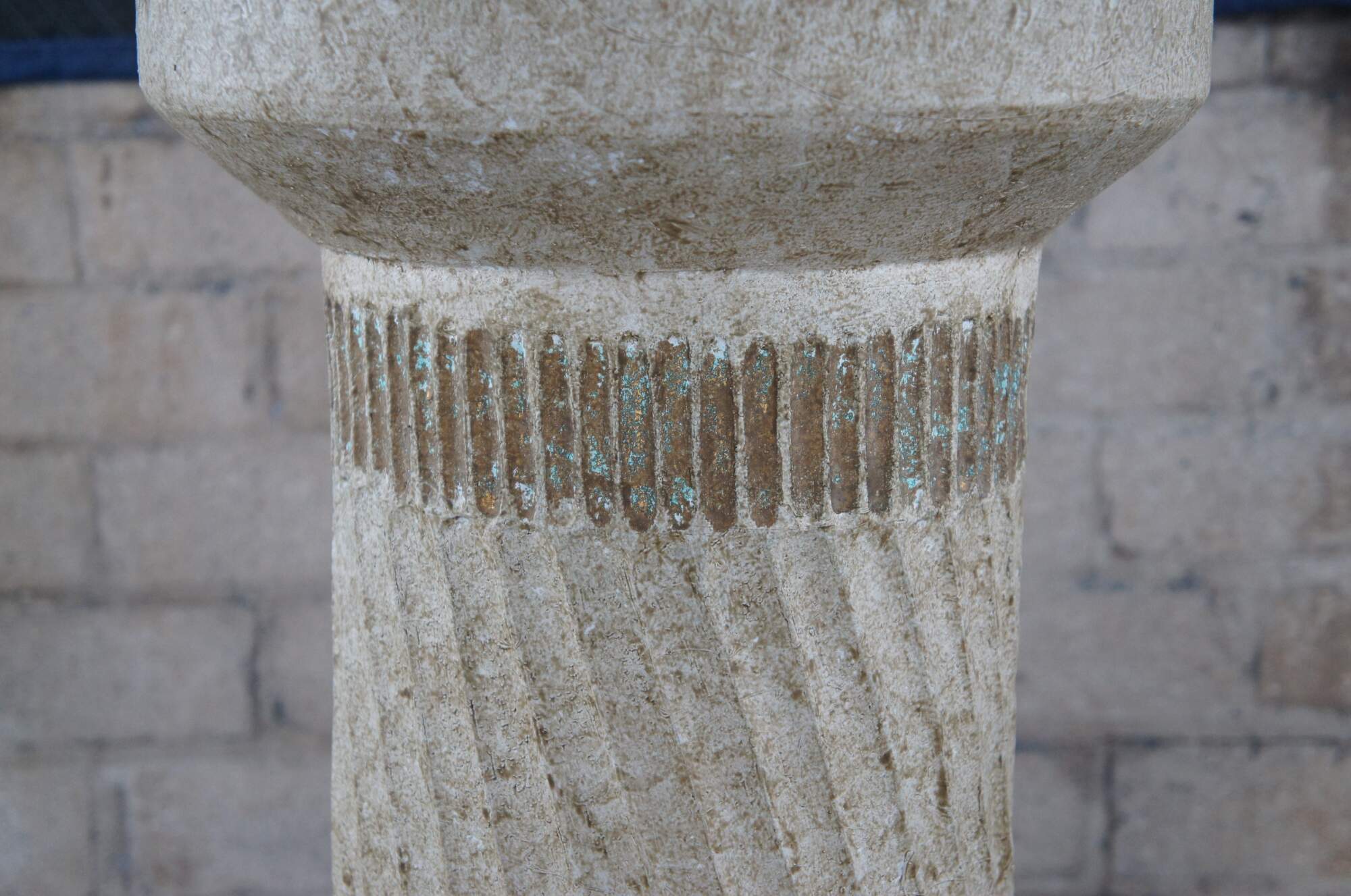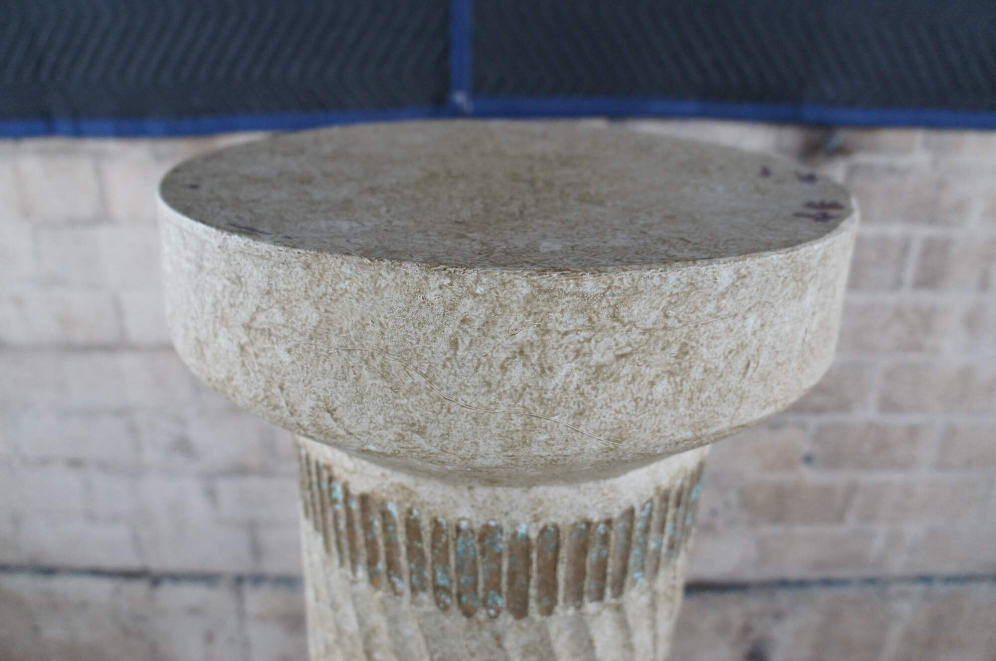 Neoclassical inspired pedestal or sculpture / display stand. Made of chalkware (plaster) featuring round column form with distressed finish