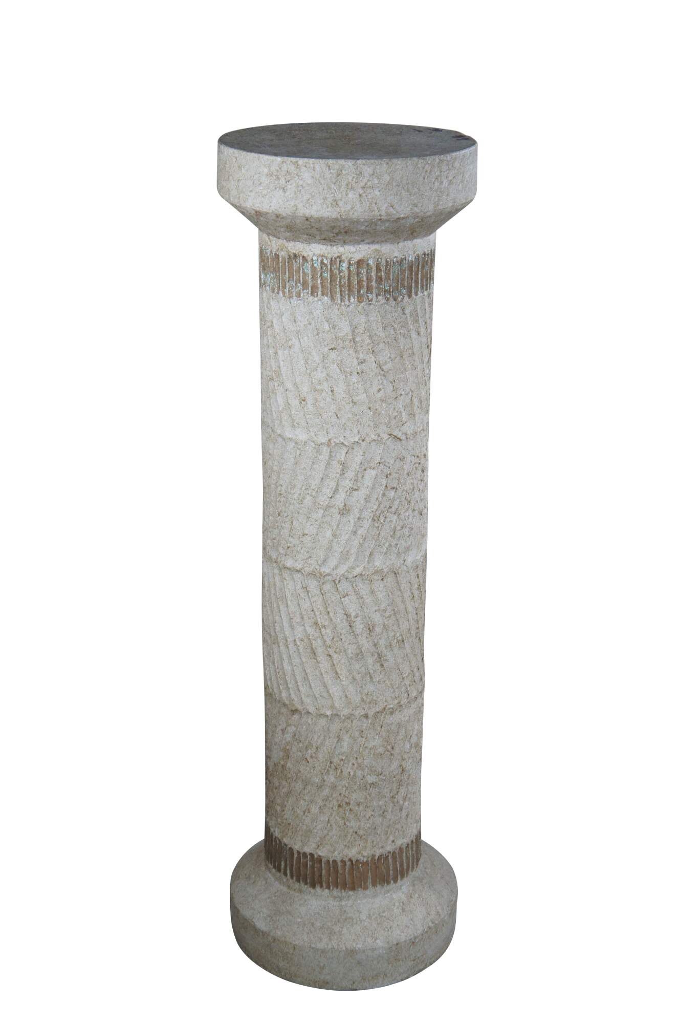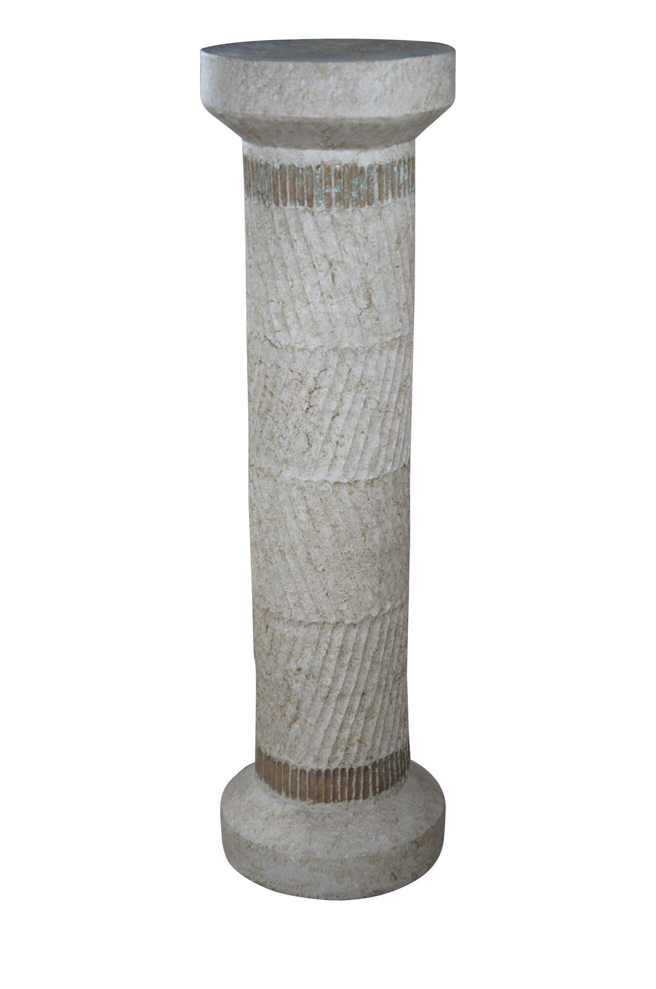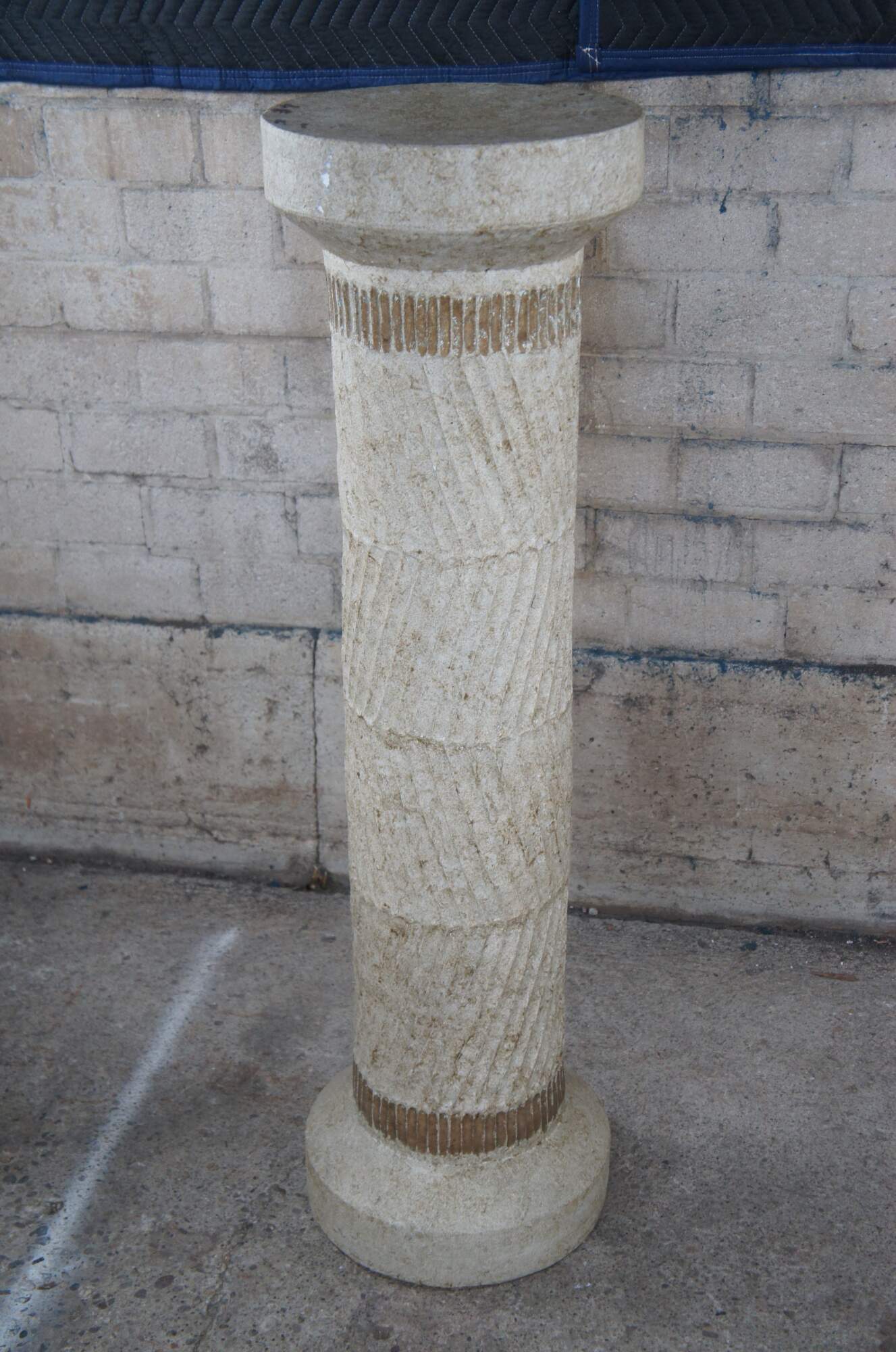 Neoclassical inspired pedestal or sculpture / display stand. Made of chalkware (plaster) featuring round column form with distressed finish