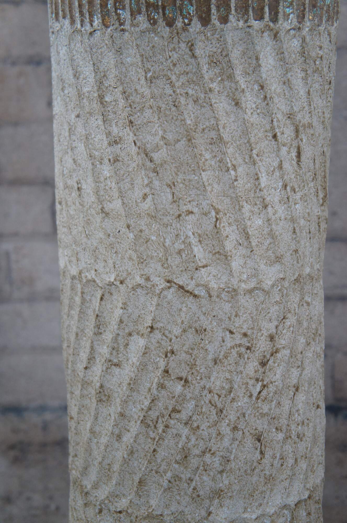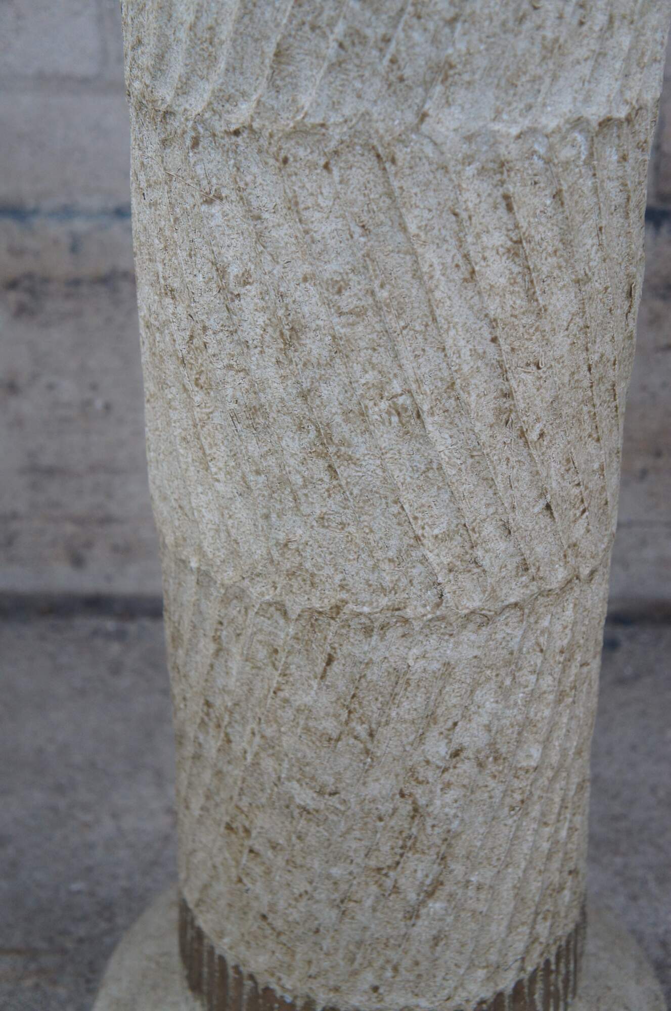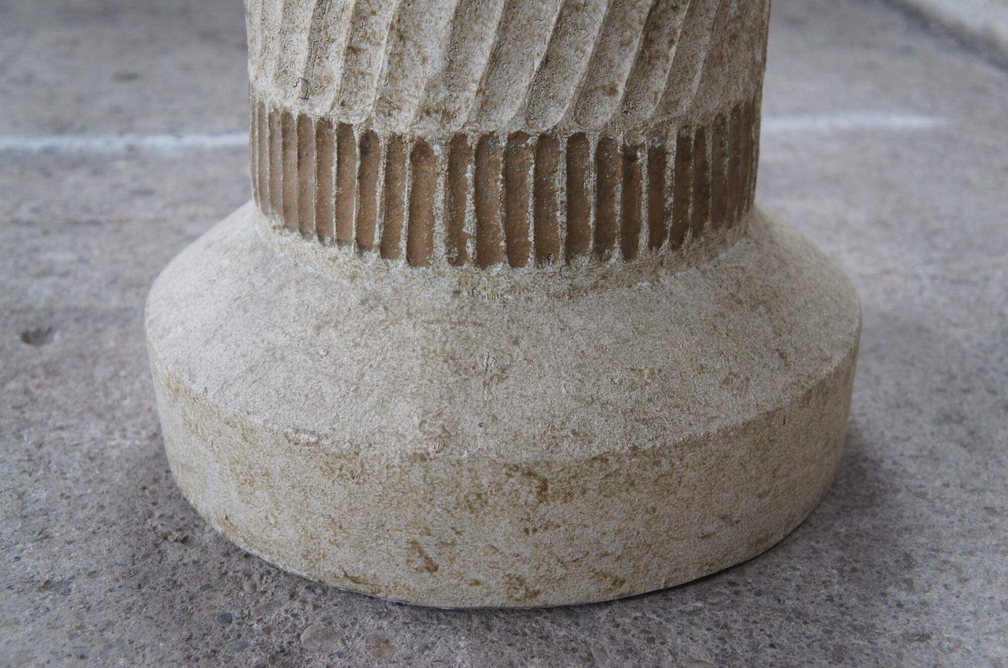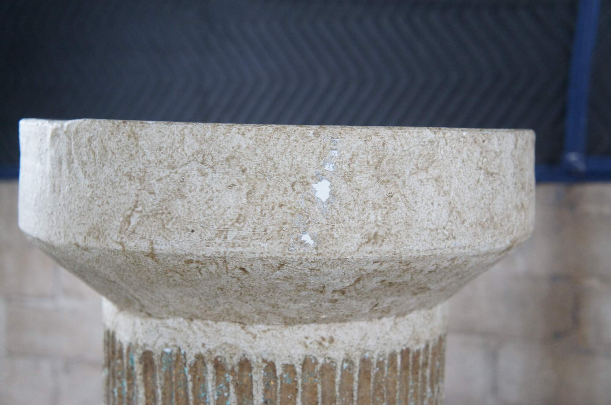 Neoclassical inspired pedestal or sculpture / display stand. Made of chalkware (plaster) featuring round column form with distressed finish