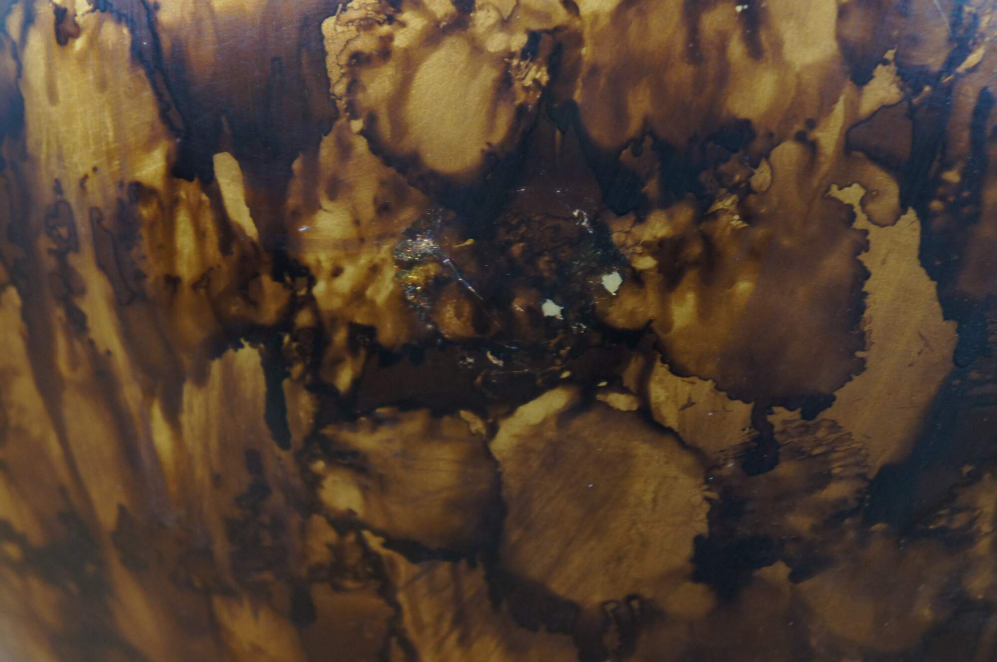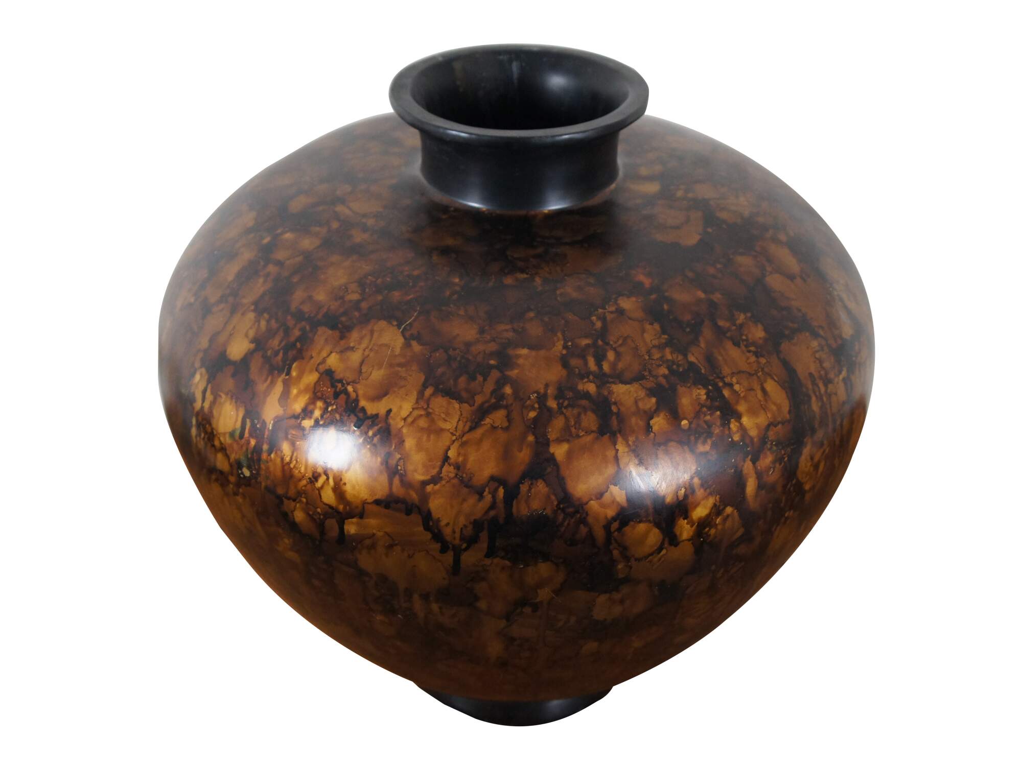 Adelina composite / resin urn shaped vase, mottled with deep brown and metallic gold / amber. Product number KC0616