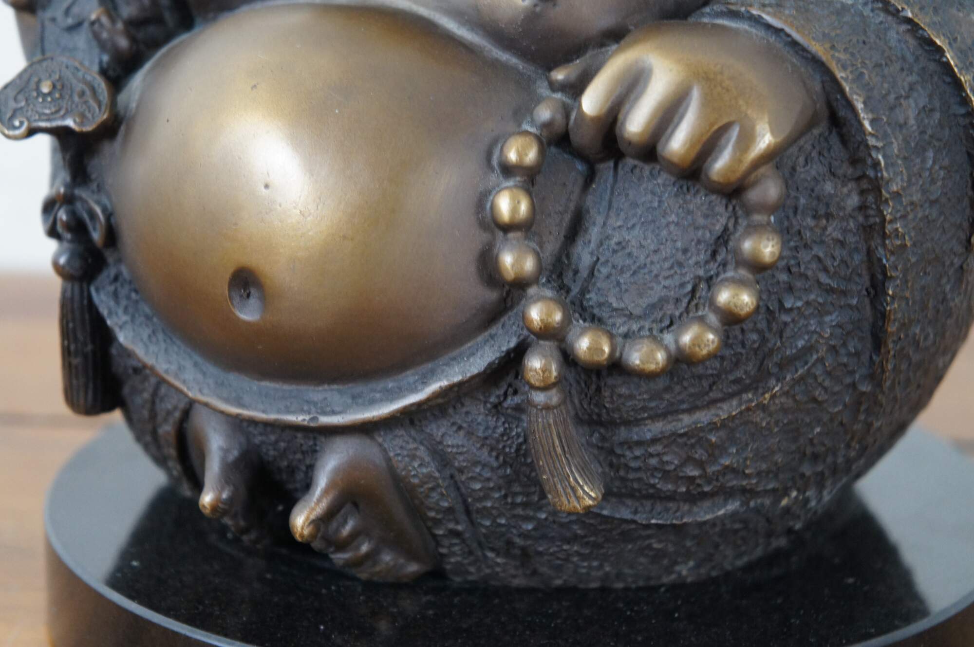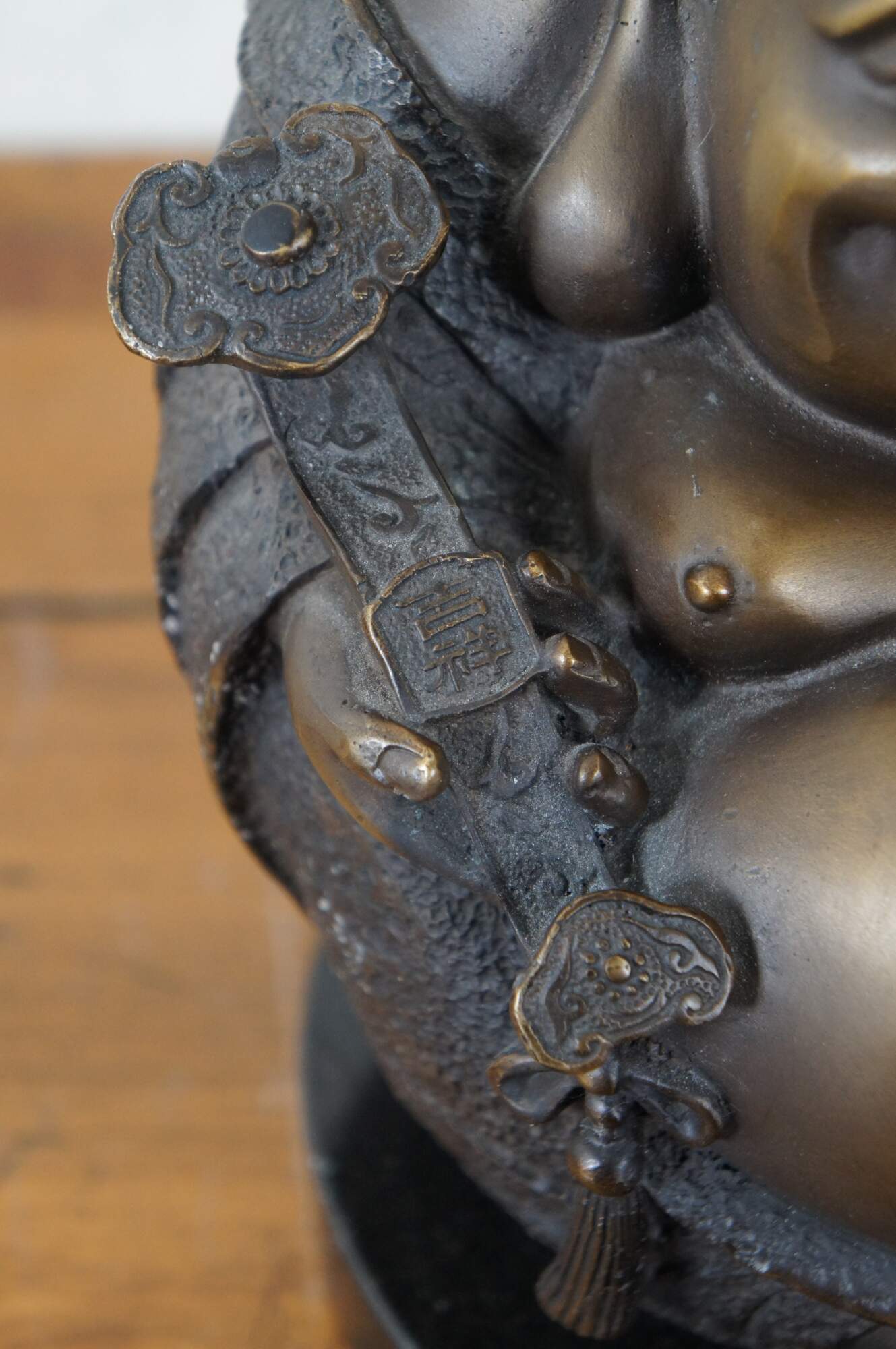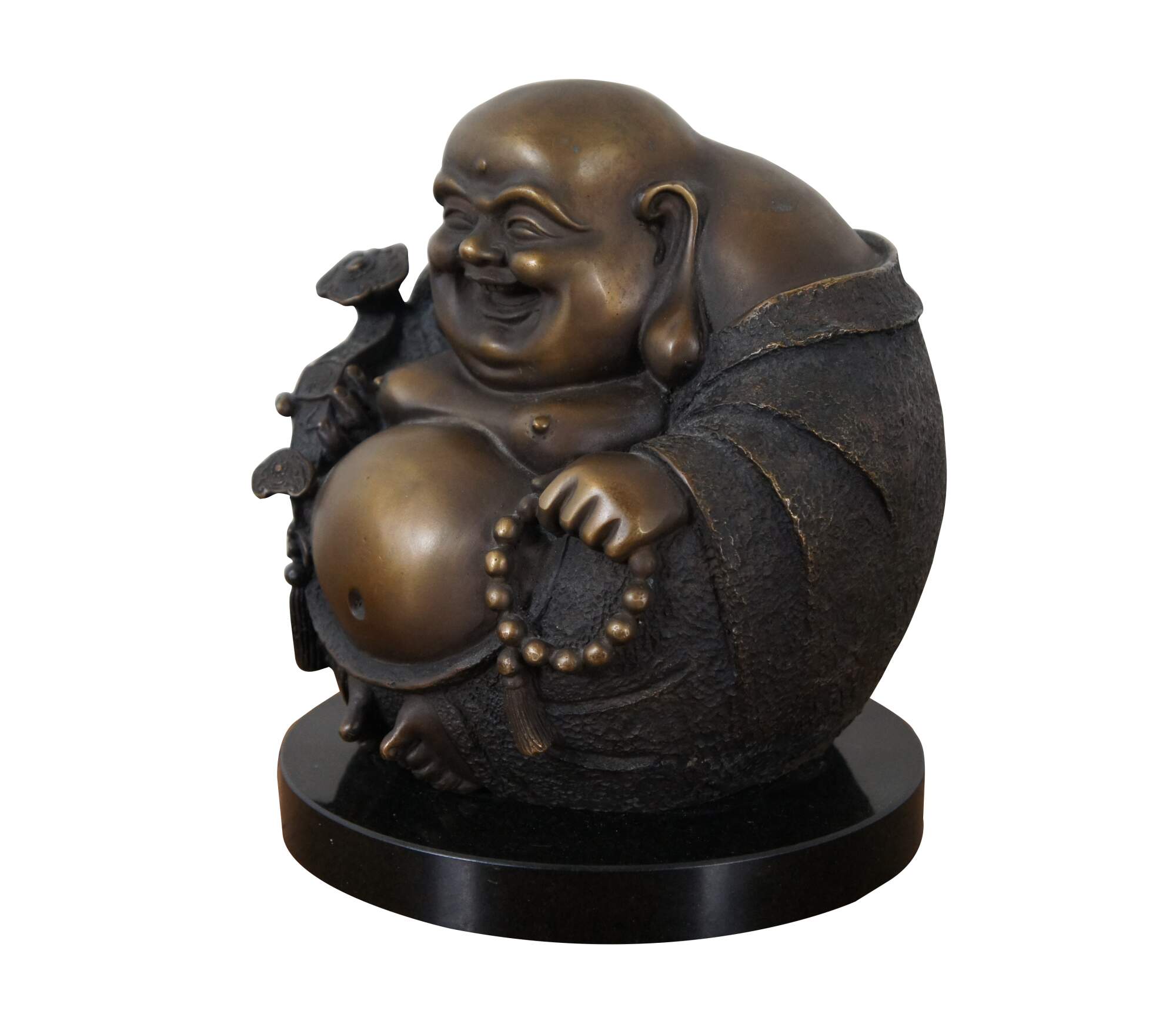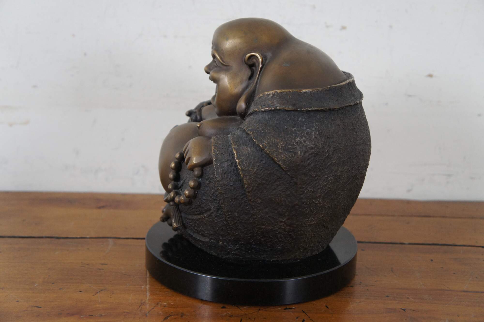 Vintage bronze Laughing Buddha / Hotei figurine, mounted on a round black marble base, by San Pacific International, San Francisco.