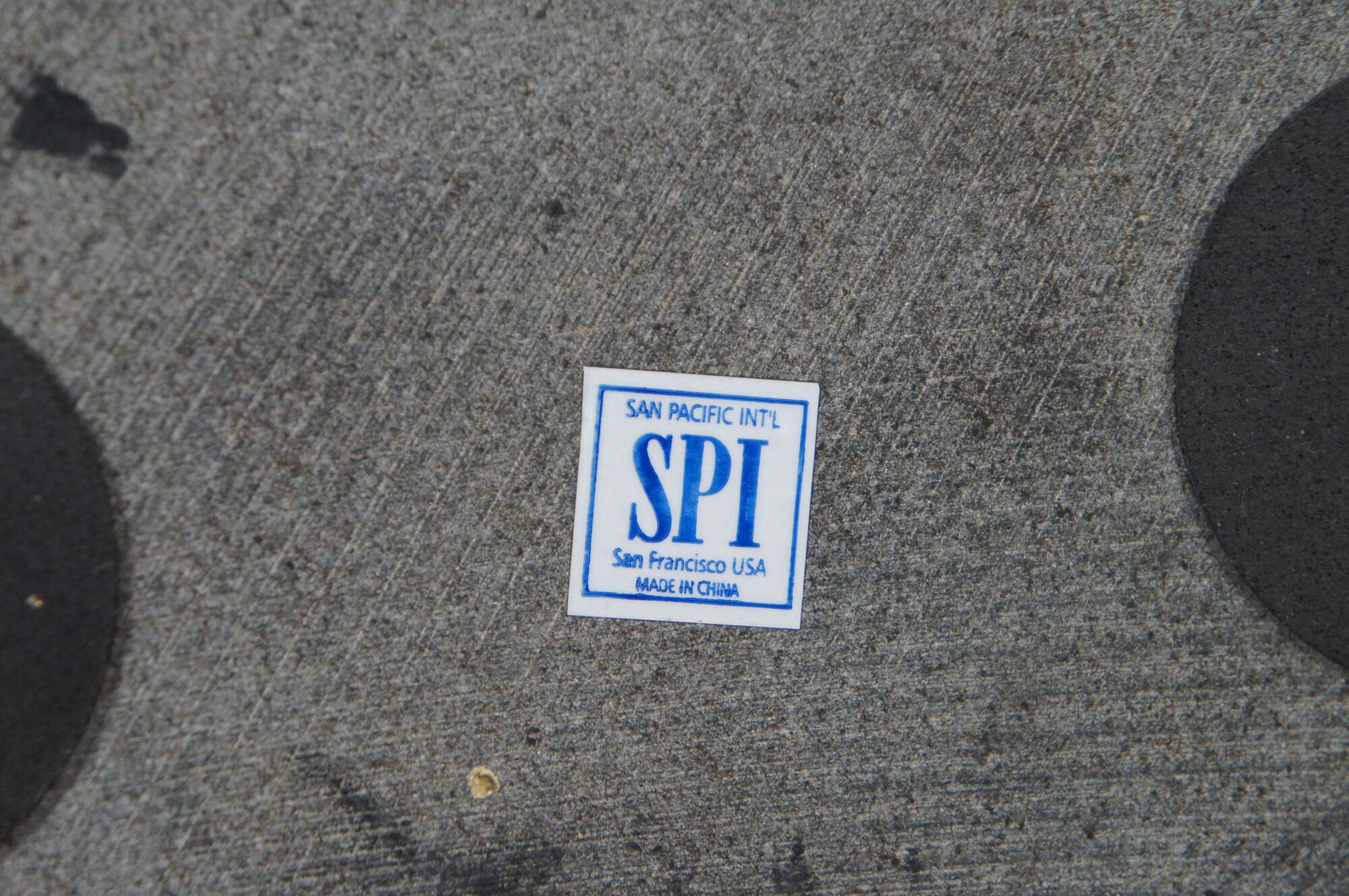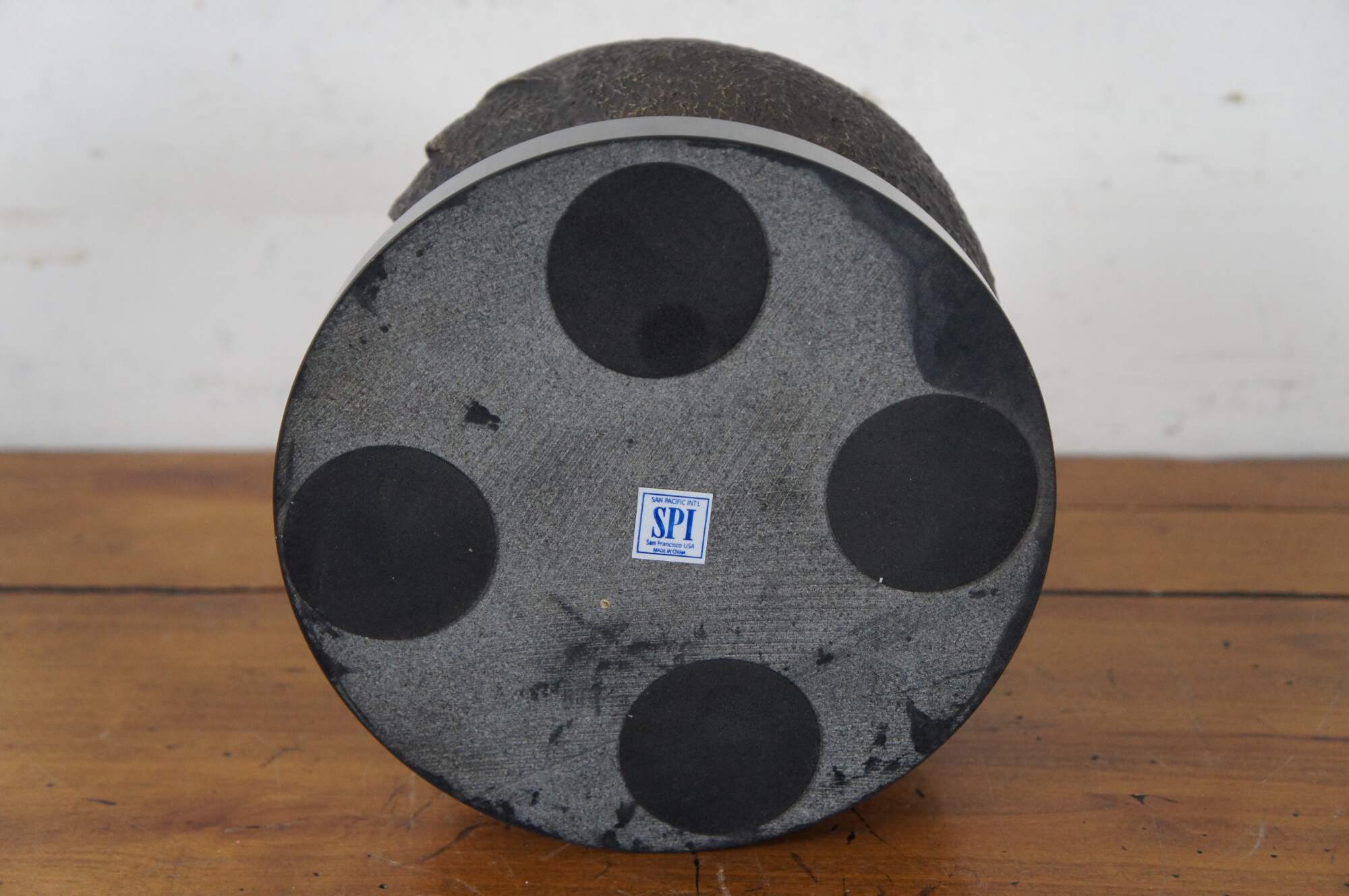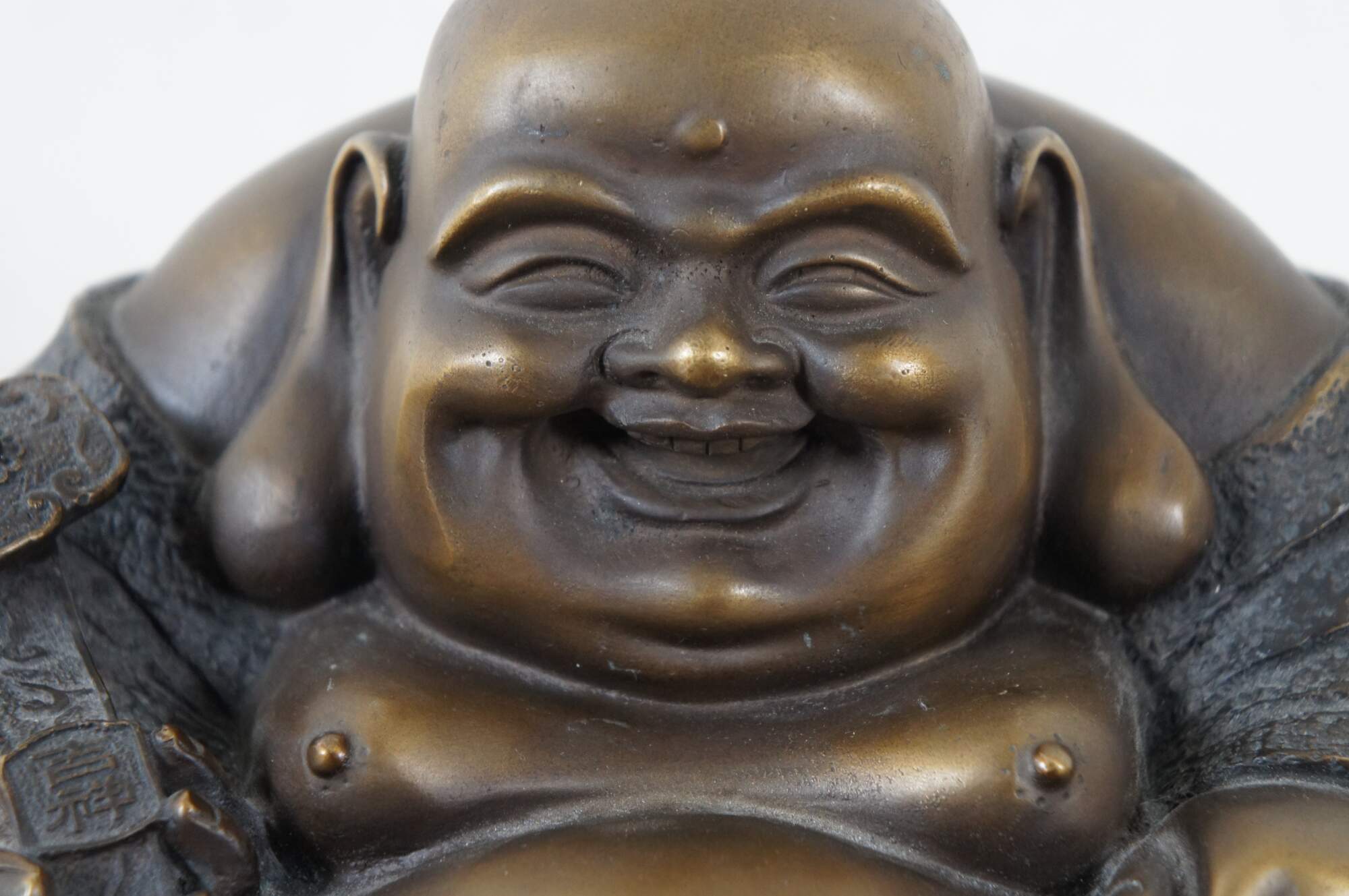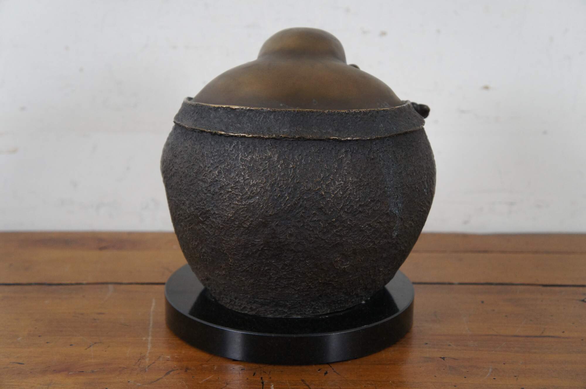 Vintage bronze Laughing Buddha / Hotei figurine, mounted on a round black marble base, by San Pacific International, San Francisco.