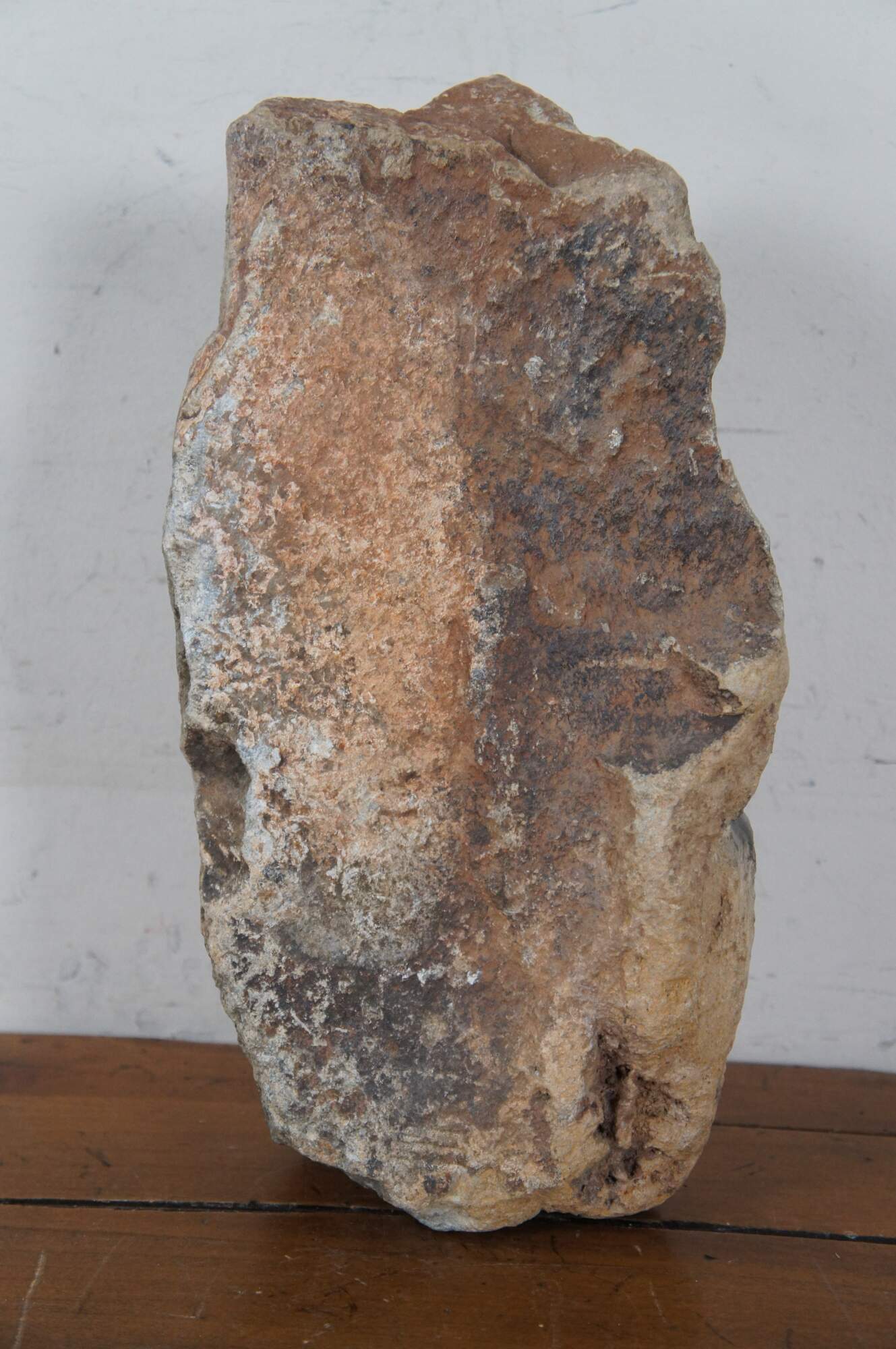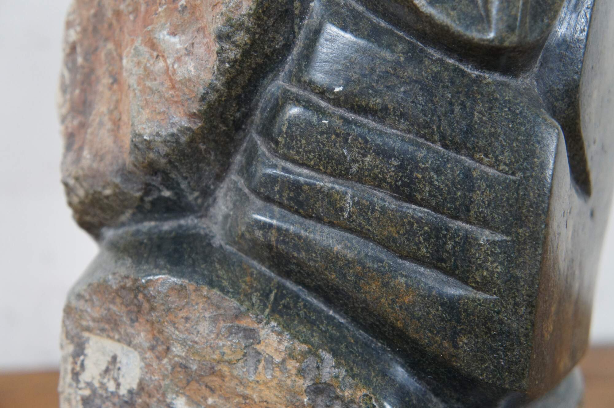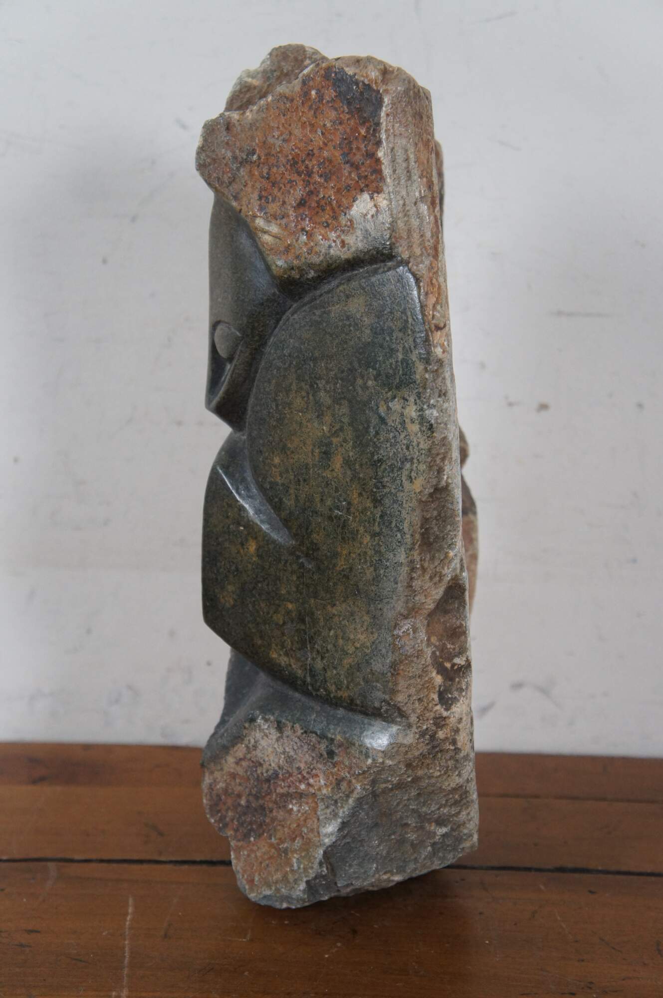 Vintage heavy African Shona folk art sculpture featuring an smoothly finished child with mothers hand / arm, nestled in a slab of unfinished granite rock.
