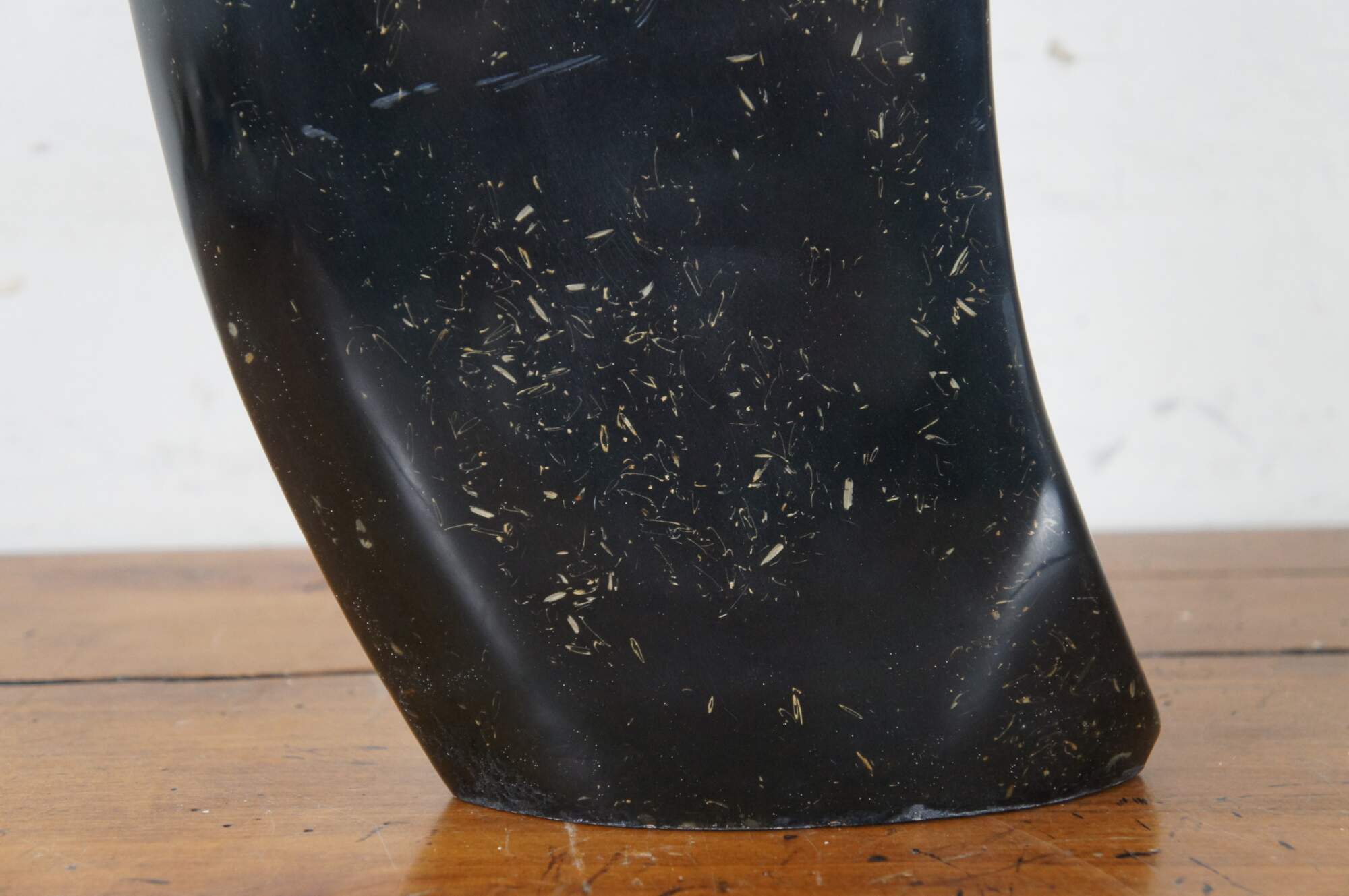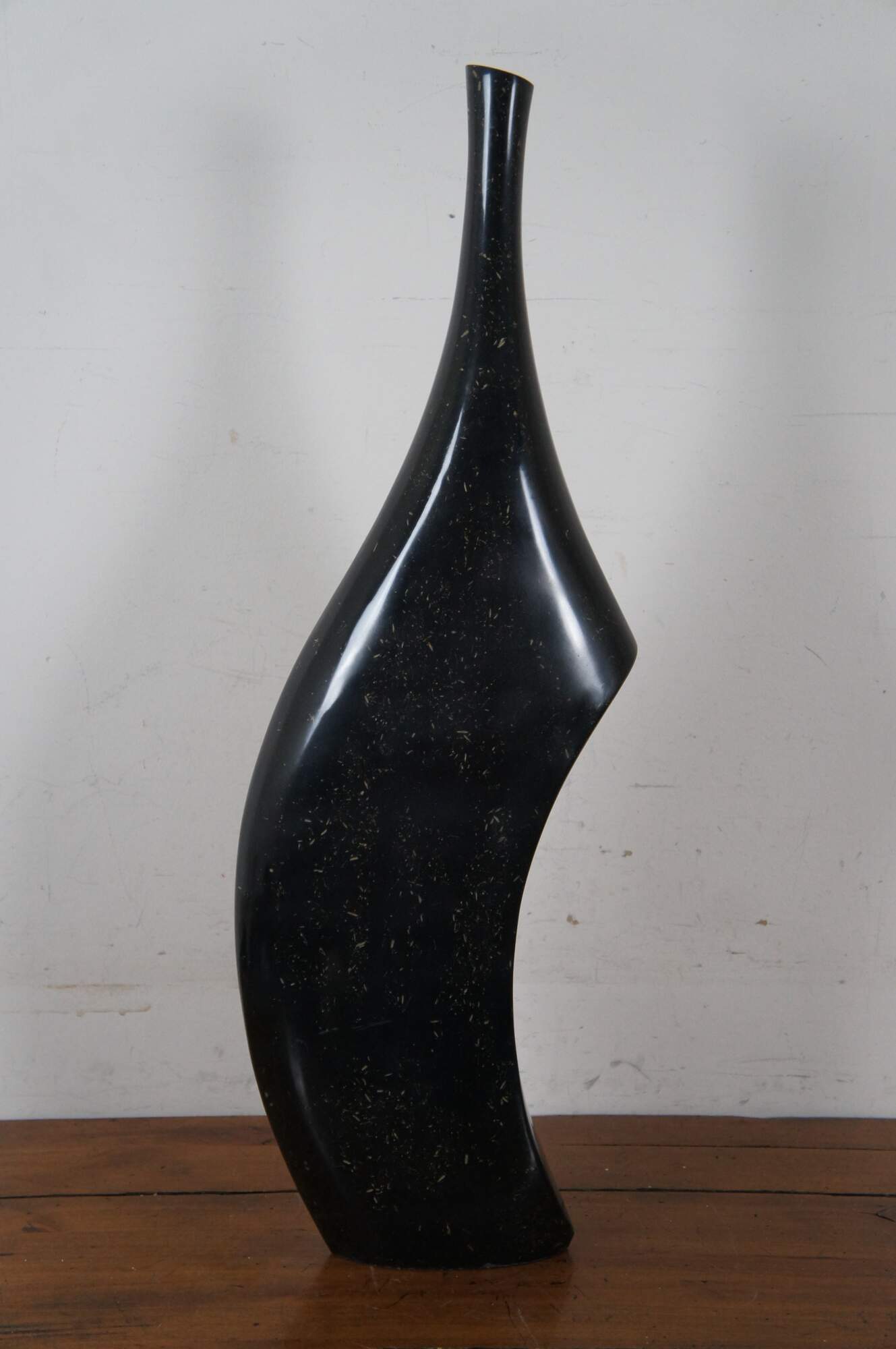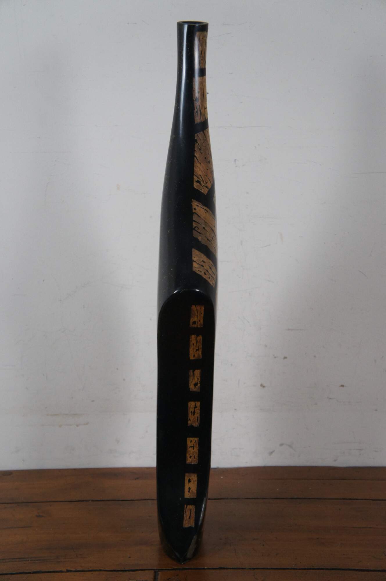 Vintage resin and lacquer floor vase with a unique modern sculptural form that features a swirling grid of coconut shell / tree bark / wood grain textured squares. Made in the Philippines.