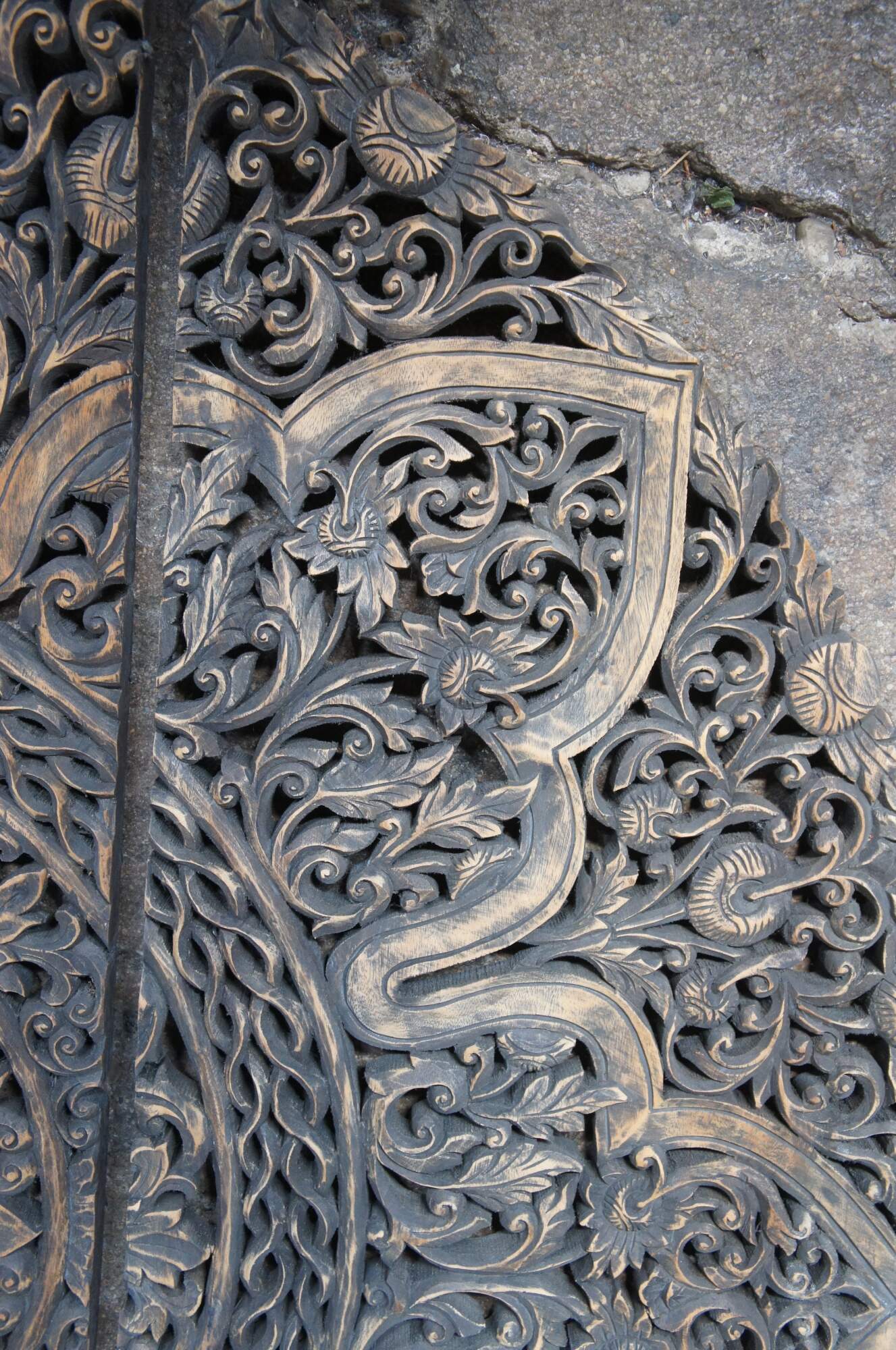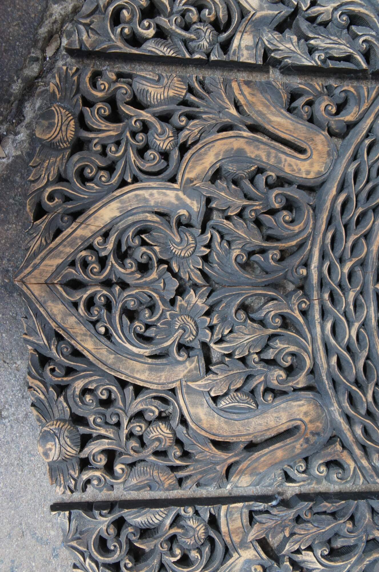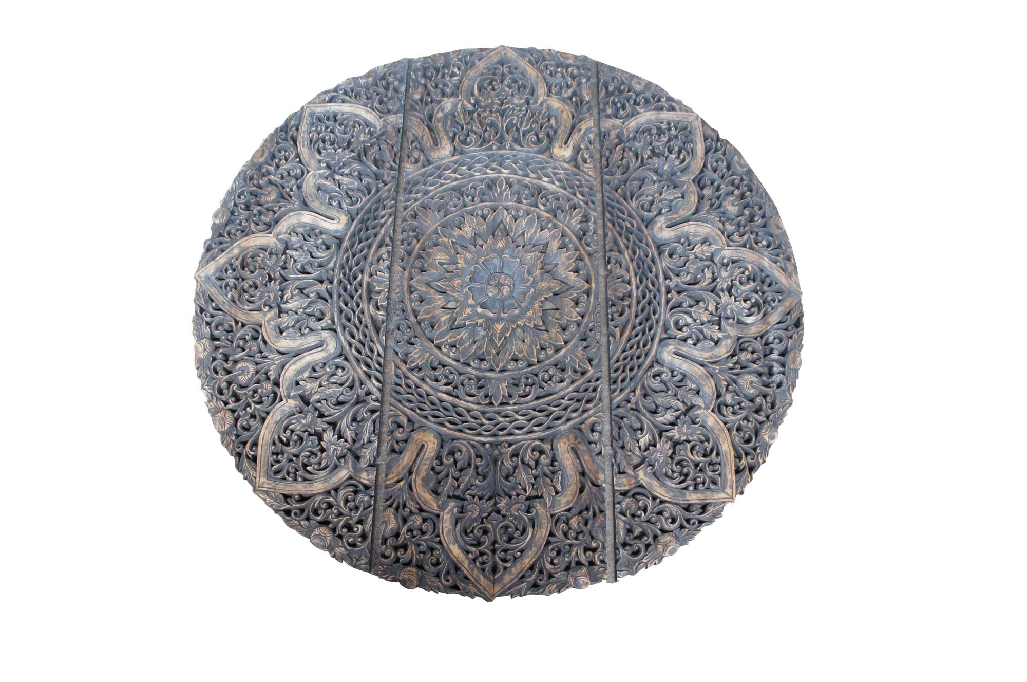 Intricate 3 piece Lotus medallion teak carved wall plaques. Handmade in Thailand. Each section hangs via metal bracket along the back.