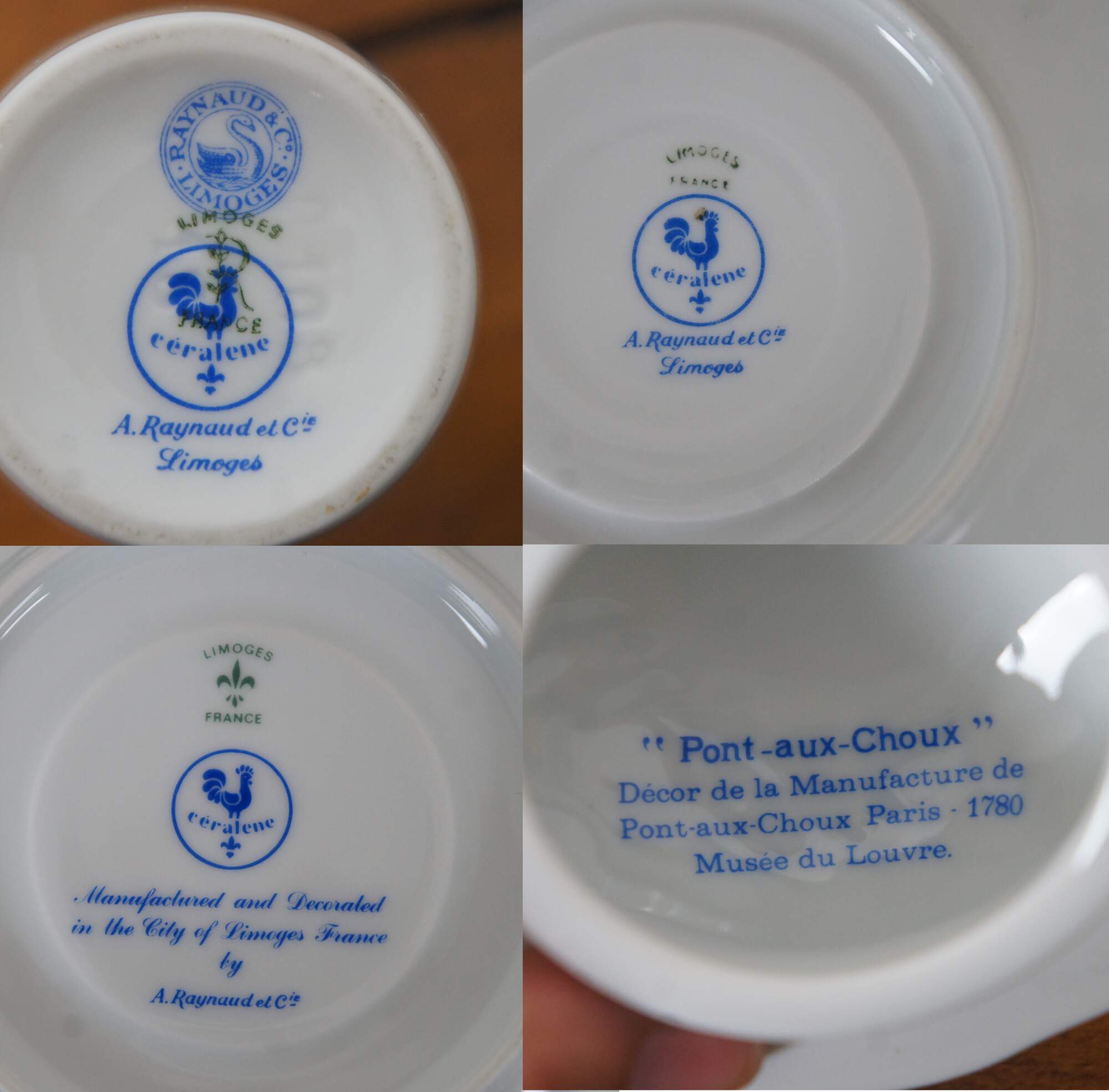 Hawthorne – This charming, all-white, embossed floral pattern was originally made, circa 1784, by the Pont-aux-Choux factory, a small workshop well known to collectors. The name, “Pont-aux-Choux,” meaning “Bridge of the Cabbages,” has become associated among connoisseurs with embossed motifs and flowers, always plain white, and strongly reminiscent of silver patterns, which is natural enough since the section in question was the center of the silversmith industry in 18th Century Paris. The original of this plate is at the Louvre Museum.
