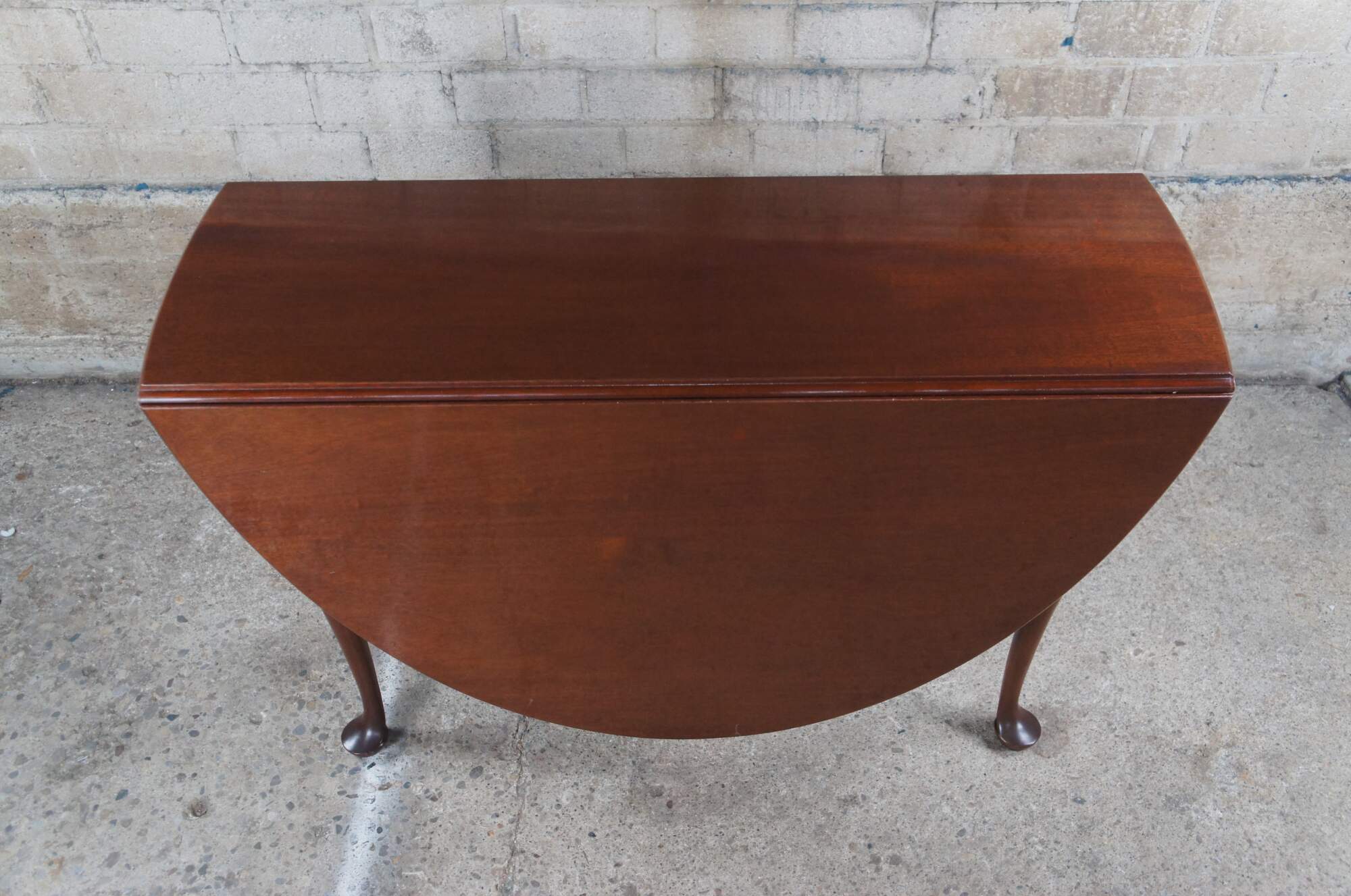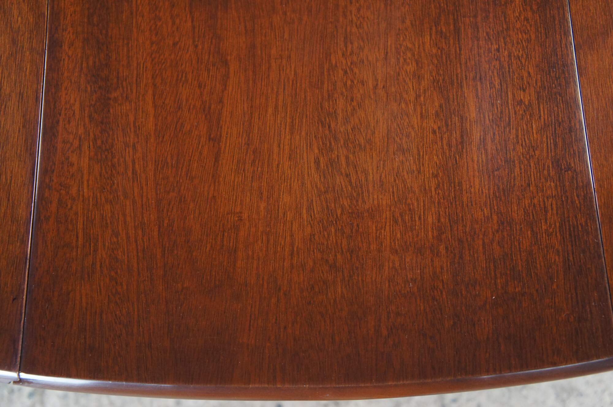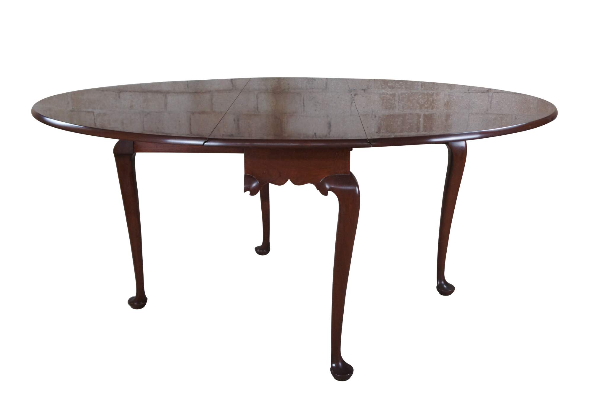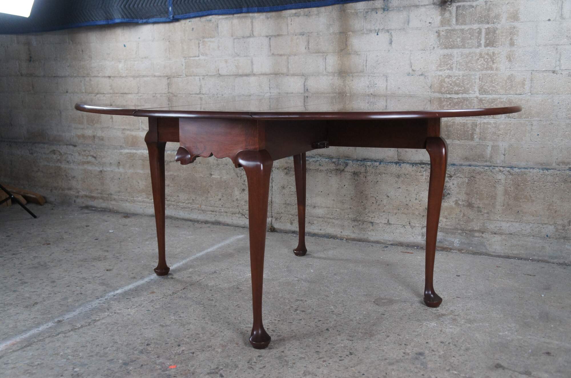 Vintage Biggs Furniture Chippendale / Queen Anne oval drop leaf dining table, circa last half 20th century. Made of mahogany featuring a high gloss georgian finish. The table has a rectangular or oval form with large drop leaves, gatelegs and slipper feet. Originally Purchased from William W. Sauer Associates Ltd. Bethesda, MD in 1982.