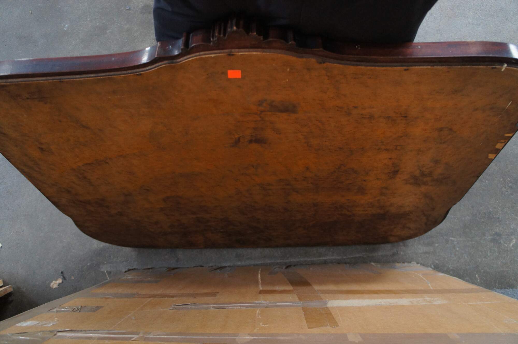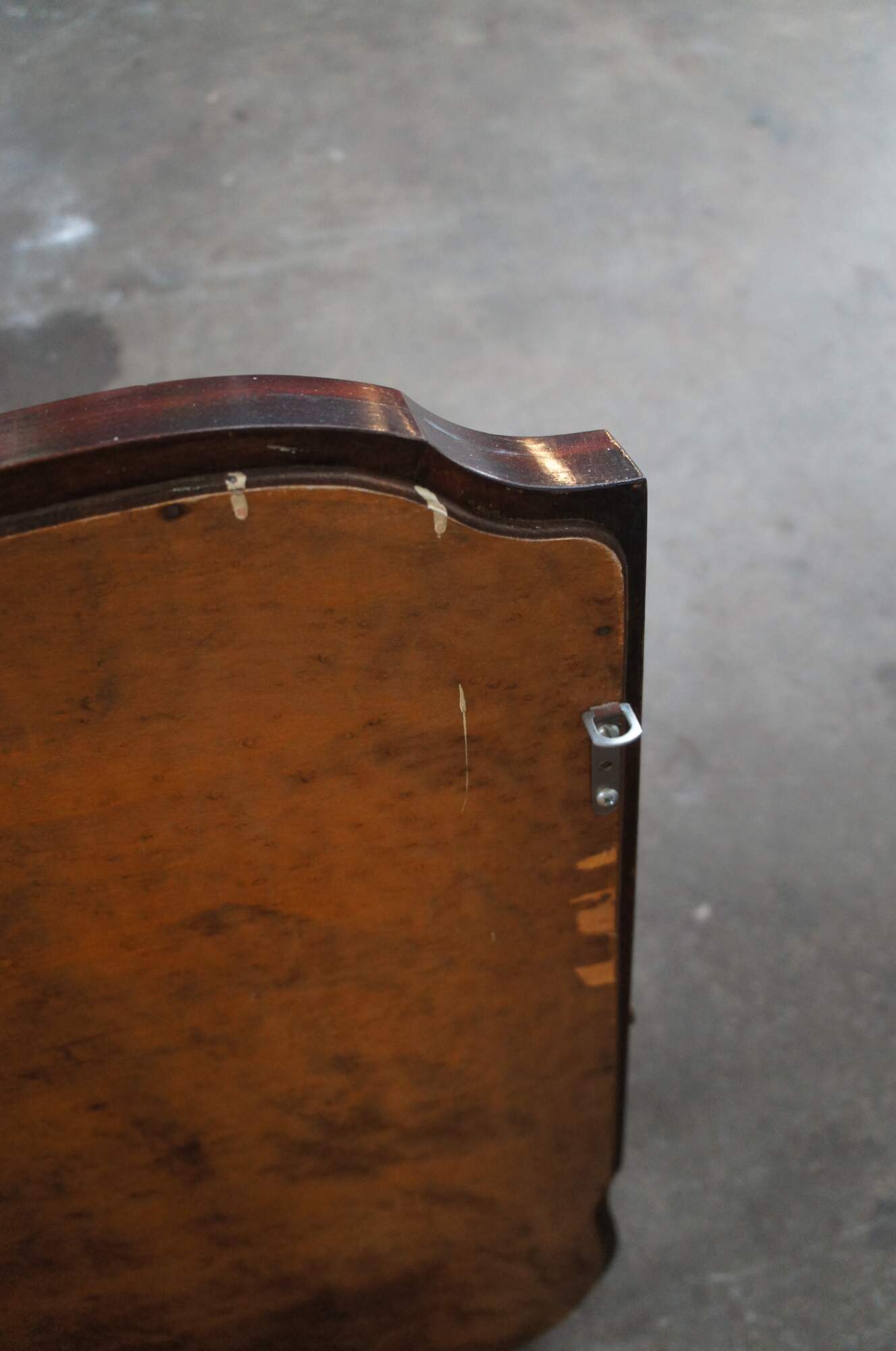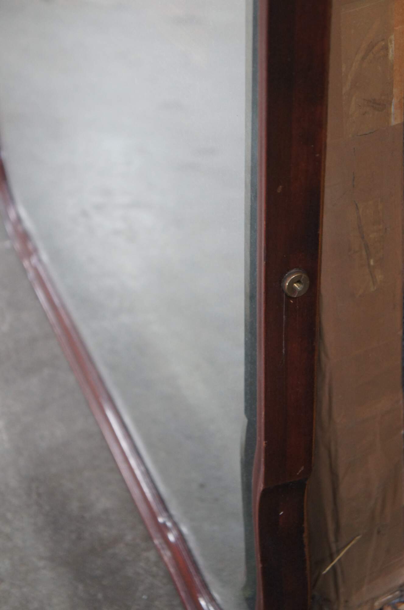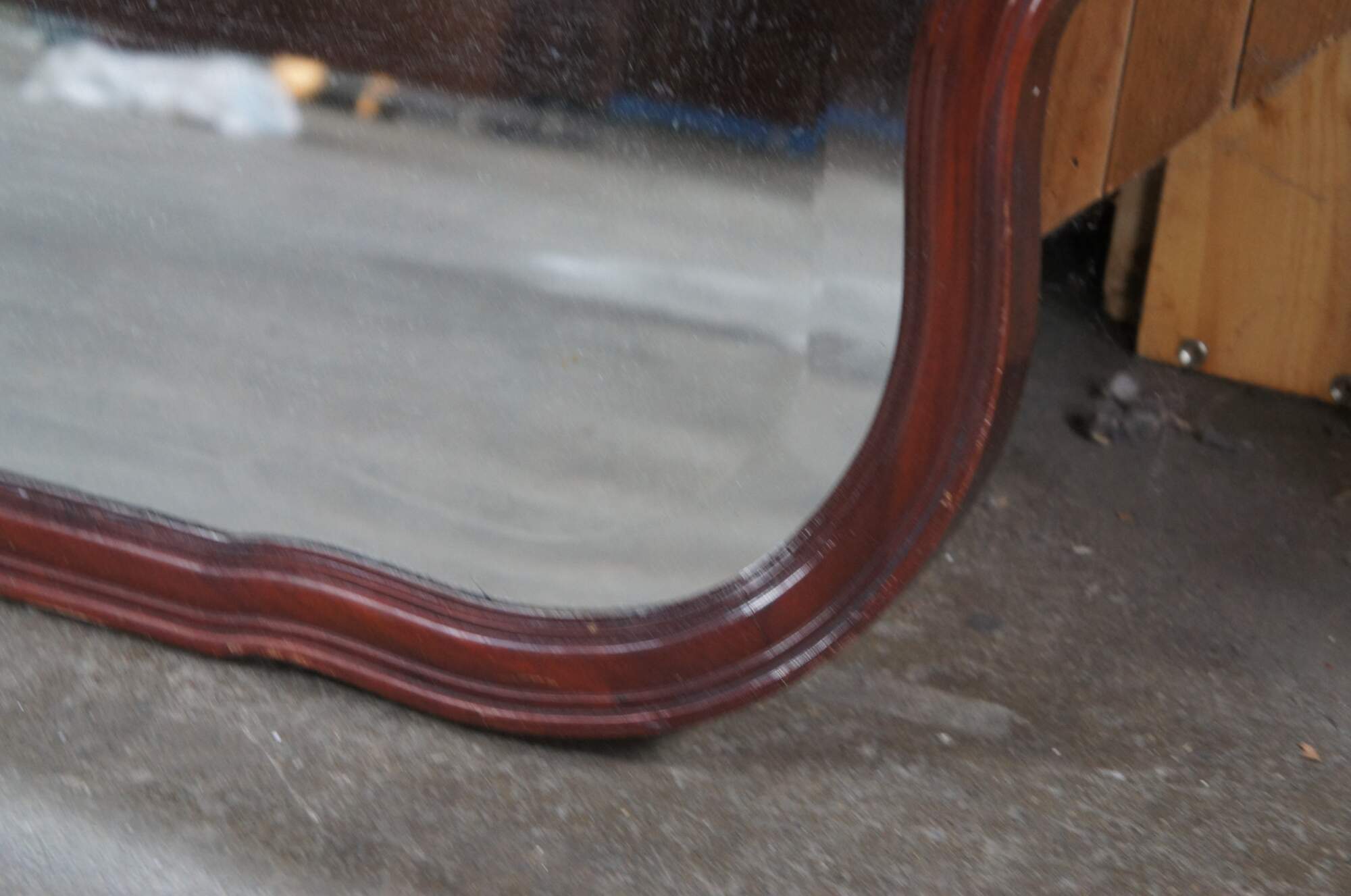Antique late Victorian vanity dresser mirror. Made of mahogany featuring serpentine form with foliate crown and bevelled mirror.