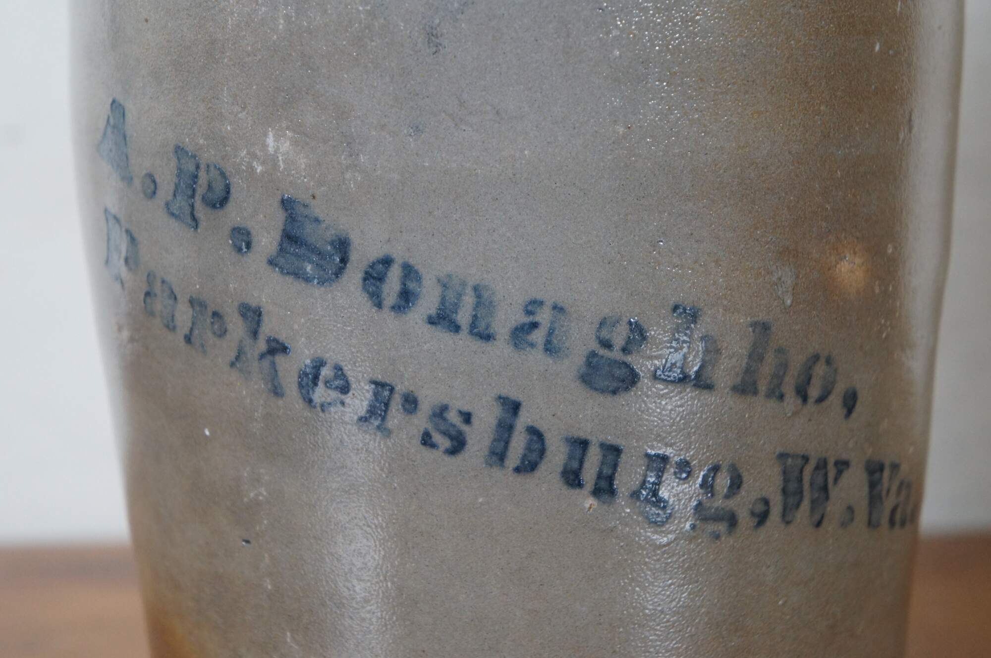 “Potter and businessman Alexander Polk Donaghho was born in Washington County, Pennsylvania, July 2, 1829, and he died in Parkersburg in 1899. It is thought that he learned his trade in the Monongahela Valley in Pennsylvania, at a pottery owned by an uncle. He came to Parkersburg in 1870 and began a pottery operation there in 1874. Donaghho crocks and other items of pottery are avidly collected today.