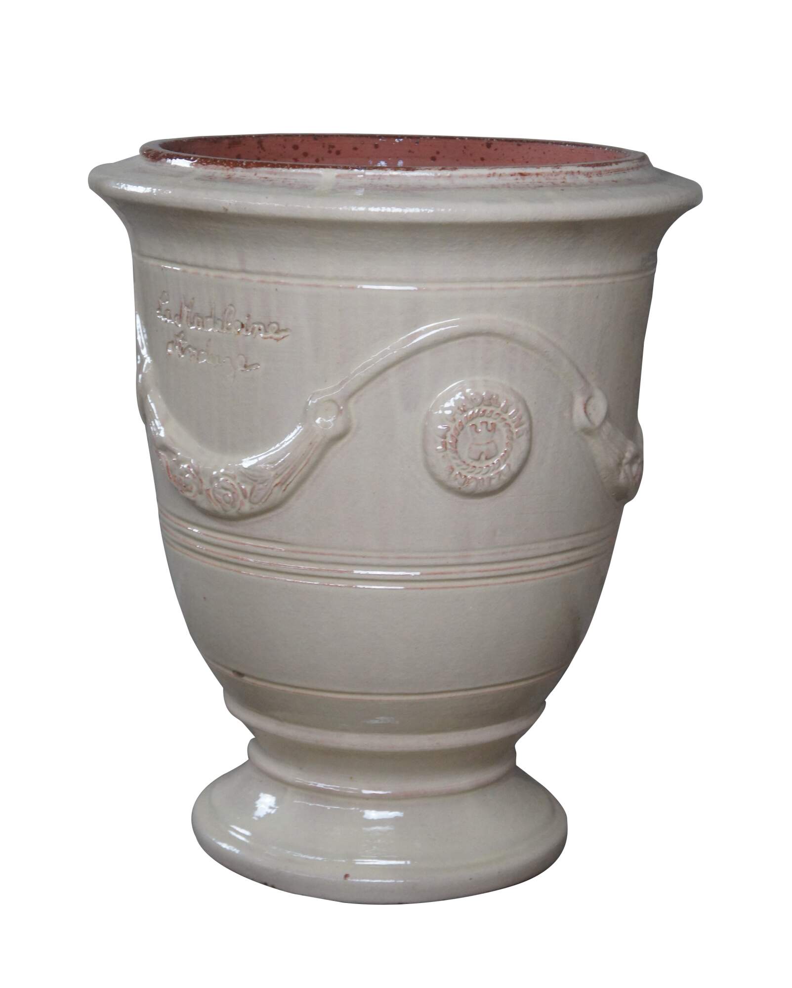 During the 16th and 17th centuries these large vases only appeared in the gardens of the french landed gentry. In the 19th century wealthy families of the local silk merchants in the Anduze region began planning attractive gardens in which they held orange trees. Legend has it that a potter from Anduze in the Cevennes region of southern France was inspired by italian medici vases which he saw at the fair of Beaucaire, these vases where decorated with garlands, fruit and flowers. Leaving these vases outdoors gives a marvellous patina which relates the passage of time, and is recreated today by the ancestors of the Anduze family craftsmen.