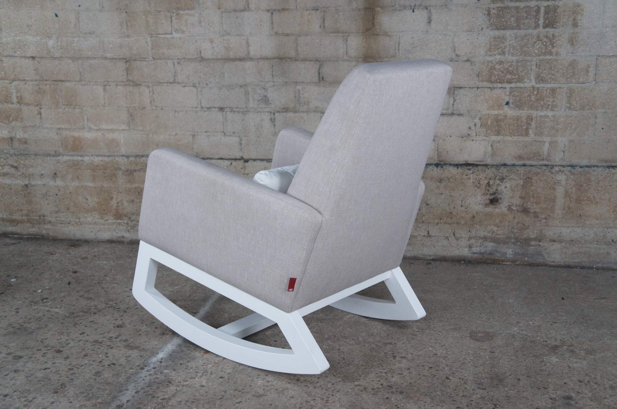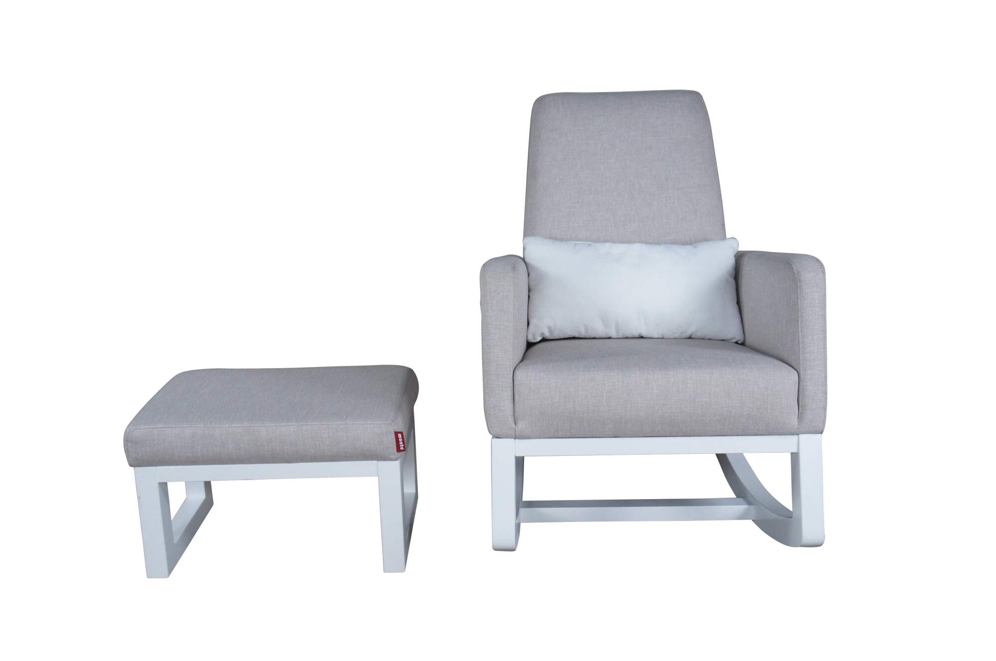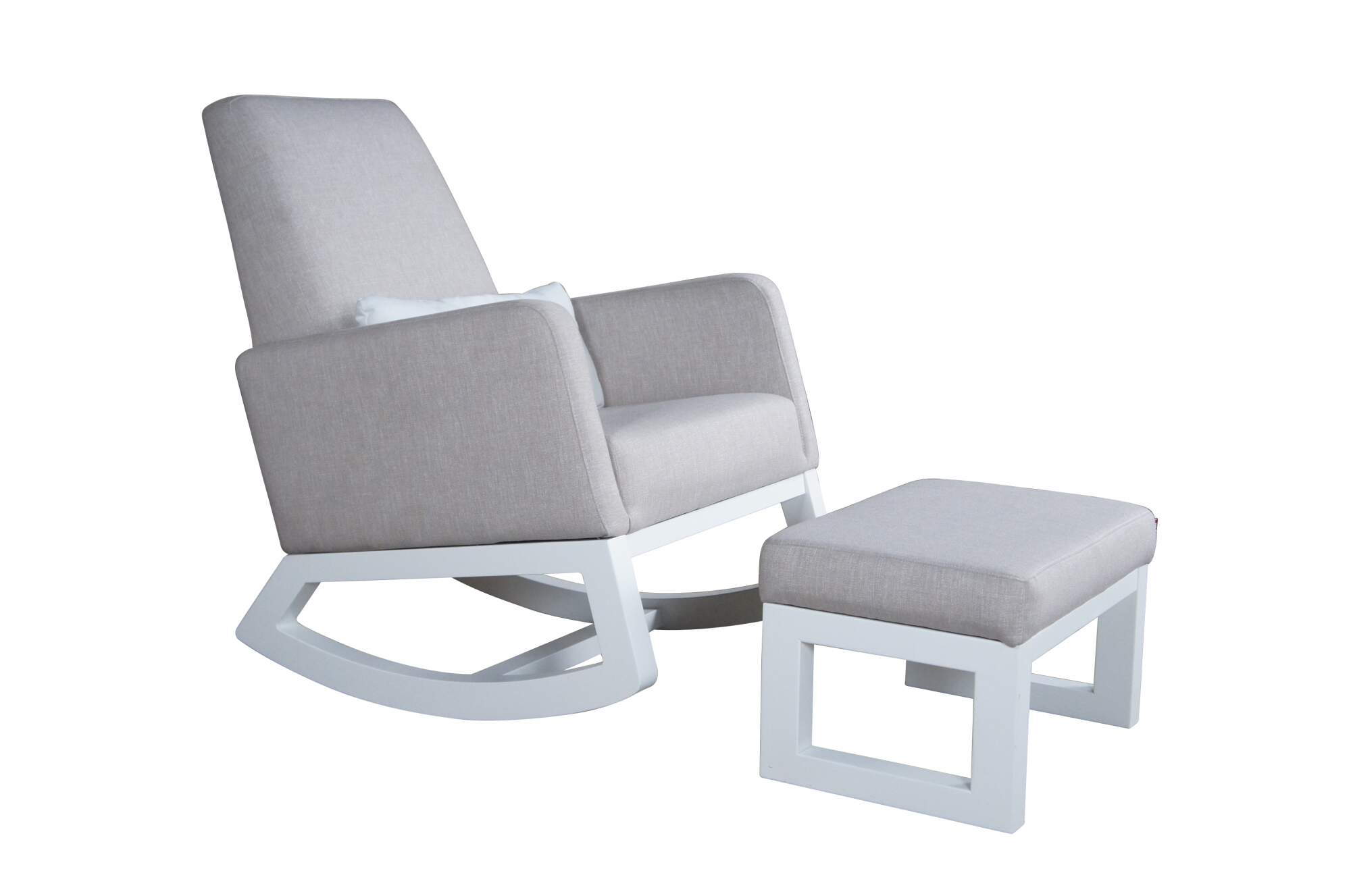 A stylish rocking chair and ottoman designed by Monte for you and your little bundle of joy. Comfy, with a smaller footprint, our Joya Rocking Chair gently rocks back and forth on solid wood frame. It will hug you in all the right places and keep you supported for hours with your little one. And, like all of our upholstered seating, its look will work in any room when baby makes the move to big kid bed.