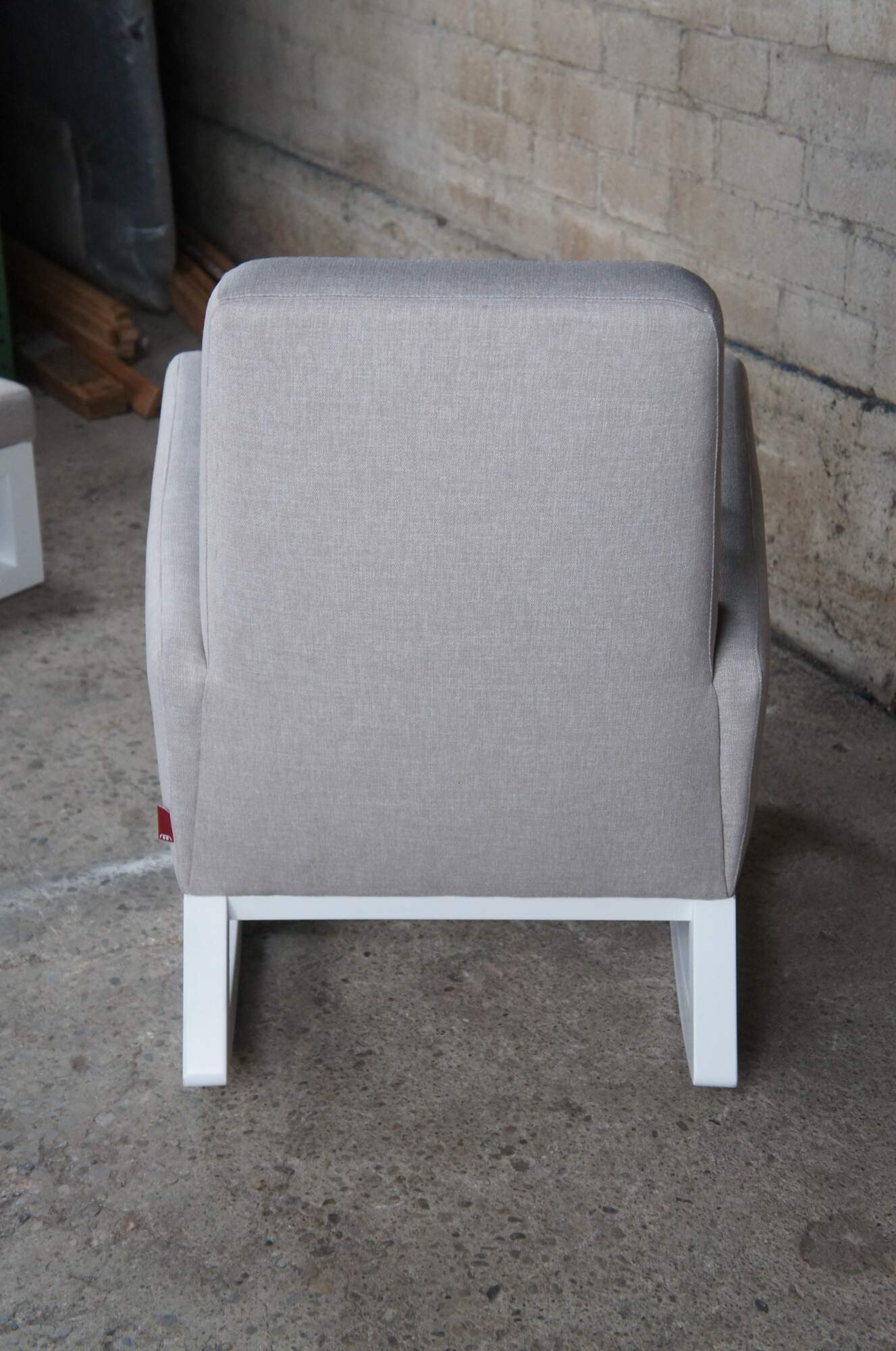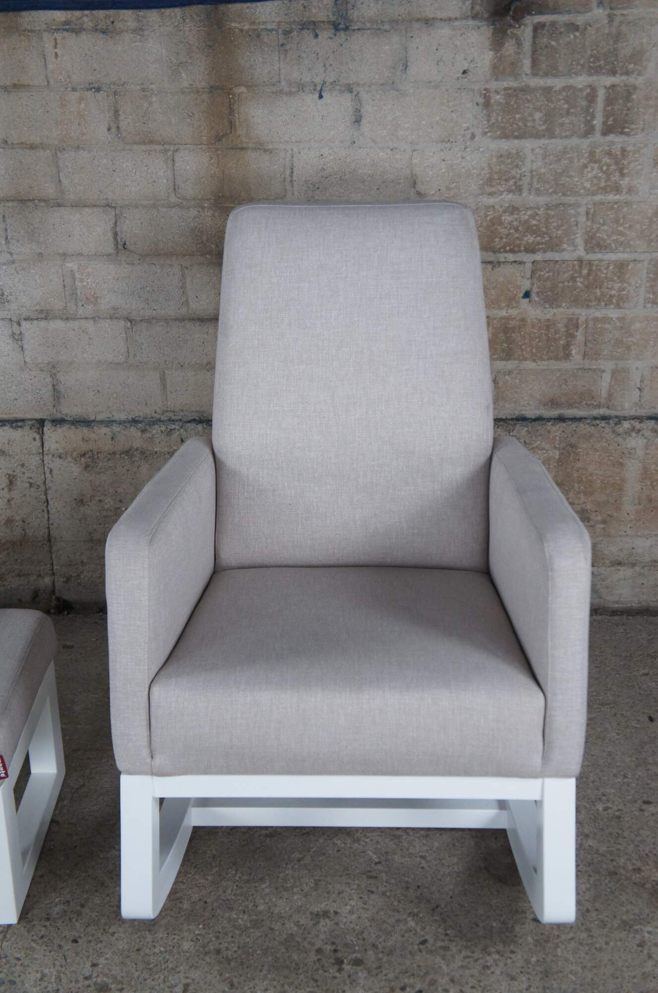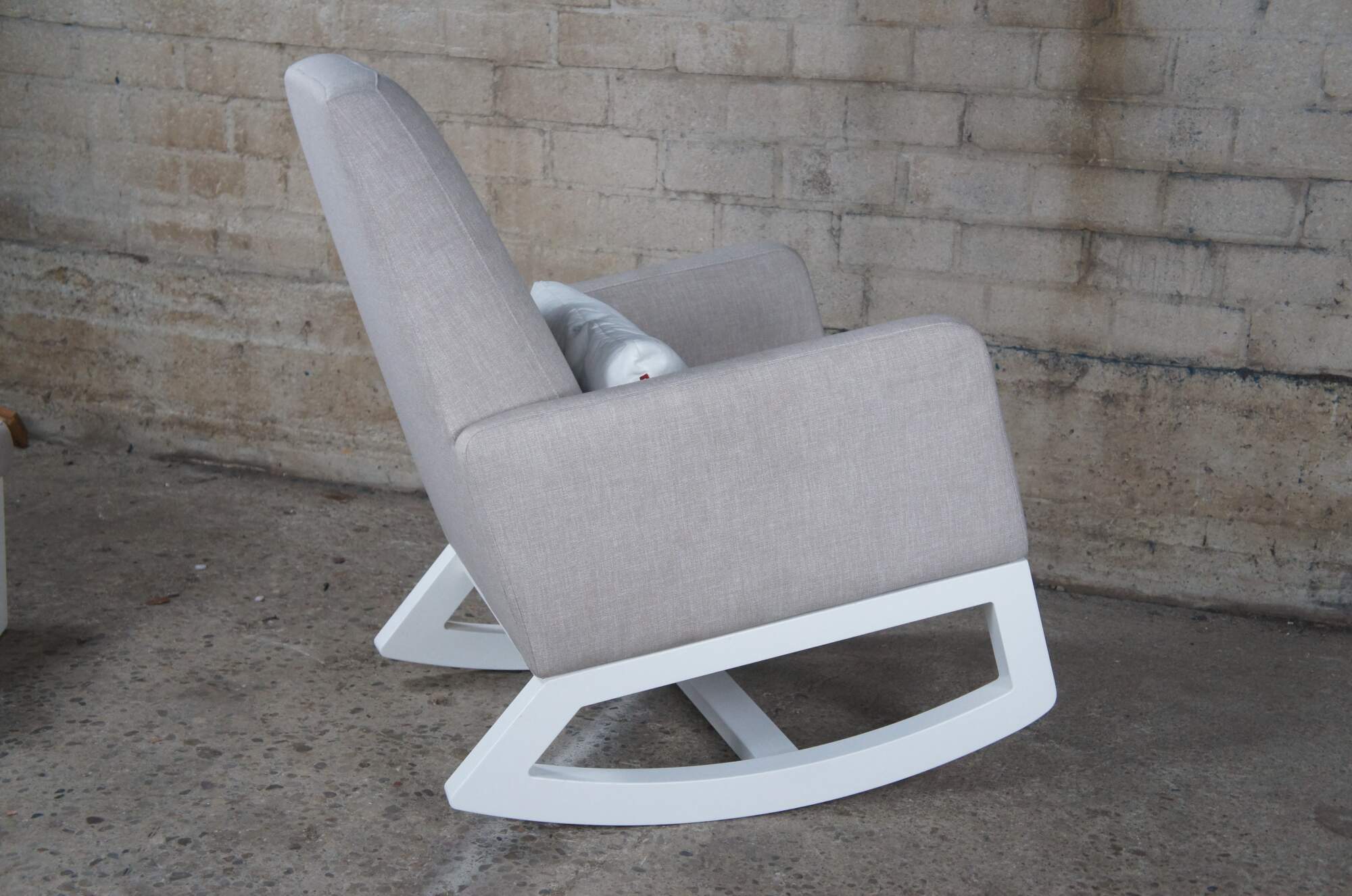 A stylish rocking chair and ottoman designed by Monte for you and your little bundle of joy. Comfy, with a smaller footprint, our Joya Rocking Chair gently rocks back and forth on solid wood frame. It will hug you in all the right places and keep you supported for hours with your little one. And, like all of our upholstered seating, its look will work in any room when baby makes the move to big kid bed.