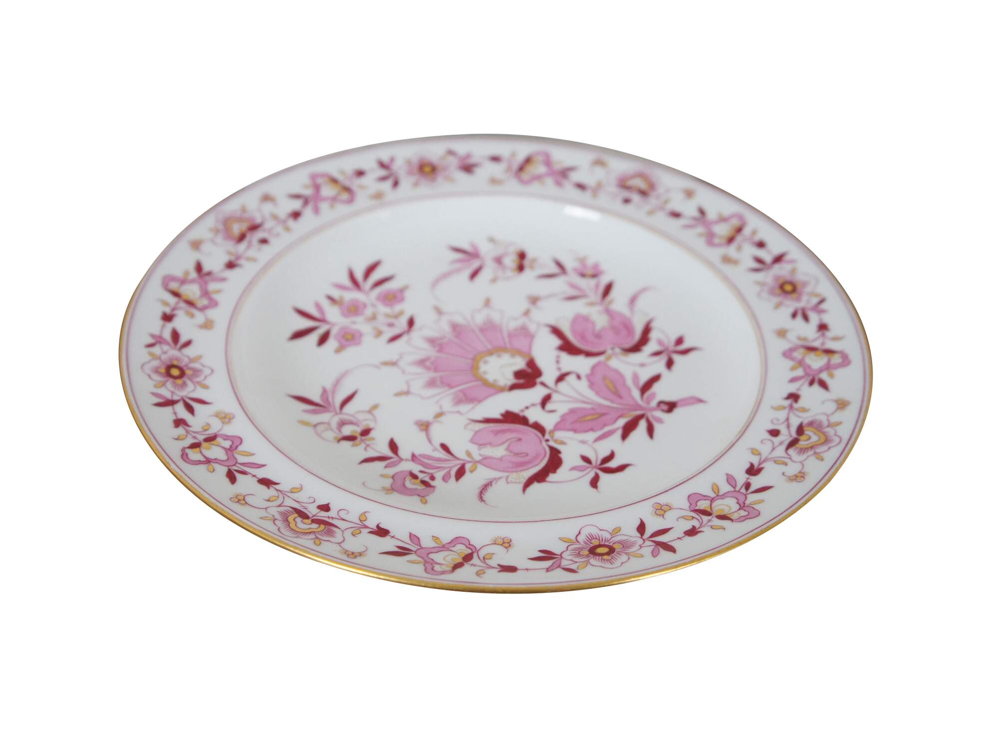 Antique Meissen dinner plate featuring a floral swag of flowers and central fan and the 1815 to 1860 crossed swords mark.