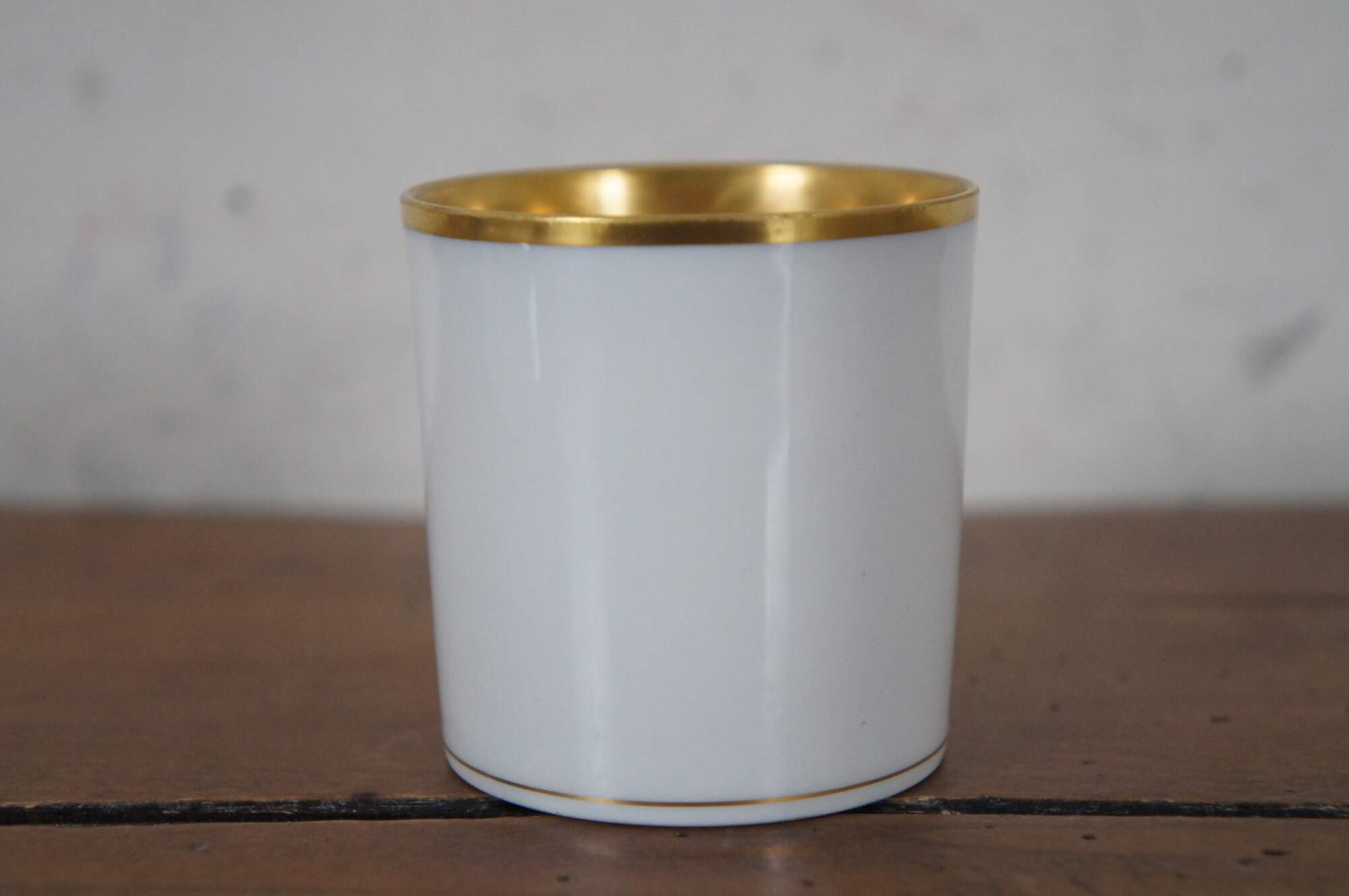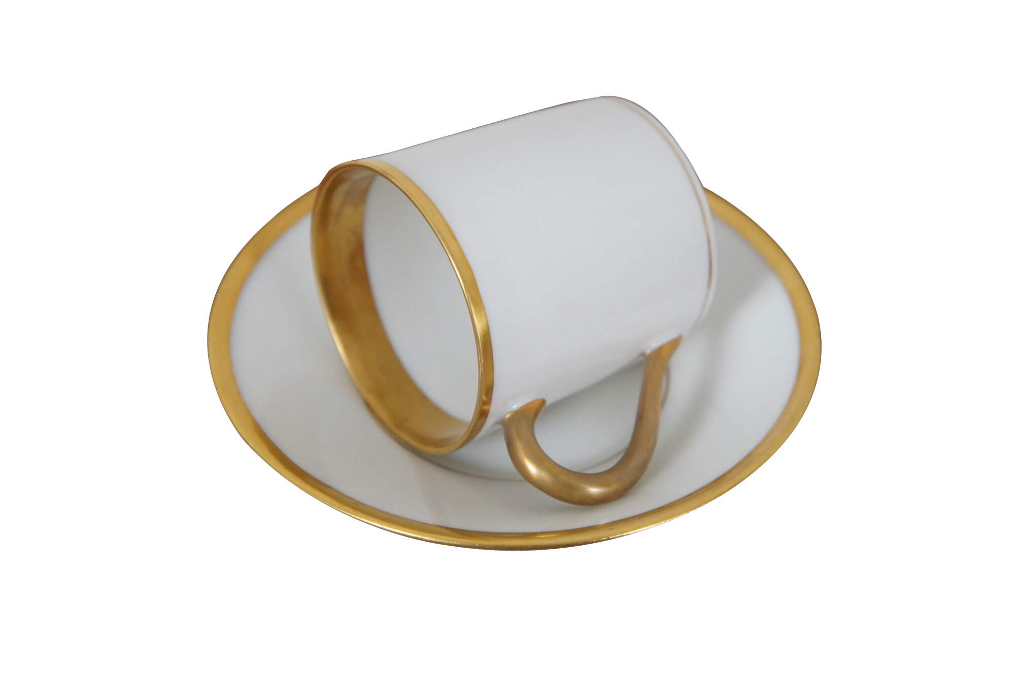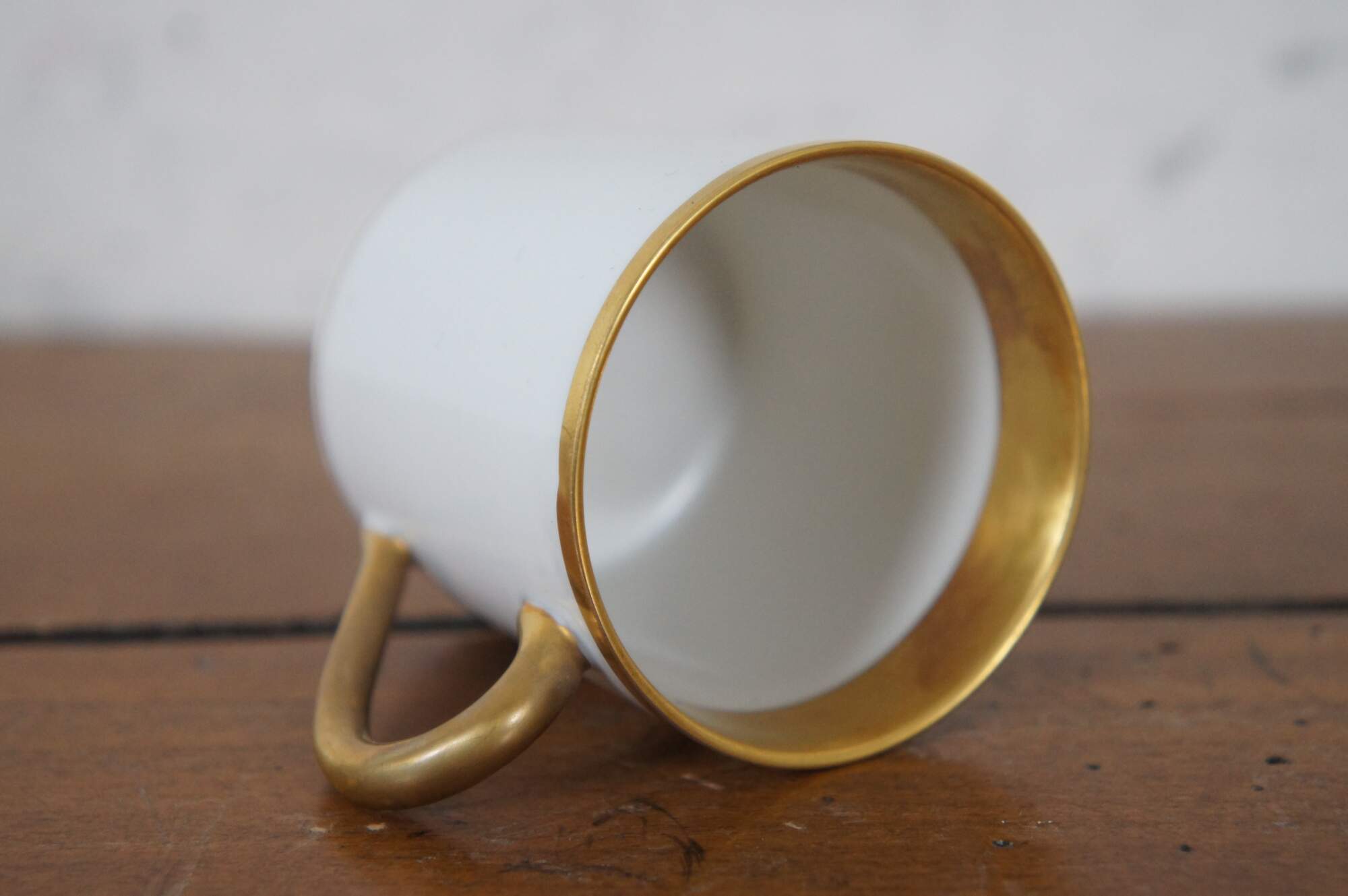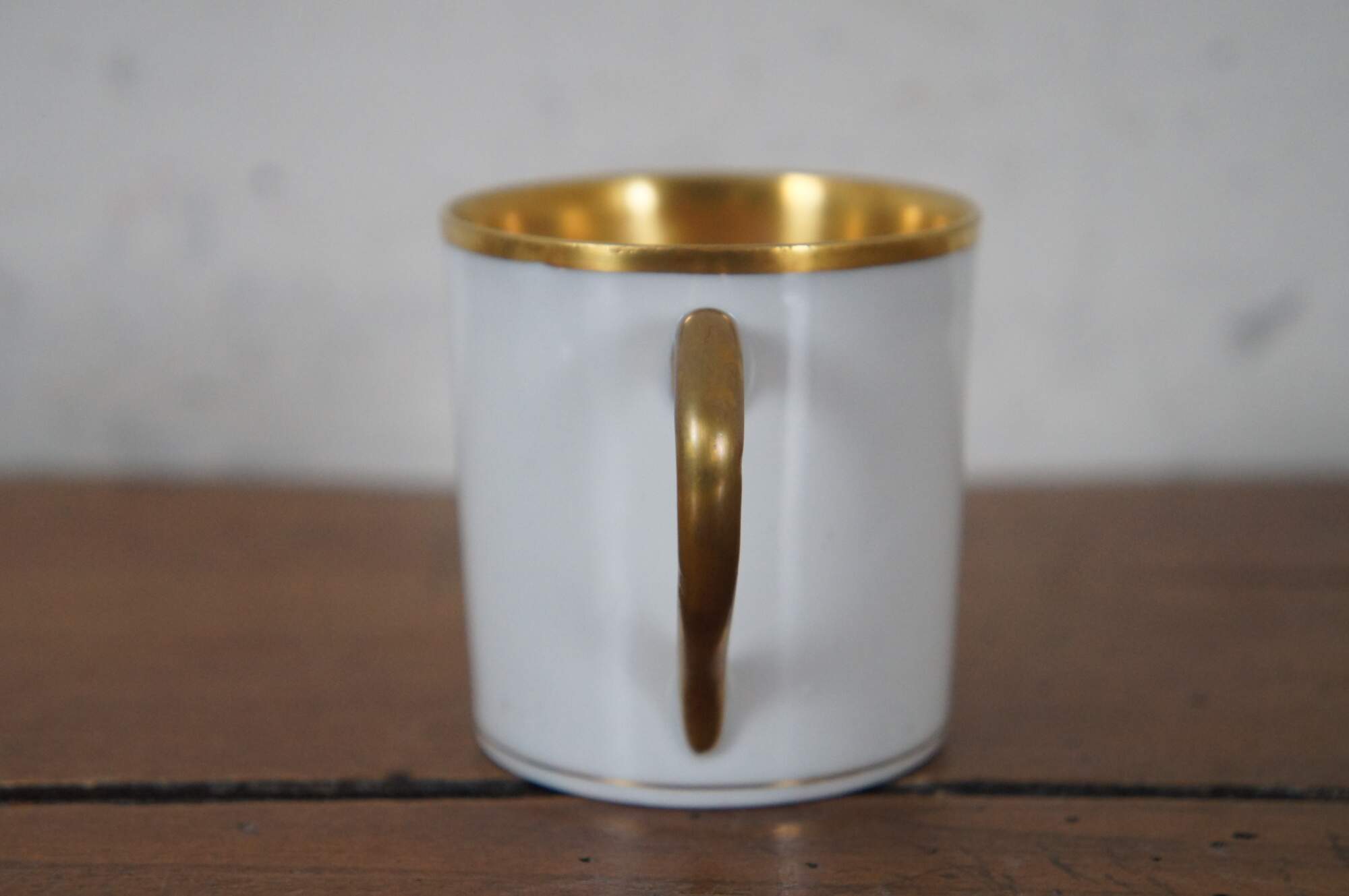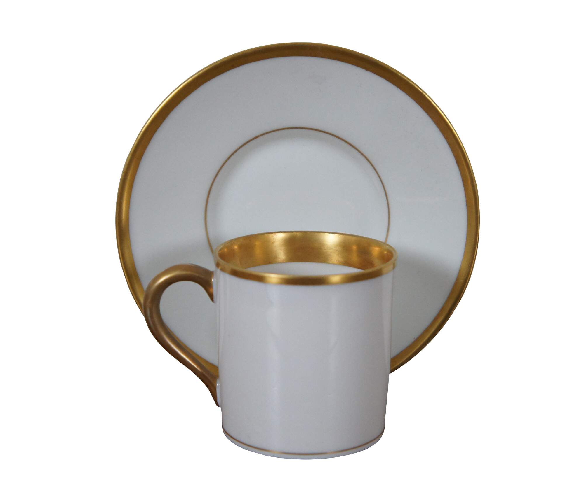 Antique French Limoges demitasse teacup and saucer featuring gold trim. Made in France.