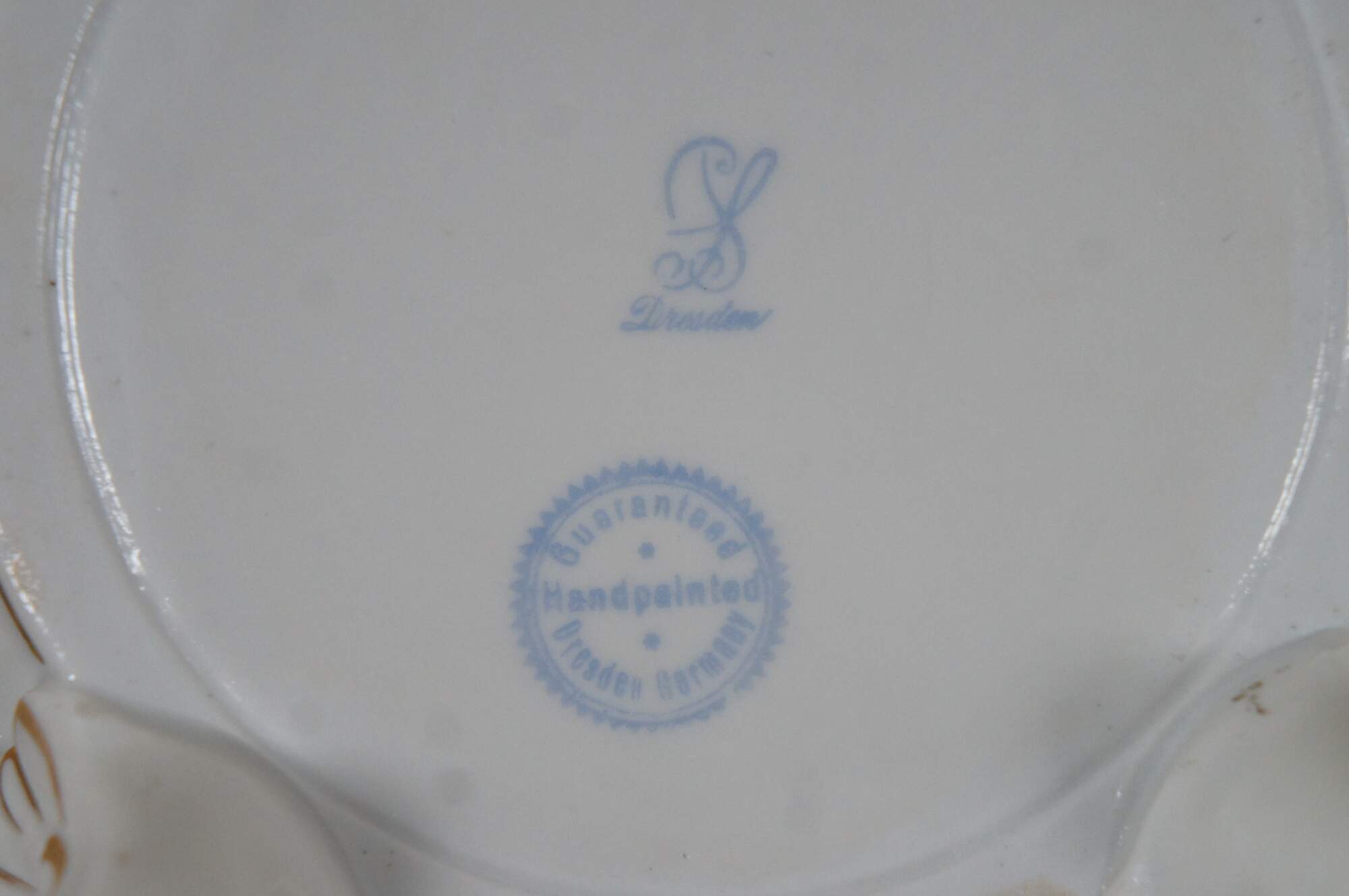 “The Sächsische Porzellan-Manufaktur Dresden GmbH (Saxon Porcelain Manufactory in Dresden Ltd), generally known in English as Dresden Porcelain, is a German company for the production of decorative and luxury porcelain. Founded in1872, it is located in Potschappel, a suburb of the town of Freital in the Sächsische Schweiz-Osterzgebirge district about 8 km (5 mi) southwest of Dresden, the capital of Saxony. Dresden Porcelain introduced its blue "SP Dresden" trademark in 1902.”