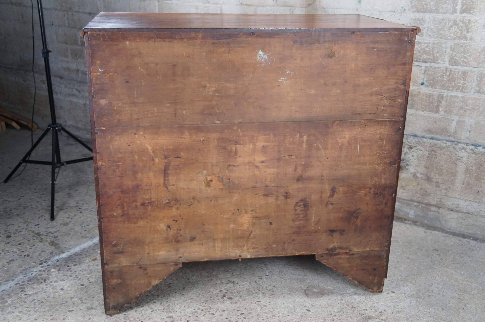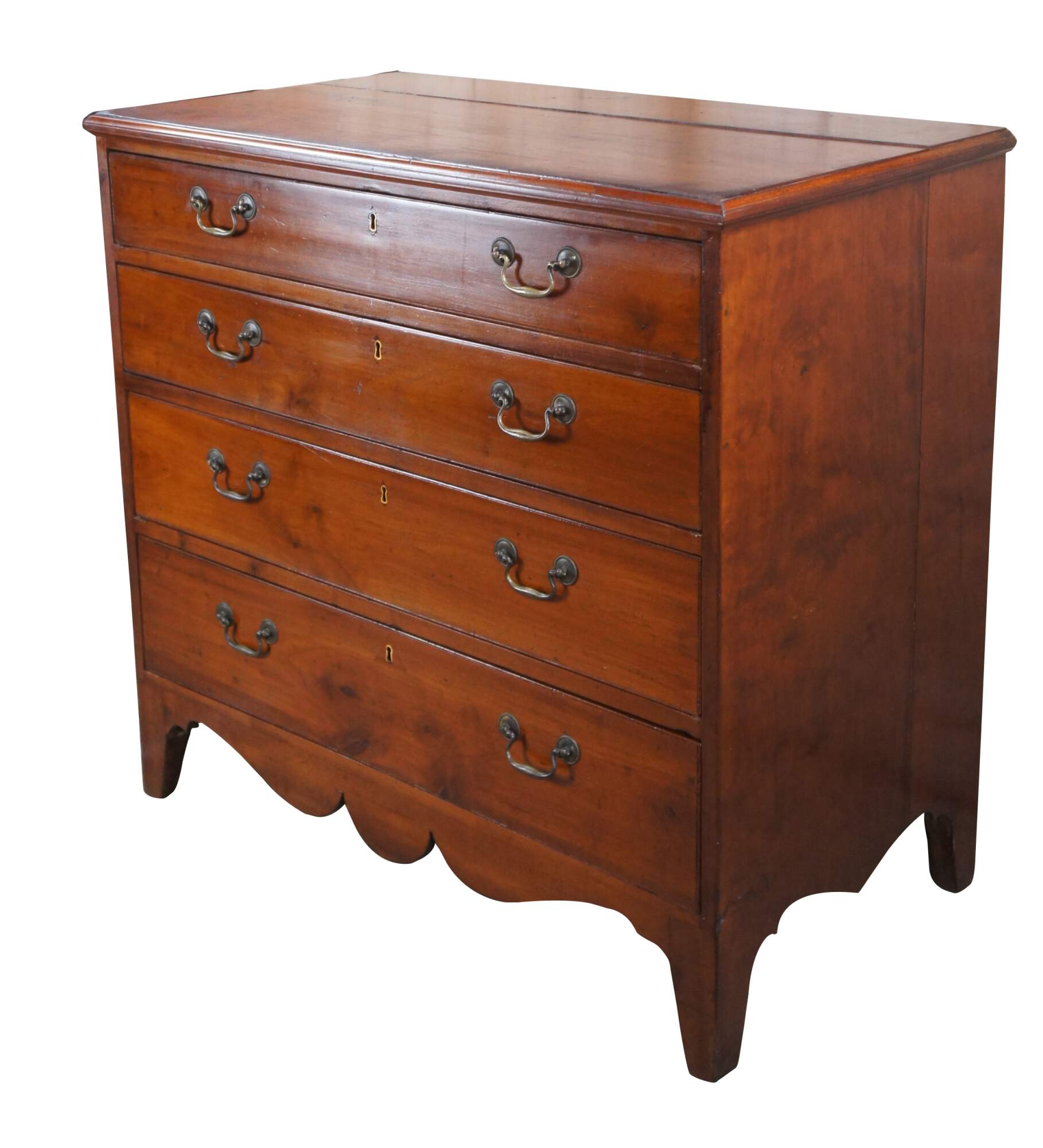 Antique early American dresser or chest of drawers. Made of cherry featuring four hand planed and dovetailed drawers with brass hardware and sepentine skirt. Circa early 19th century.