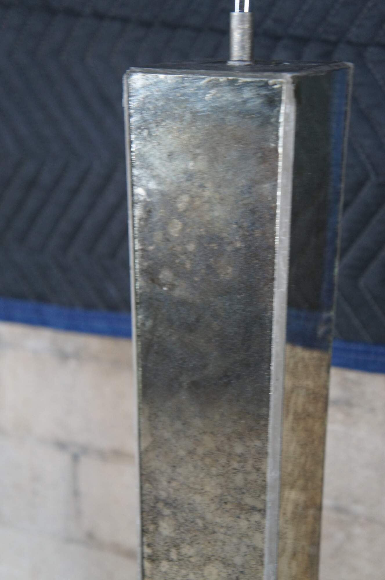 Vintage Venetian style mirrored floor lamp featuring tapered design with antiqued panels and two pull chain lights.