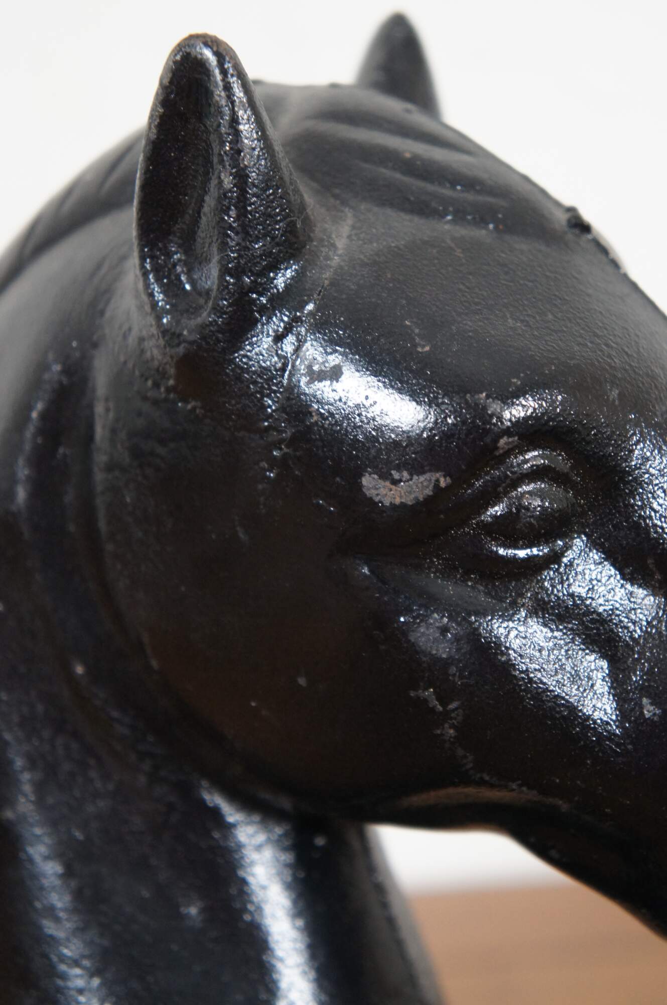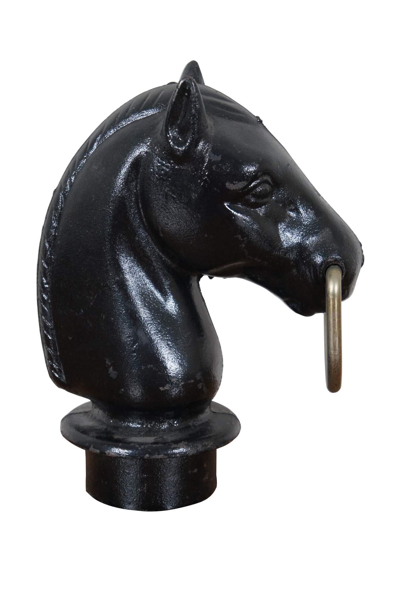 Vintage heavy cast iron horse head hitching post. Marked BM-015.