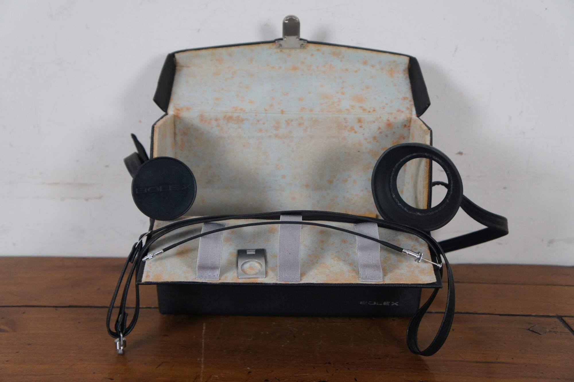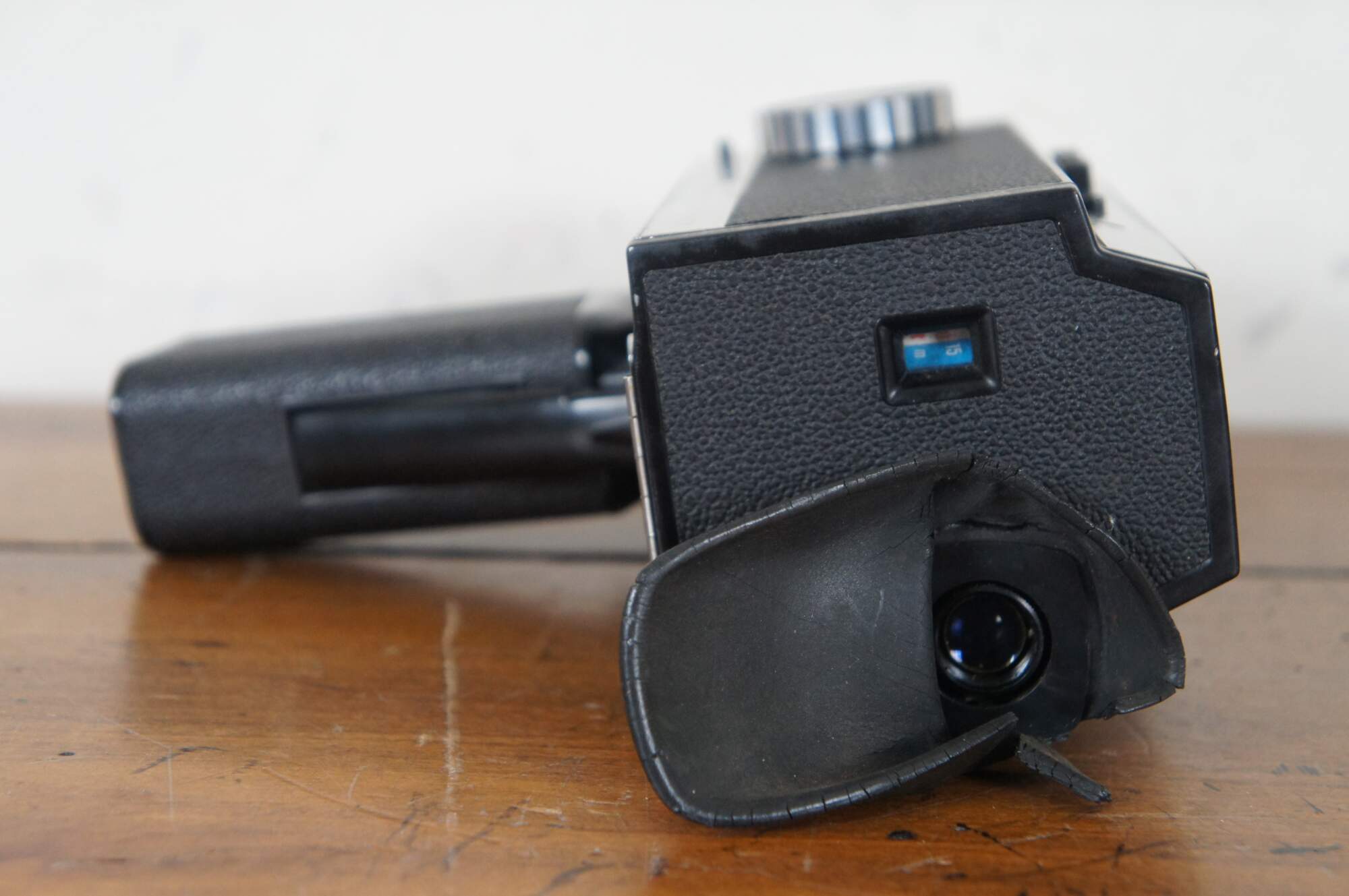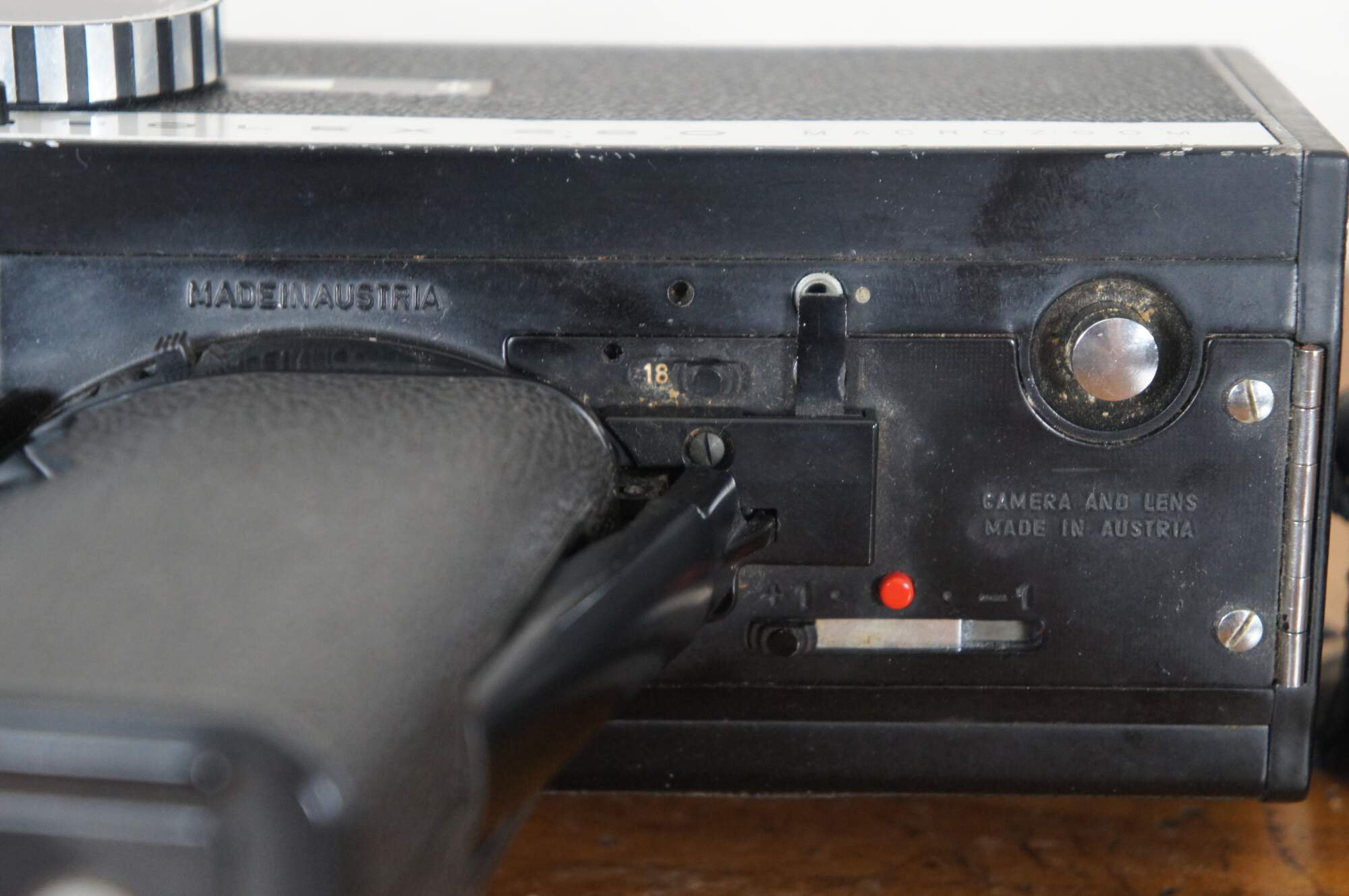 Vintage Bolex 280 Macrozoon video camera and case. Includes camera strap, remote shutter button, lens cap, rubber lens hood, and camera strap. Made in Austria.