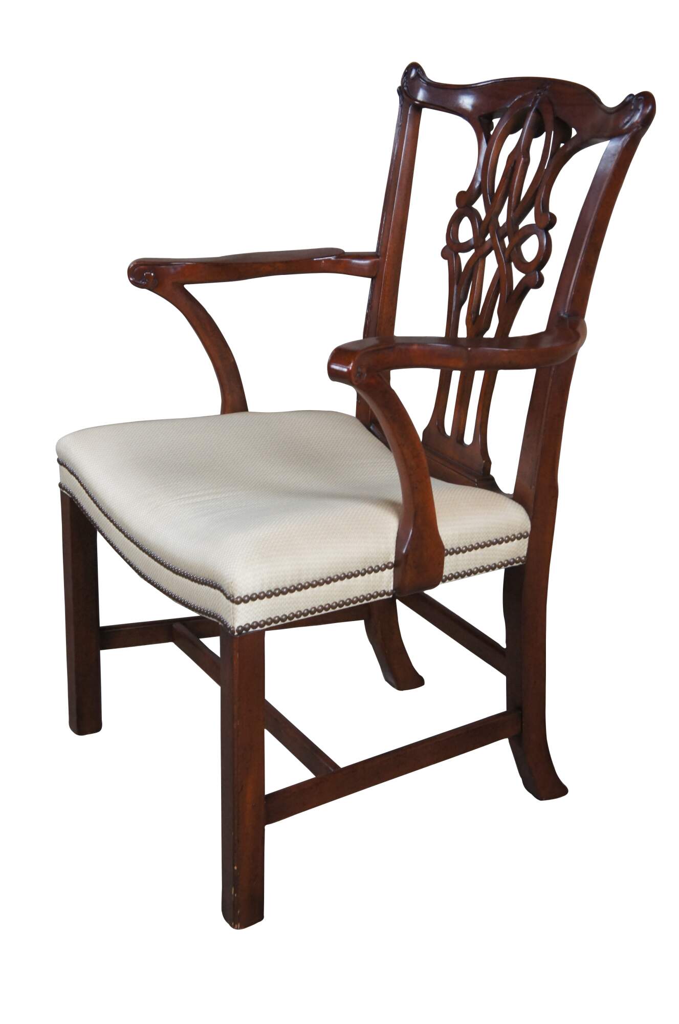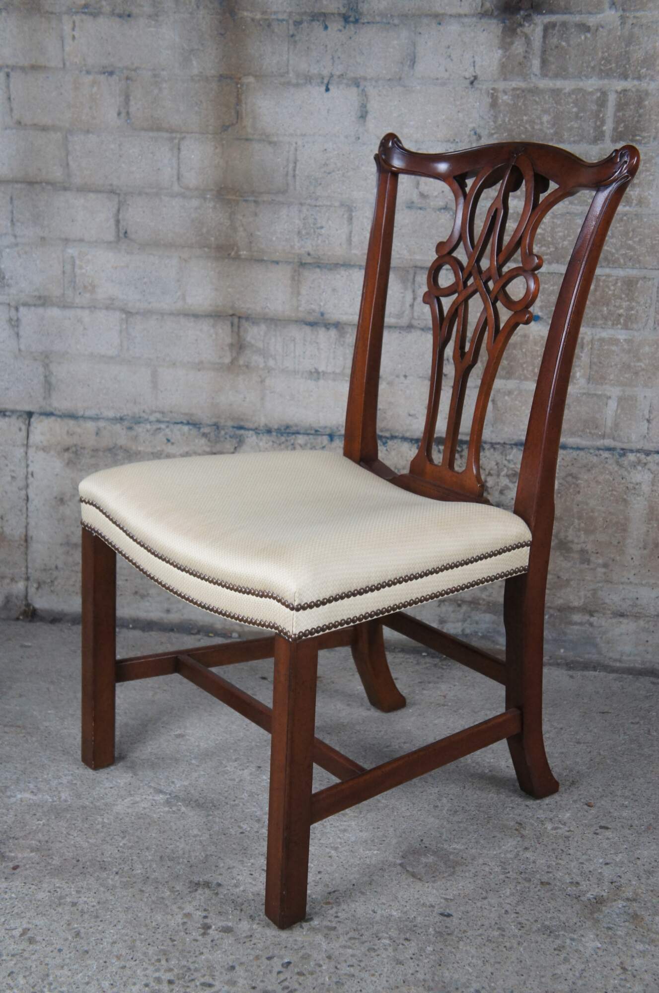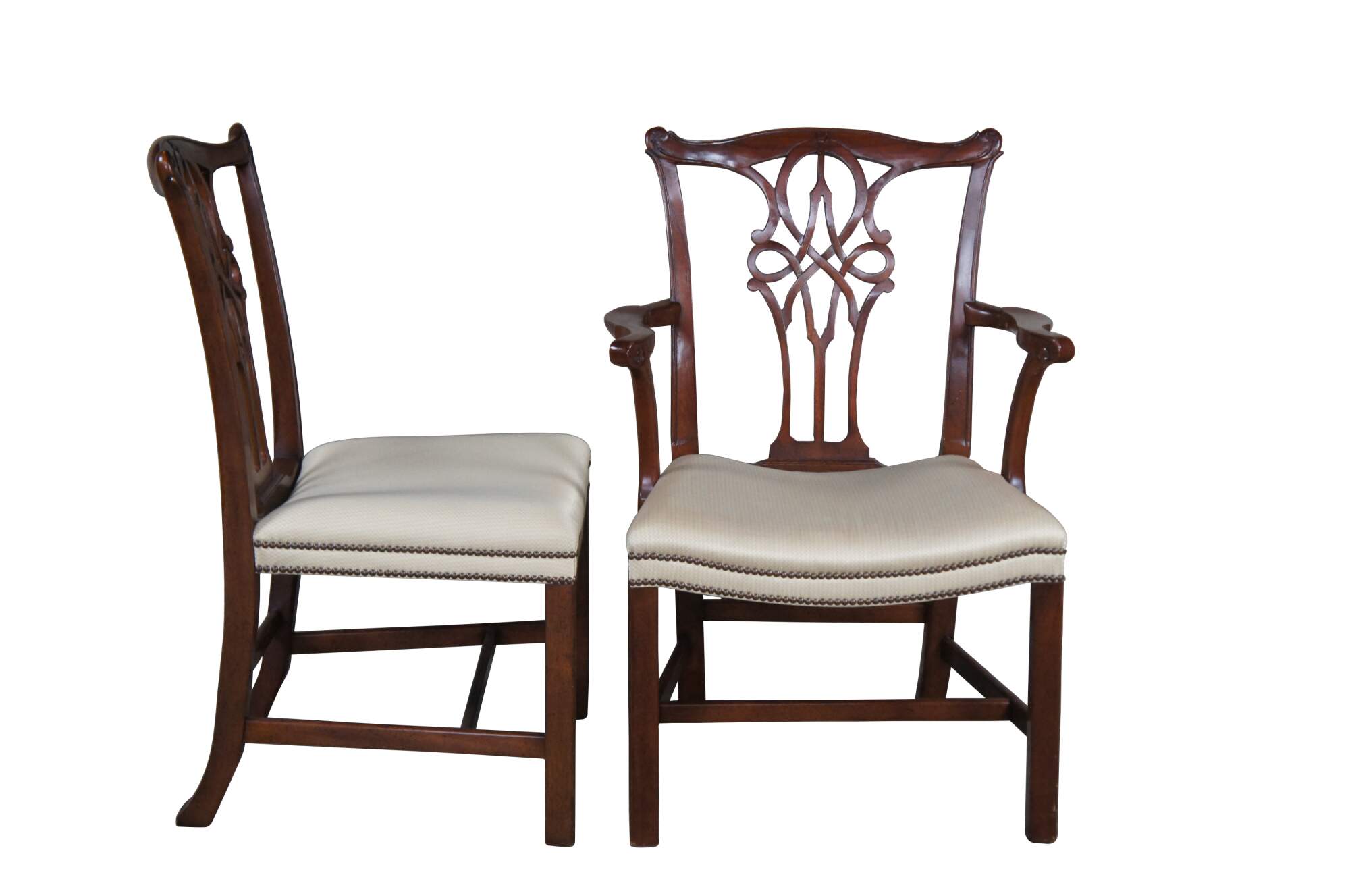 A rare and exceptional set of eight fine Chippendale carved mahogany dining chairs from the exclusive Stately Homes Collection by Baker Furniture.