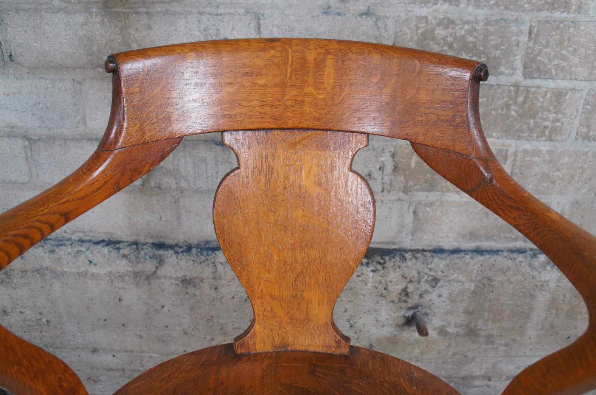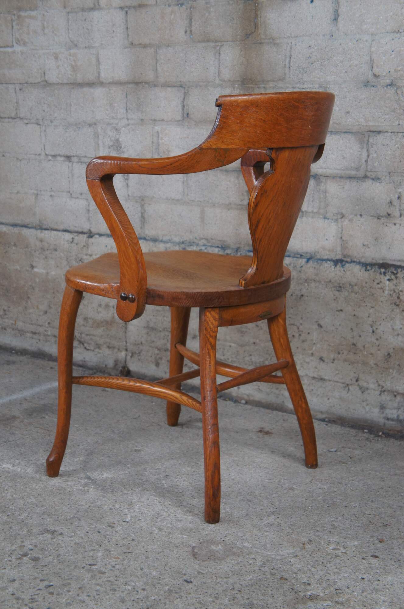 Antique Victorian desk chair by Milwaukee Chair Company. Made of quartersawn oak featuring serpentine form with trophy back splat and high arms.