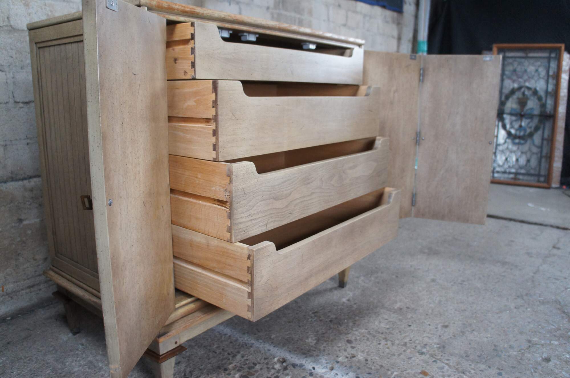 Mastercraft was founded in Grand Rapids, Michigan in 1946 by brothers Charles and William Doezema-who came from a family of cabinet makers. The Doezema brothers went overseas during World War II and returned to the US planning to make furniture with an urban cosmopolitan style. Mastercraft specialized in chairs and case pieces with traditional forms and modernized veneers and finishes. In 1974 Mastercraft was acquired by Baker Furniture and Vancouver based artist Bernhard Rohne designed large case pieces. The bold and artful statement of Mastercraft furniture tables chairs and cases are popular with collector’s today.