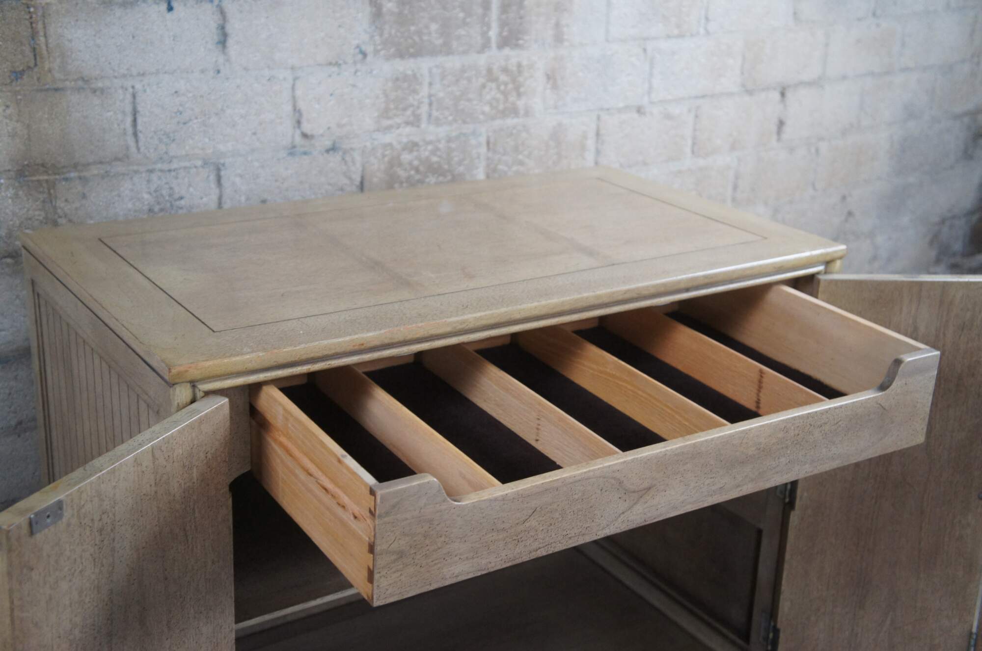 Rohne moved to Vancouver, British Columbia, Canada in 1967. During the 1970s, Grand Rapids-based furniture manufacturer Mastercraft — known to collectors of mid-century modern and Hollywood Regency design — partnered with Rohne and produced a large group of case pieces featuring applied brass plaques and panels, acid-etched with forms and patterns that are marked by the influence of Abstract Expressionism and Geometric Abstraction.