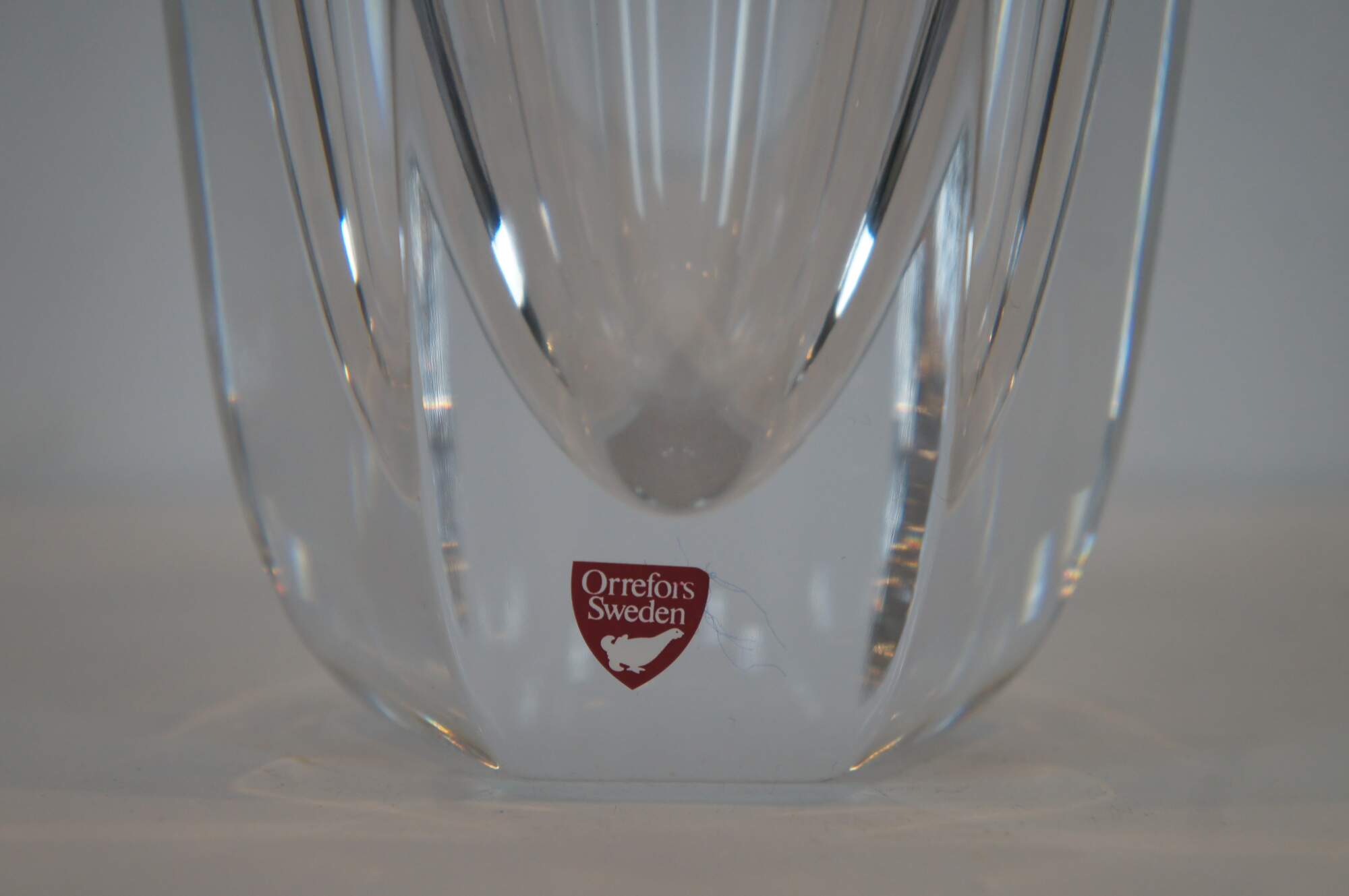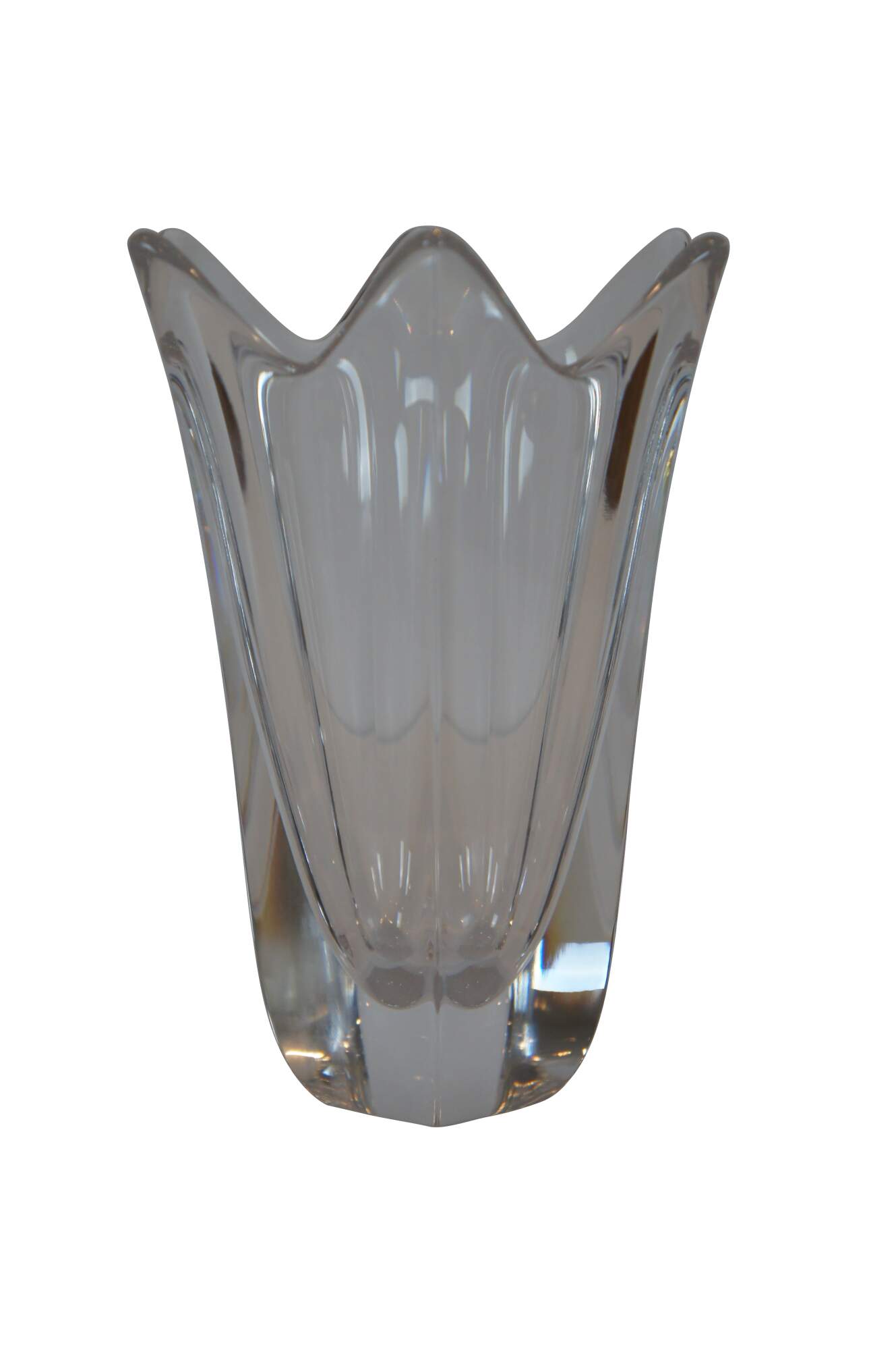 Vintage heavy Orrefors Crystal Belle flower bud vase featuring scalloped form. Made in Sweden.