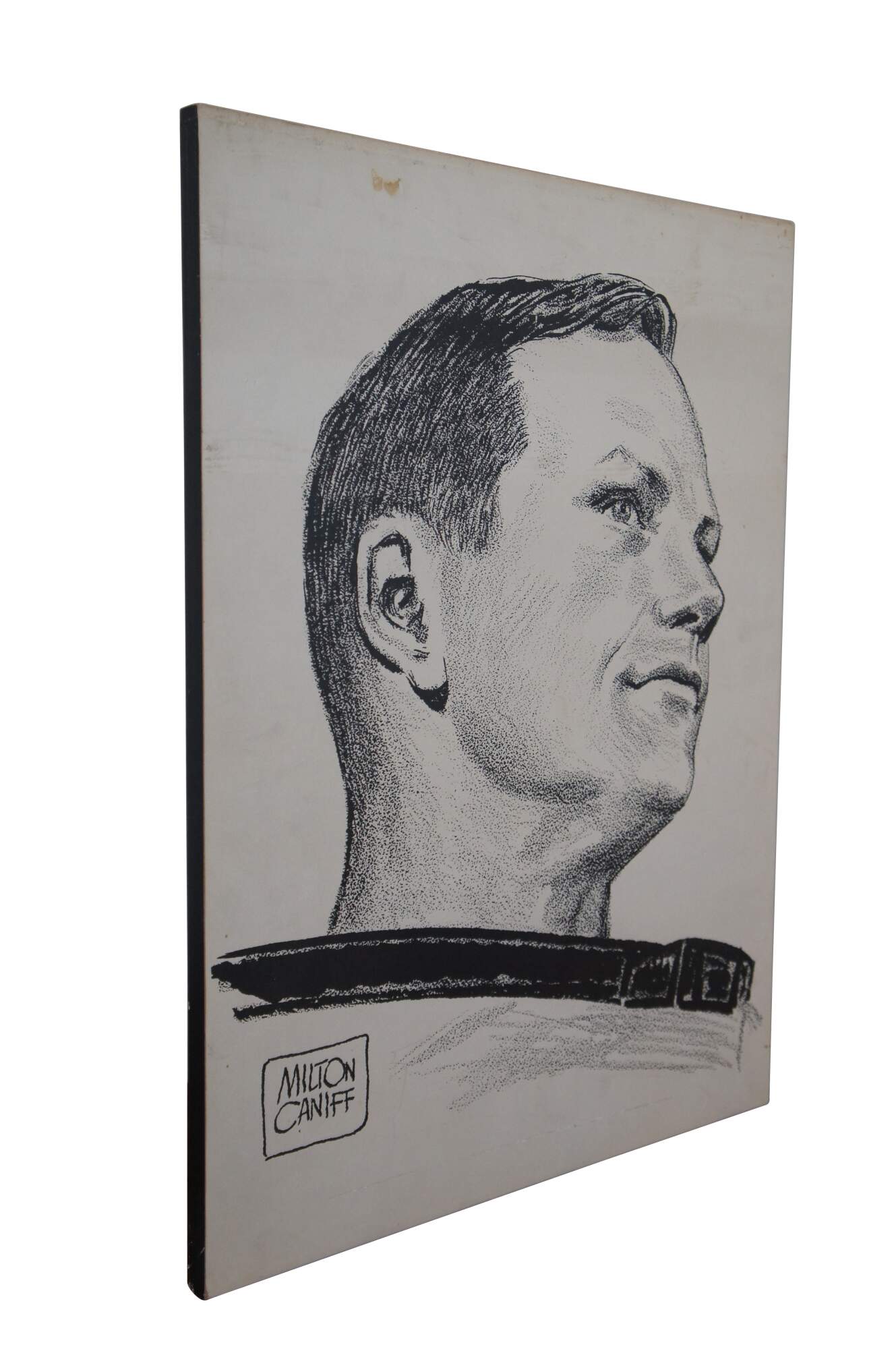 Vintage Milton Caniff Neil Armstrong portrait print on board.