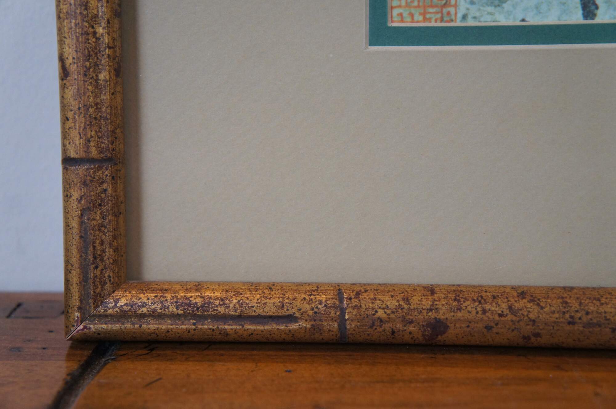 Vintage Qian Xuan, Early Autumn, lithograph print in faux bamboo frame. Qian Xuan was one of the first scholar-painters to unite poetry, painting, and calligraphy within a single work.