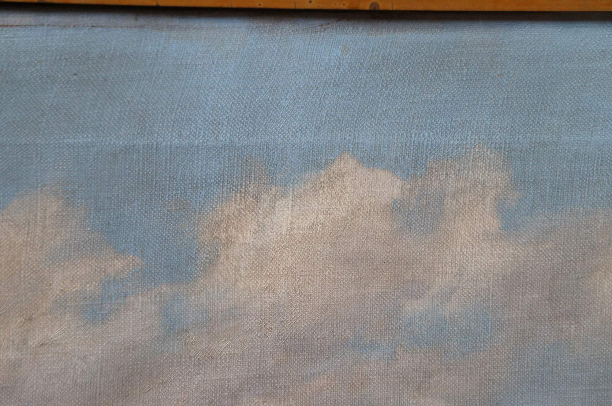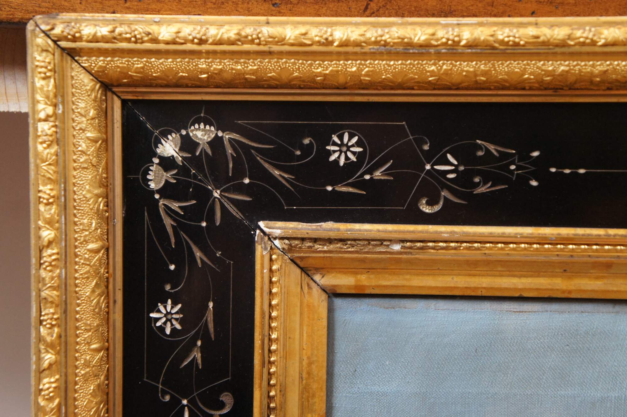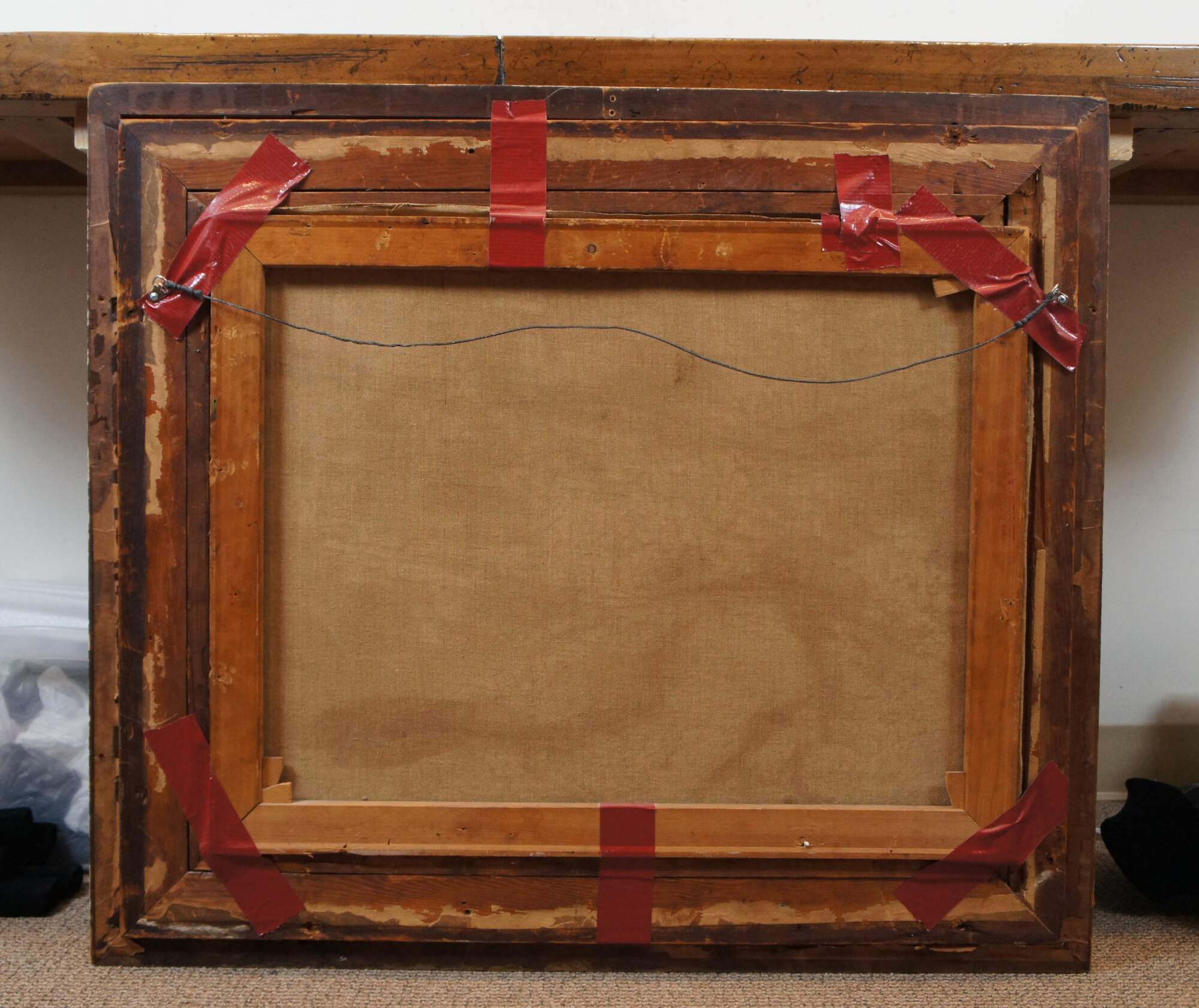 Good Overall - wear to frame, missing trim, splitting, wear to canvas, staining / spotting, canvas taped to frame.
