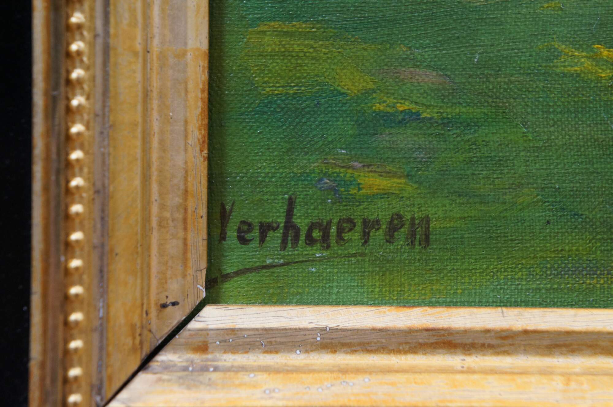 Born in Antwerp, Belgium on June 18, 1908. Verhaeren was from a long line of Flemish artists. With his family, he fled to London, England during WWI. There he first learned to paint from the sidewalk artists before moving to Canada where he studied with George DeVore for five years. For ten years he had a studio in Detroit, MI. Having made trips to California in the 1930s, in 1946 he settled in La Jolla where he established a studio-gallery and taught art. He often painted with Alfred Mitchell in the back country. An Impressionist, he used a palette knife to create landscapes and portraits. An aborted love affair led to his suicide on Sept. 14, 1956.
