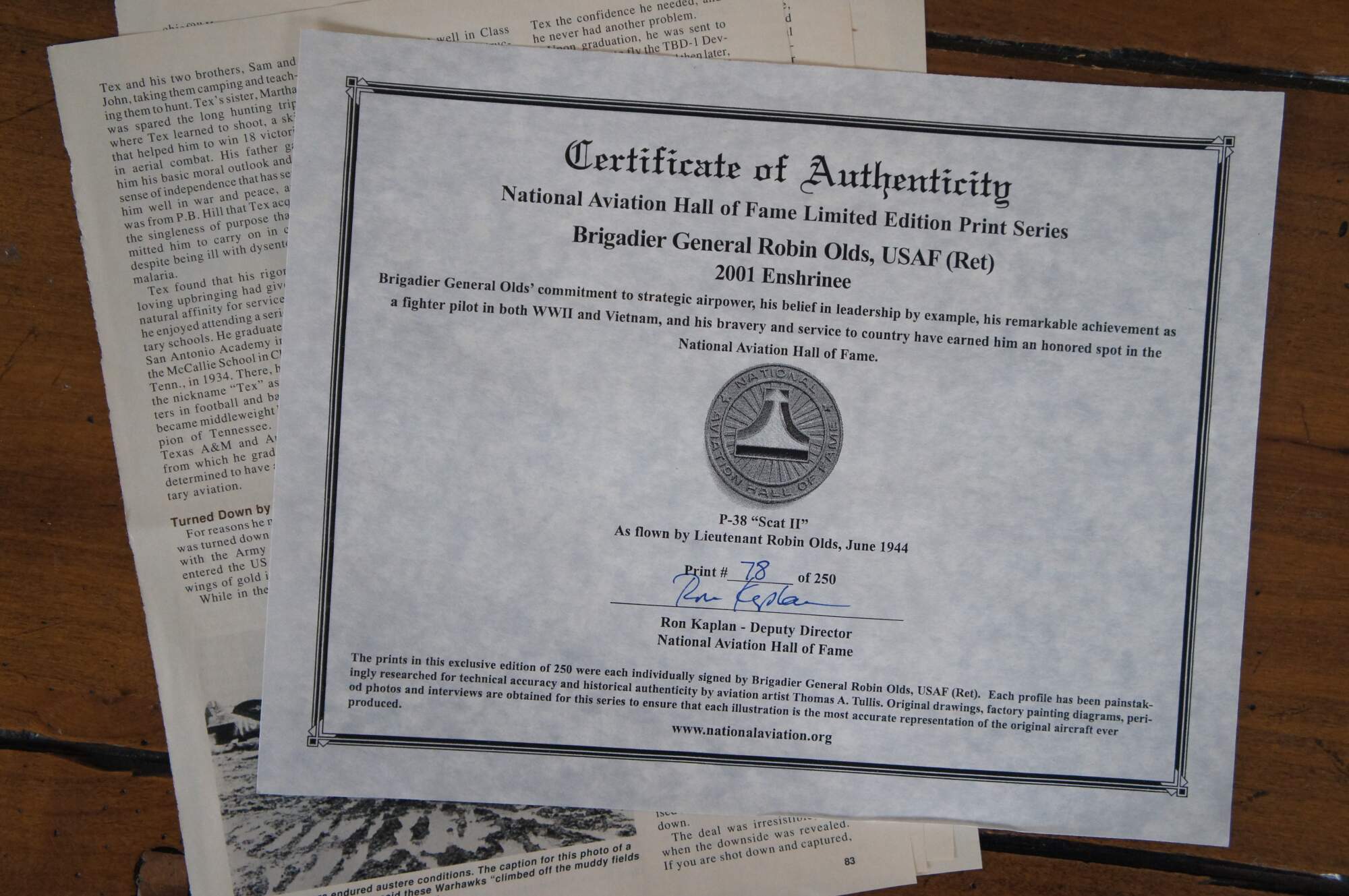 National Aviation Hall of Fame Limited Edition Print Series, signed numbered and professionally framed