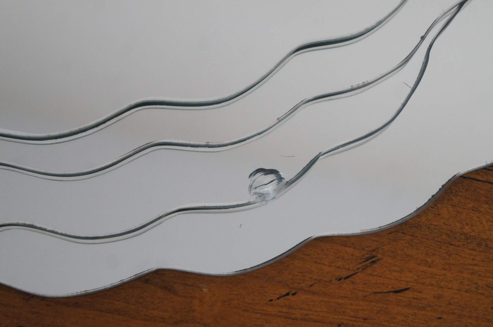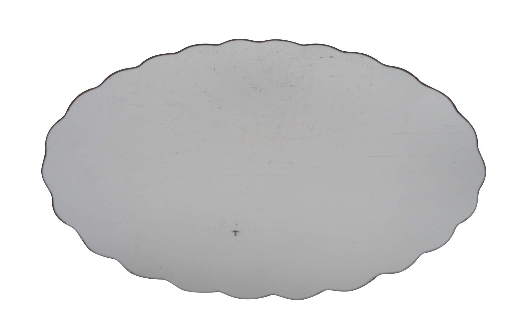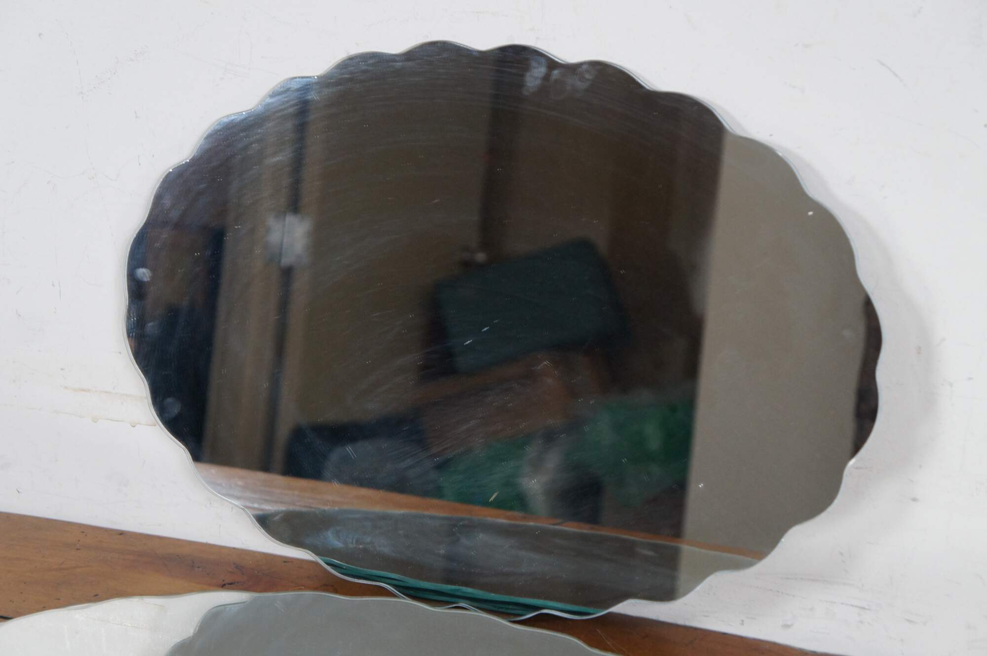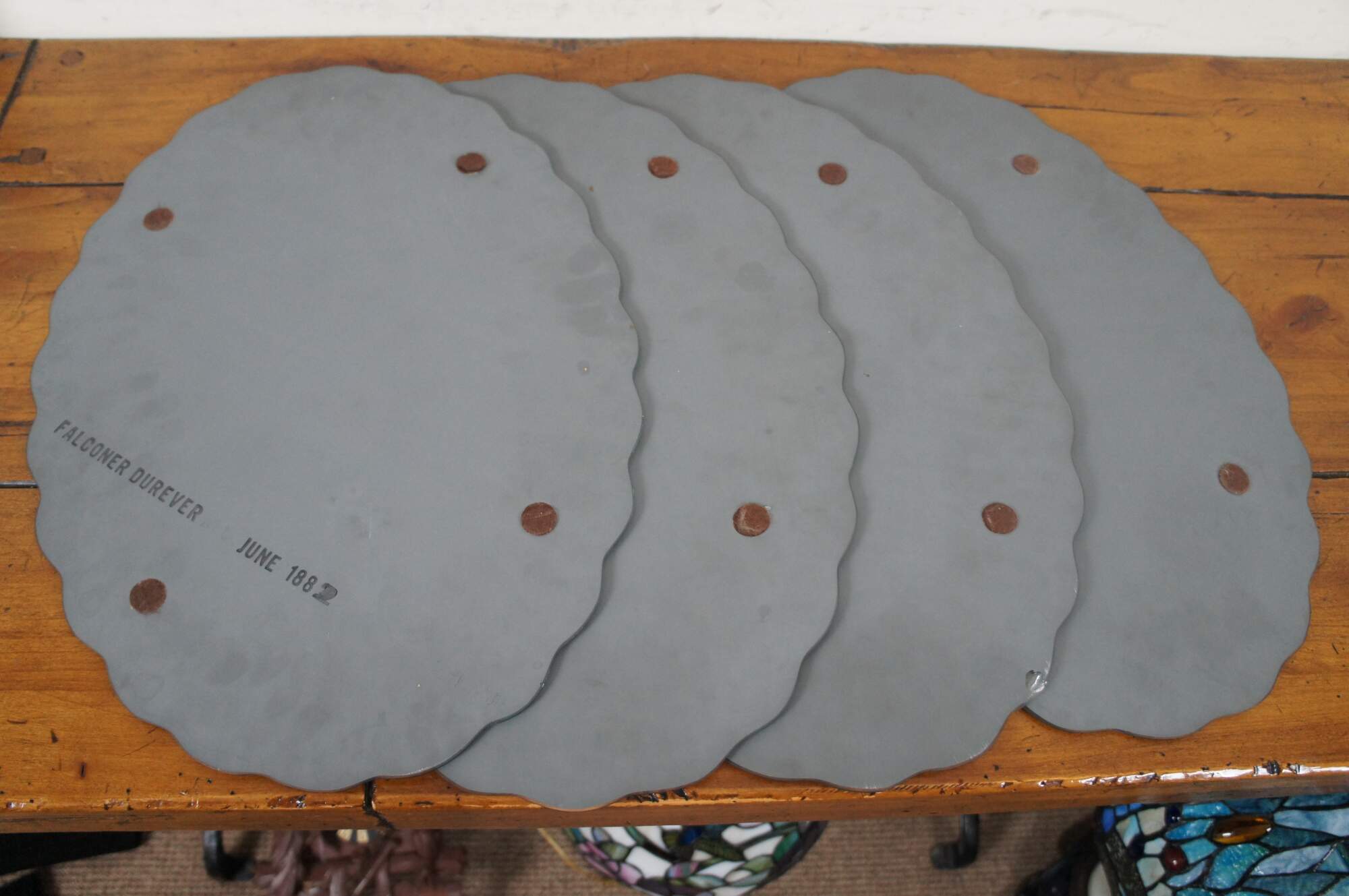 Vintage custom made Falconer Durever mirrored place mats. Made of glass featuring French style scalloped oval form. This very hard cut to make was ordered by our client circa June 18, 1982.