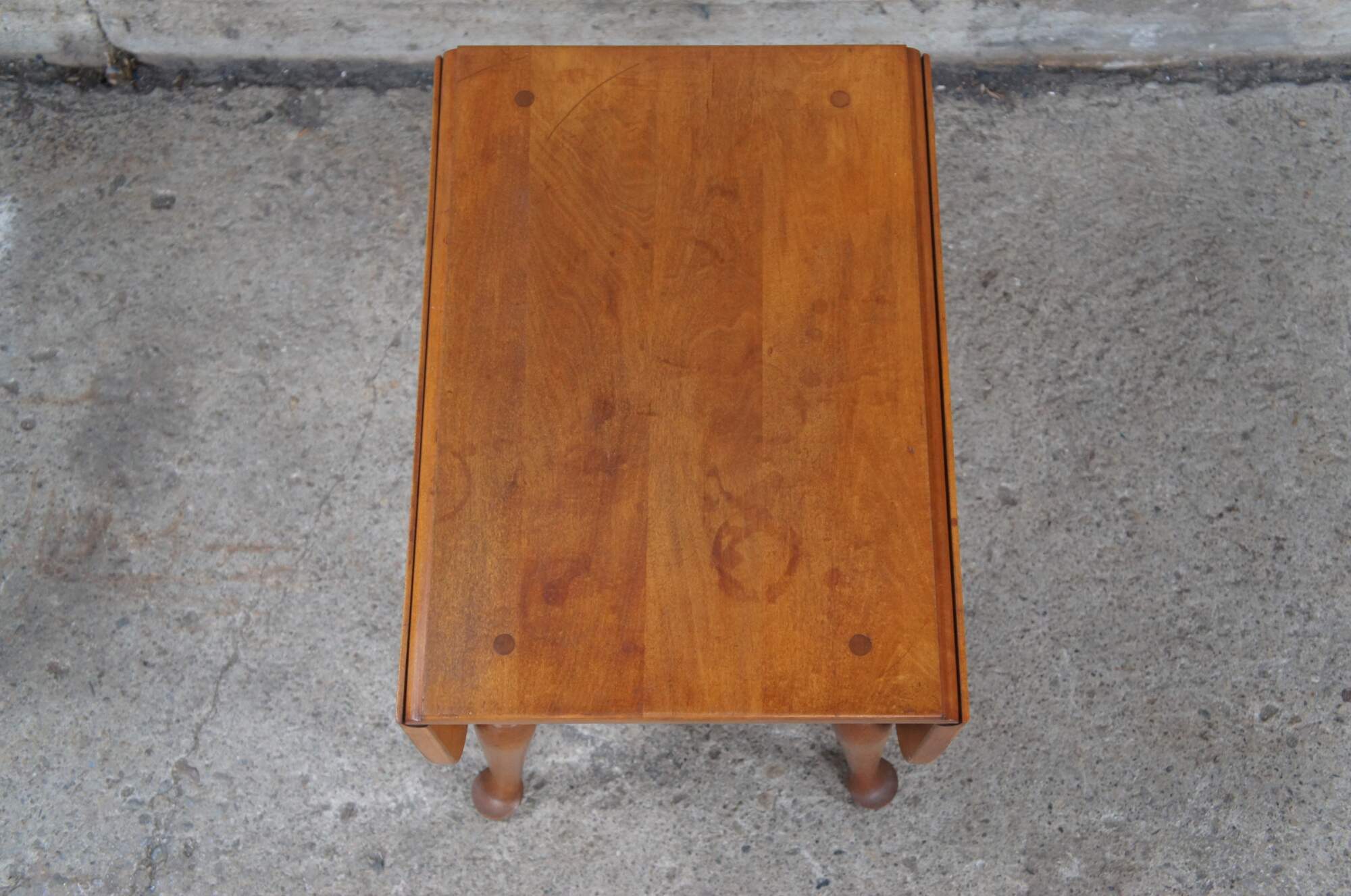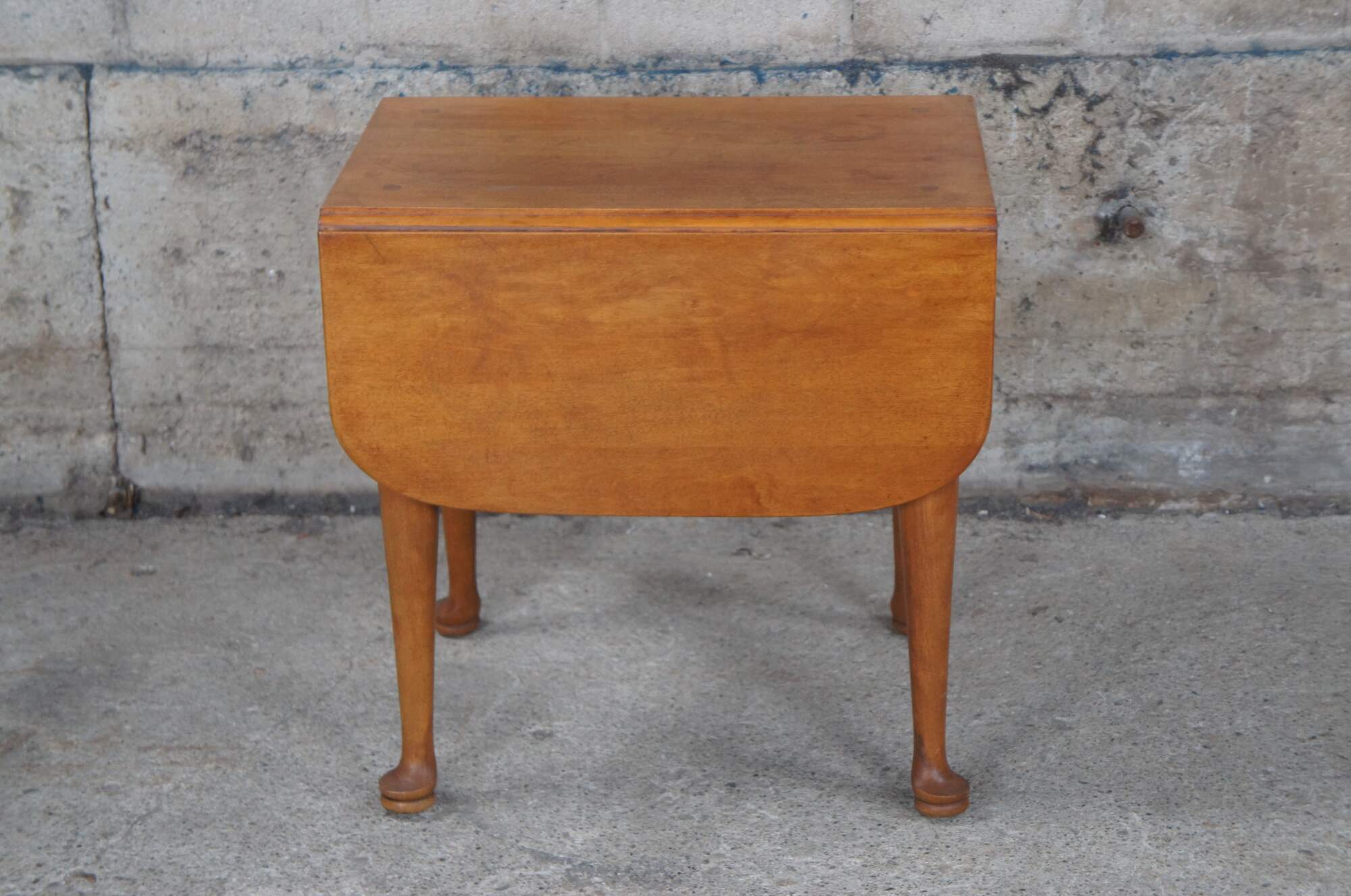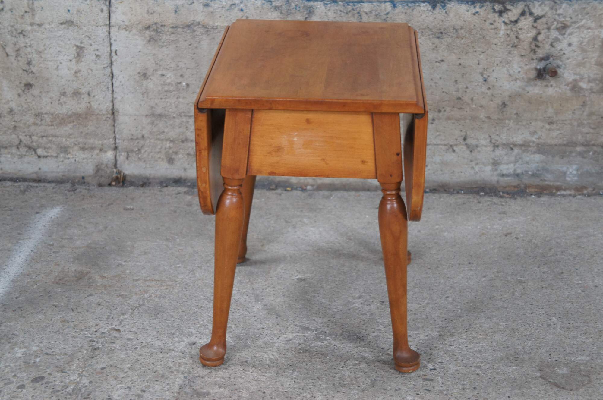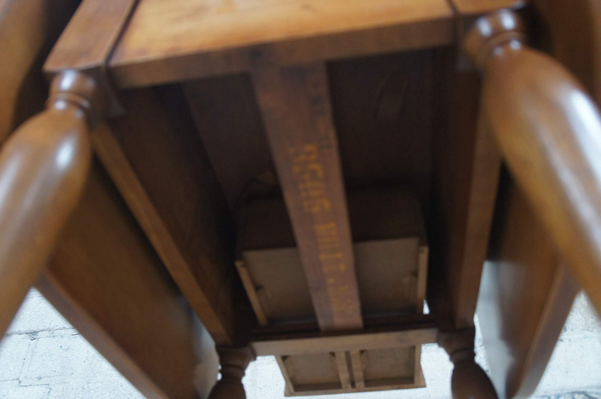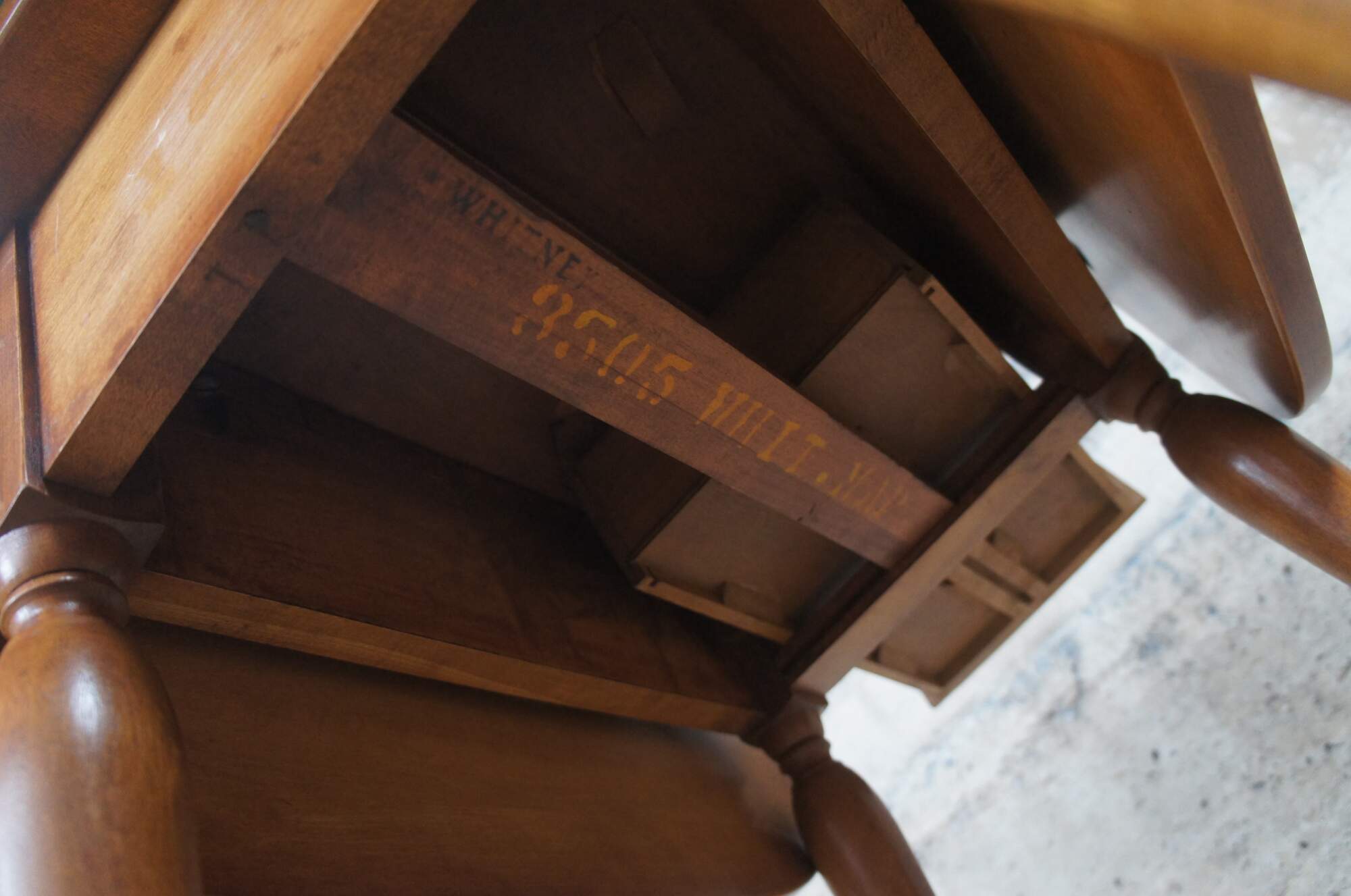 A quaint side table by W.F. Whitney Company, circa mid 20th century. Features 18th century Early American / William & Mary styling with a central drawer over turned legs leading to pad feet. Marked 3505 long underside.