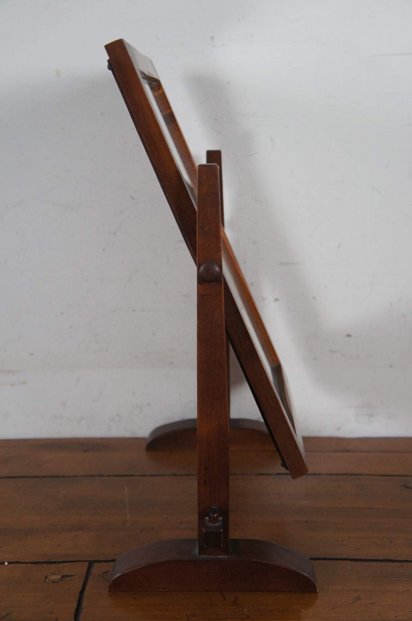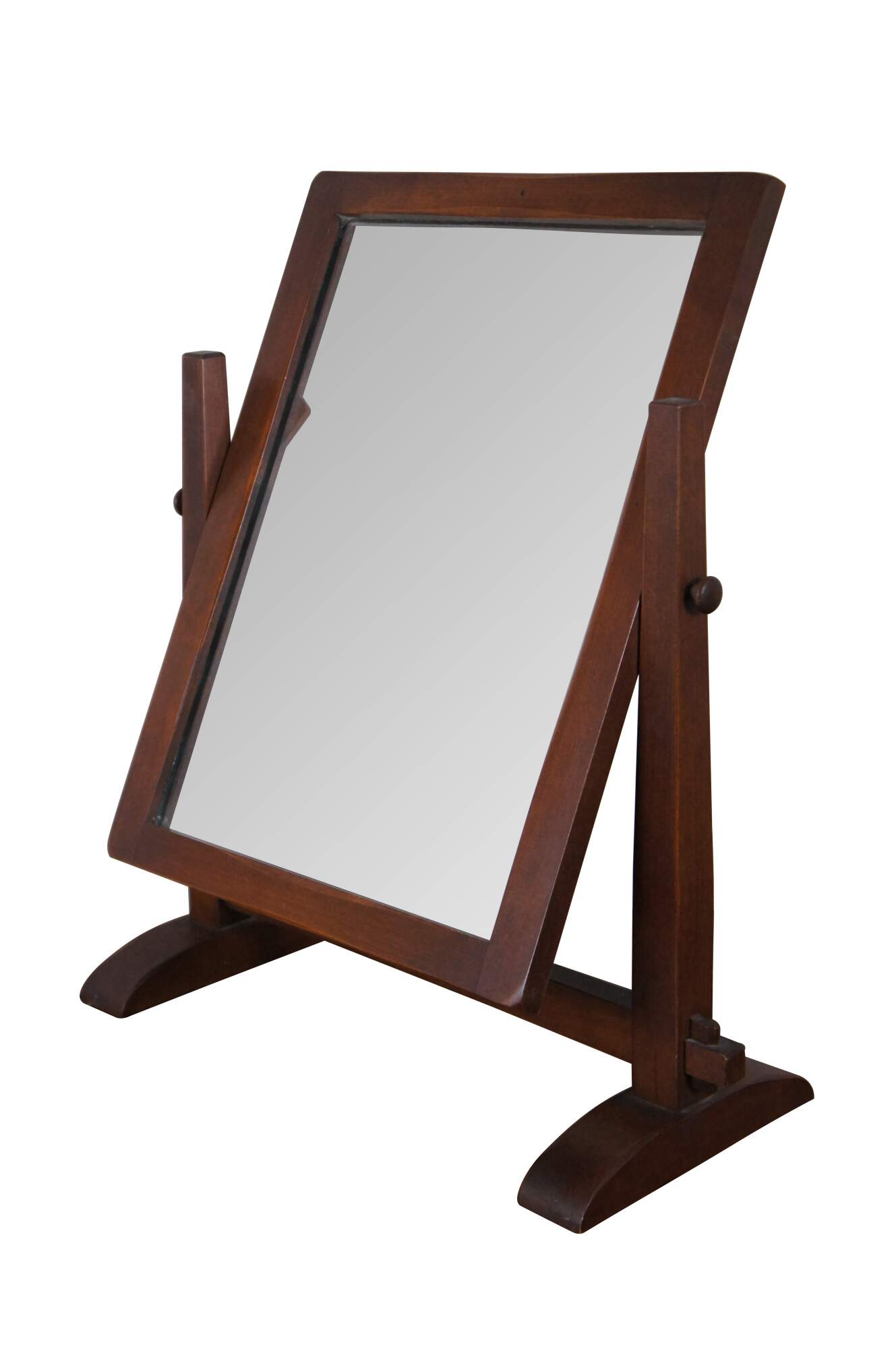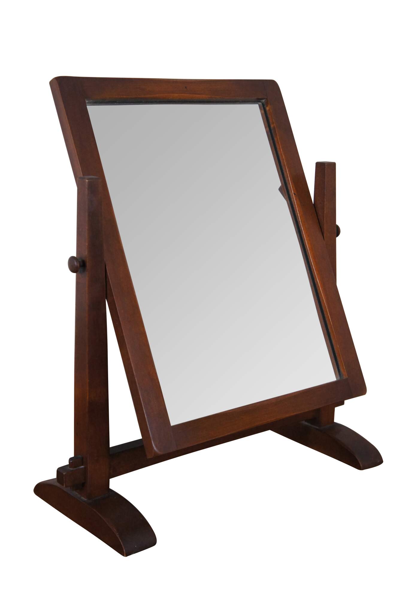 Antique Old Meeting House dresser / table top shaving or vanity mirror. Made of maple featuring Mission styling with swivel stand.