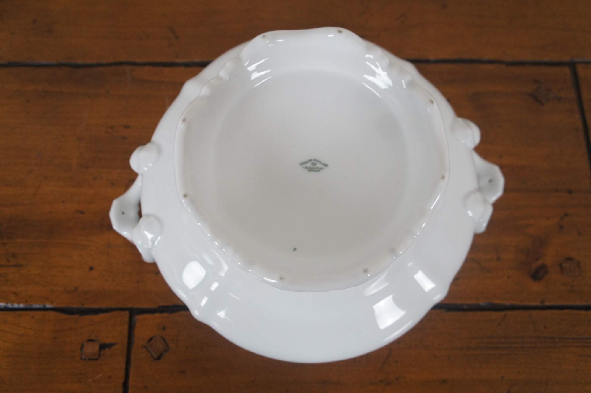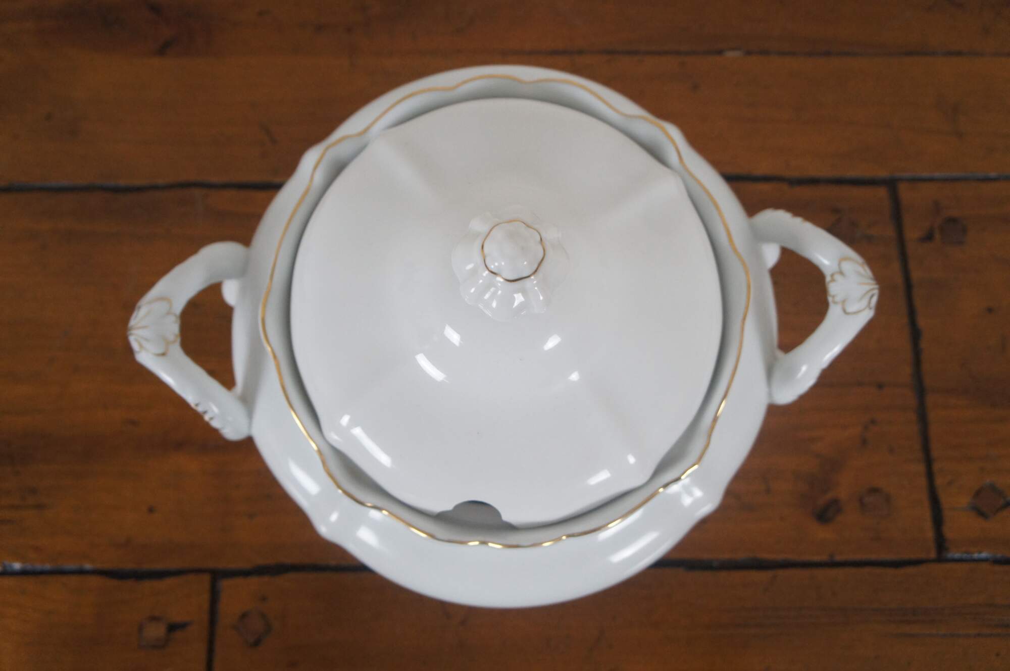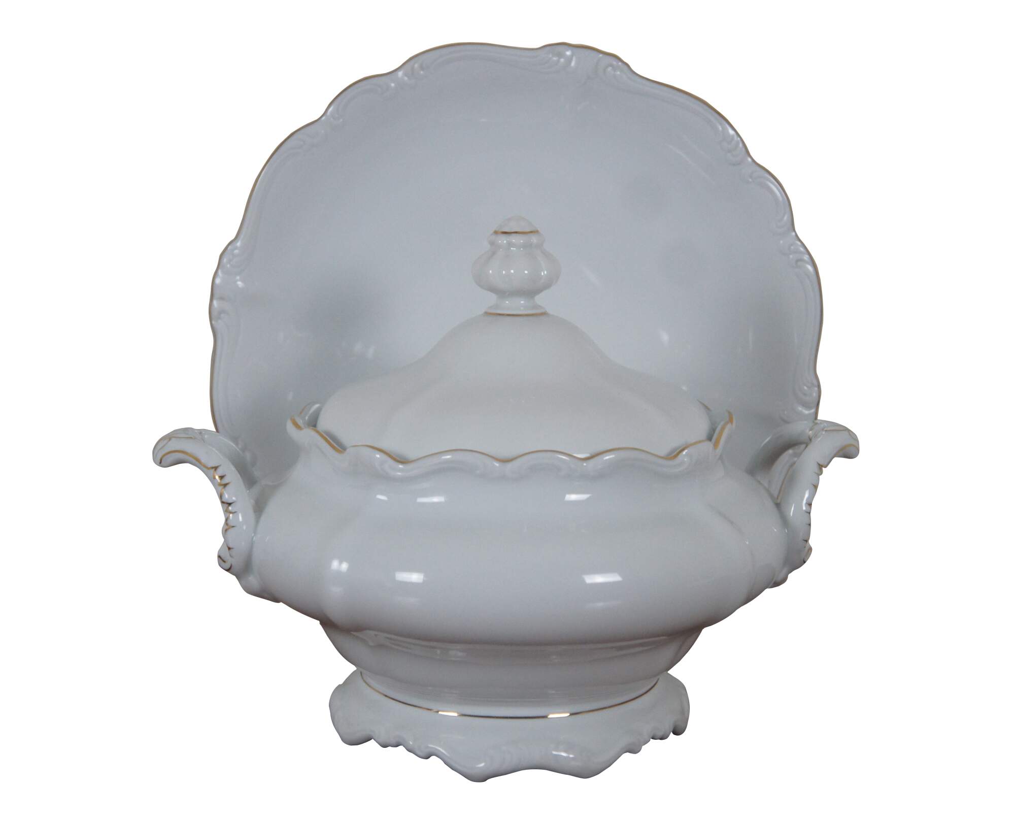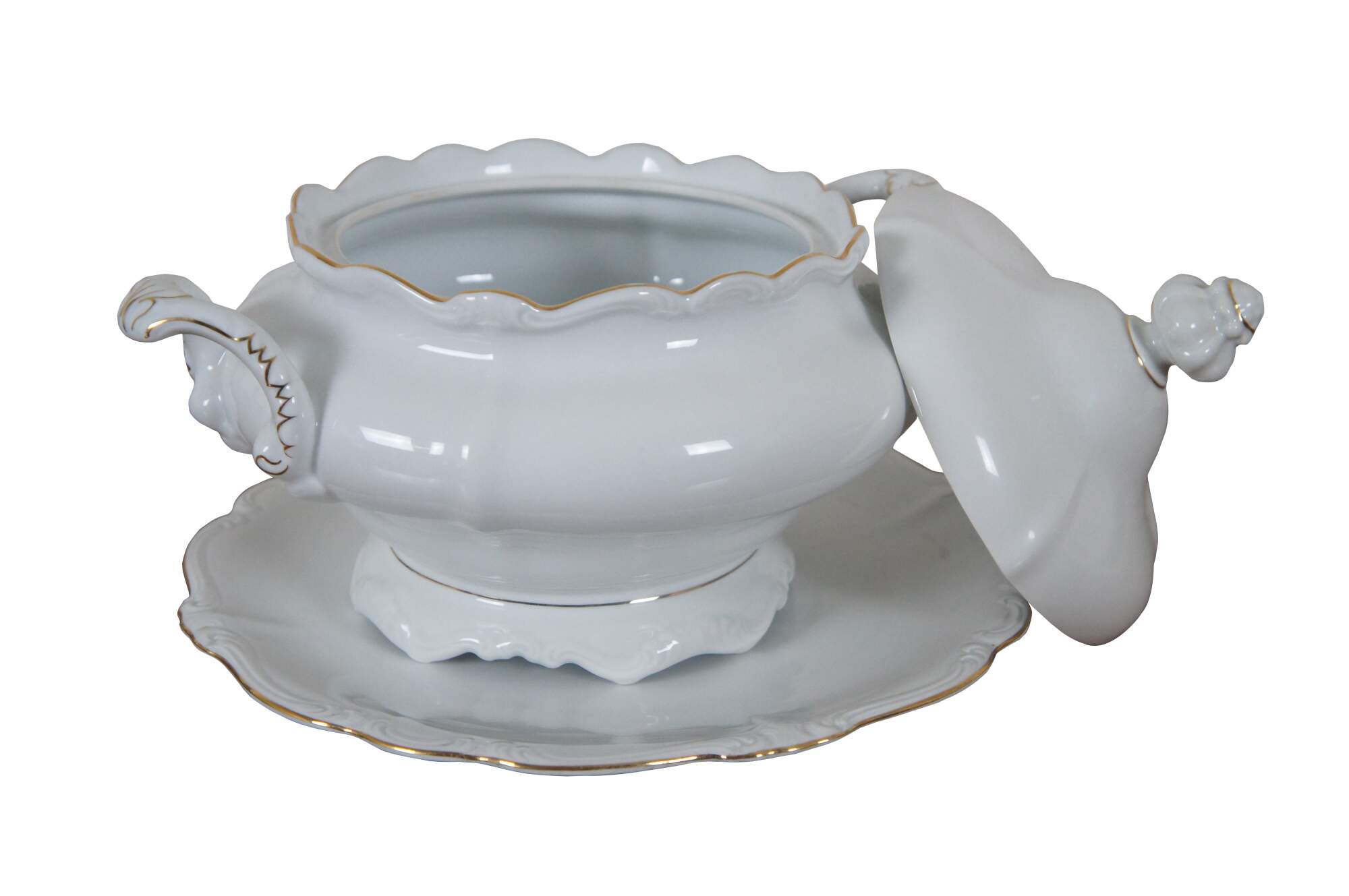 Vintage German Bavarian Johann Haviland scalloped white porcelain soup tureen with lid and under plate.