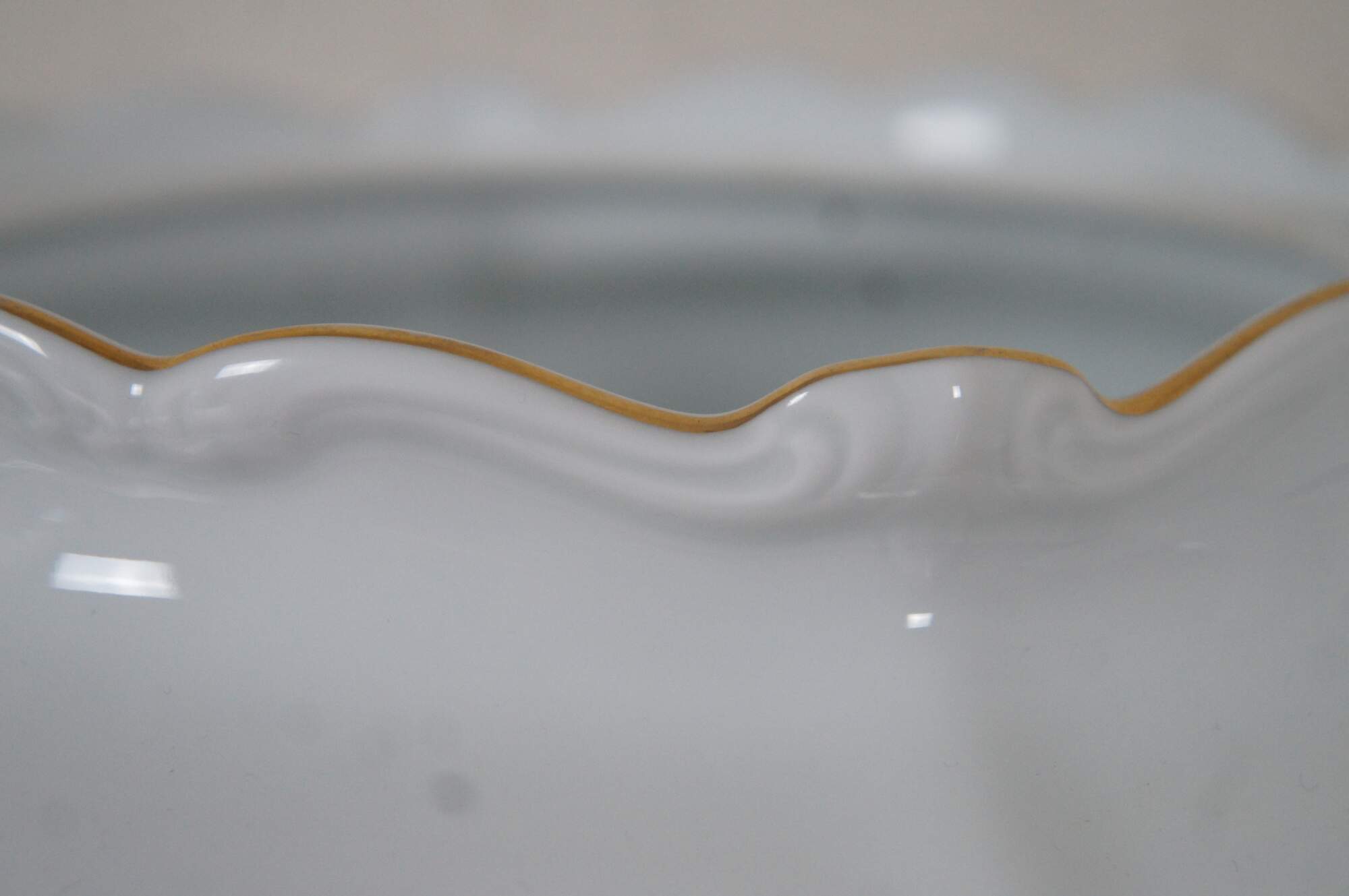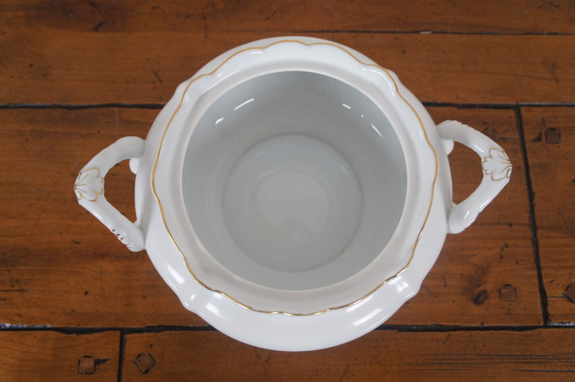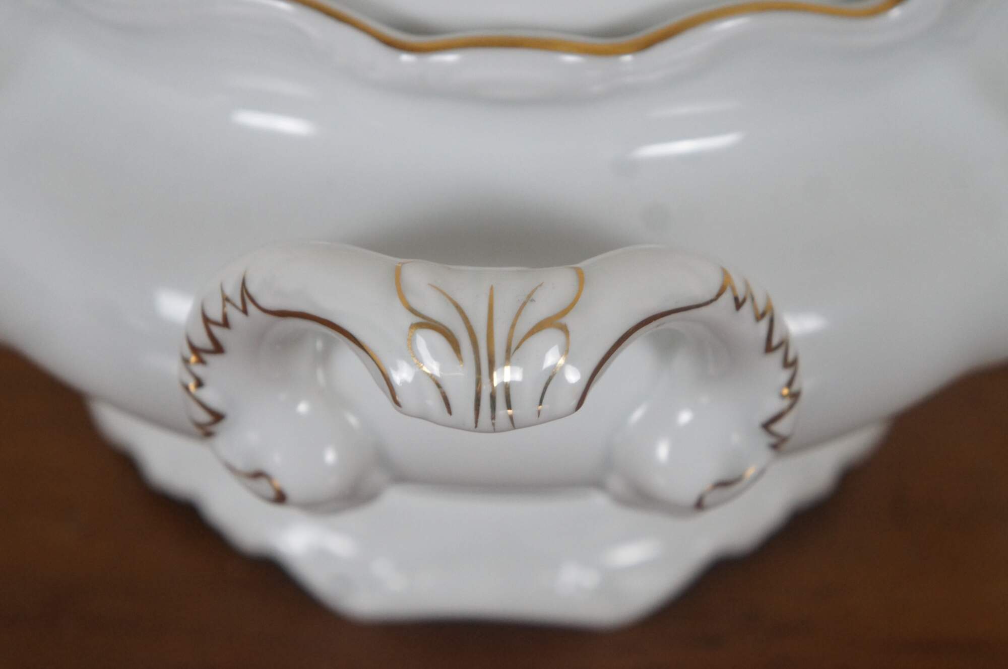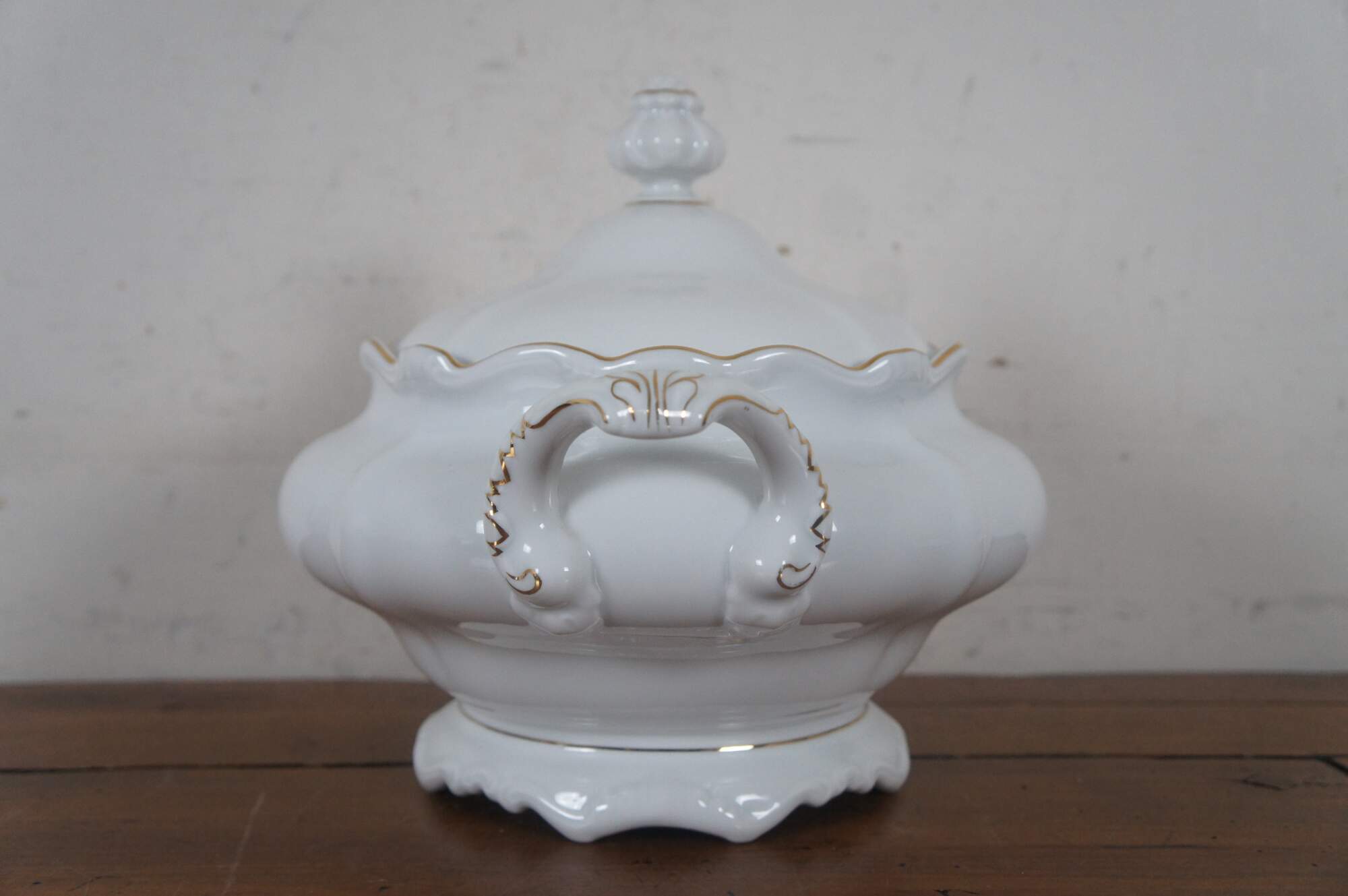 Vintage German Bavarian Johann Haviland scalloped white porcelain soup tureen with lid and under plate.