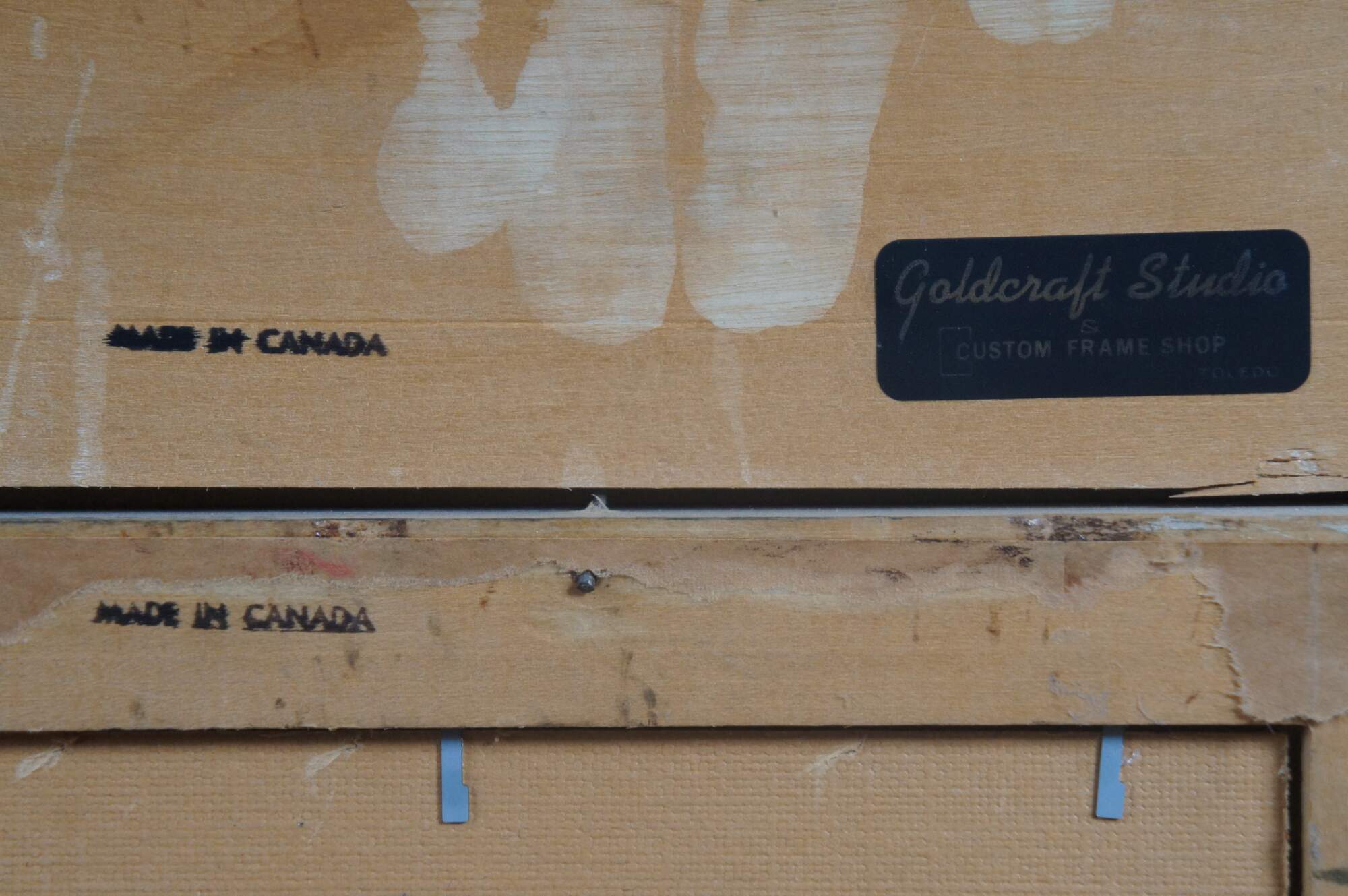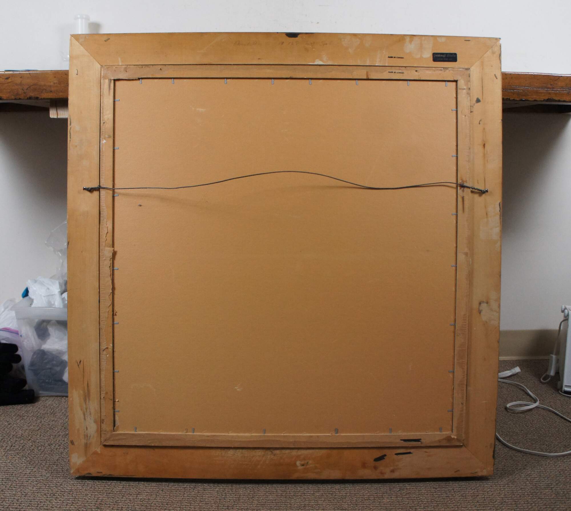 Good vintage condition - wear and distressing, undulation to canvas, cracking / spliting to frame.