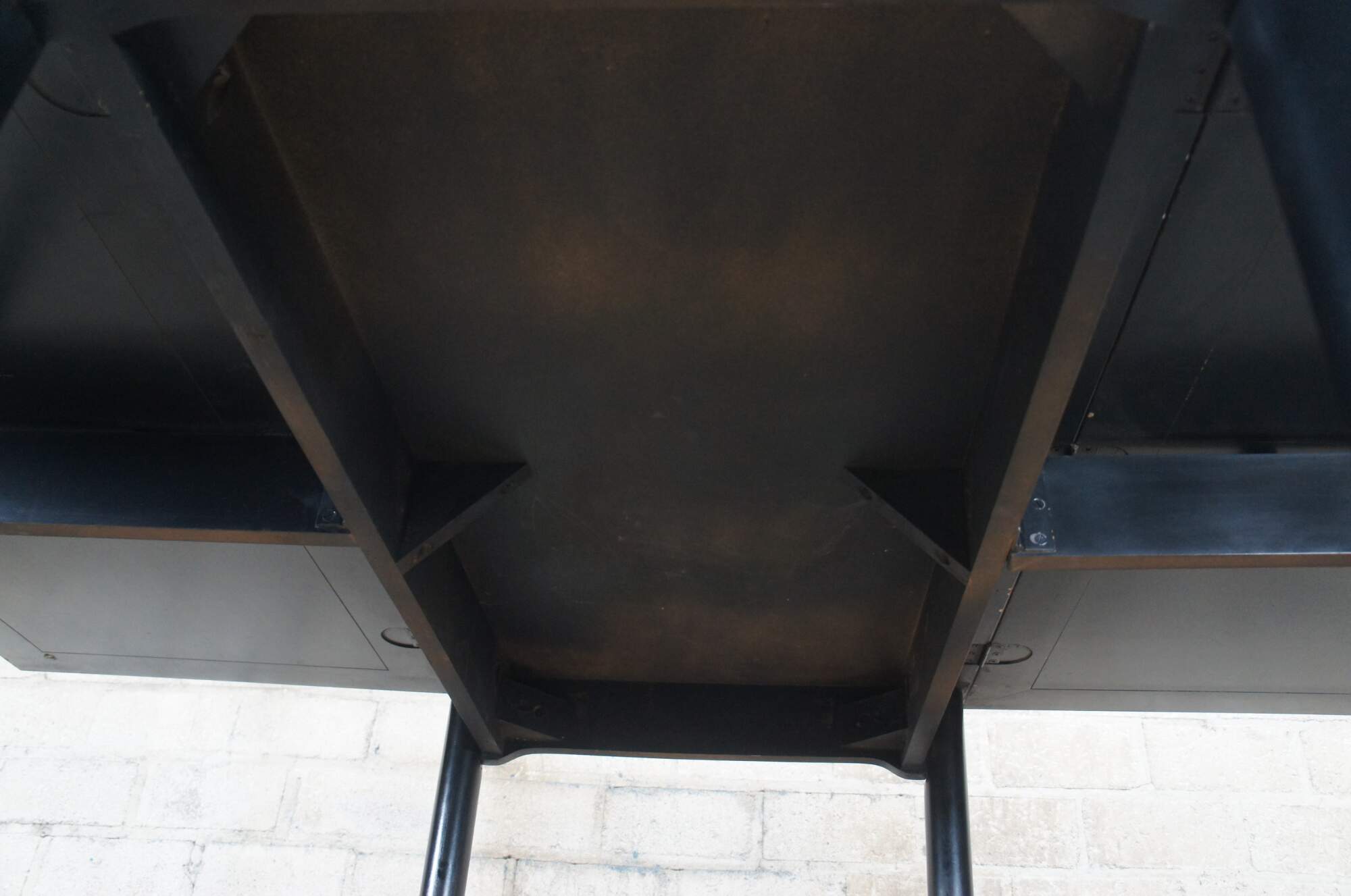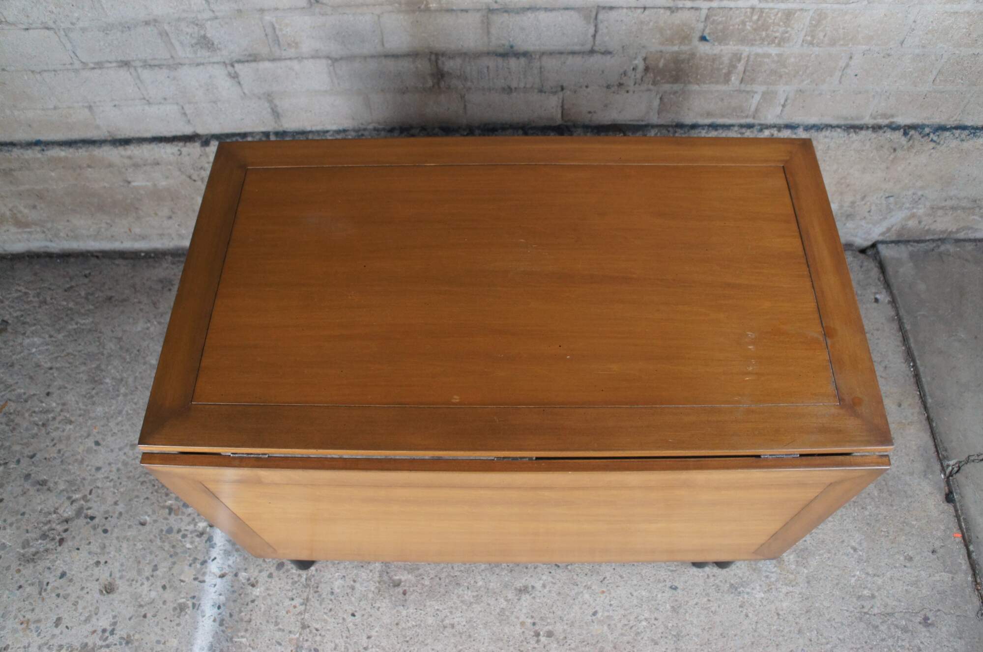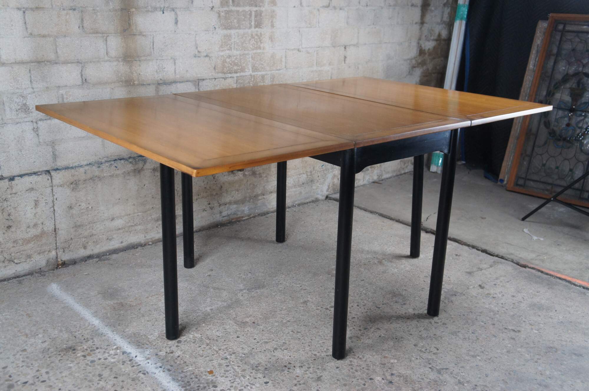 Vintage maple drop leaf rectangular dining table featuring black painted base.