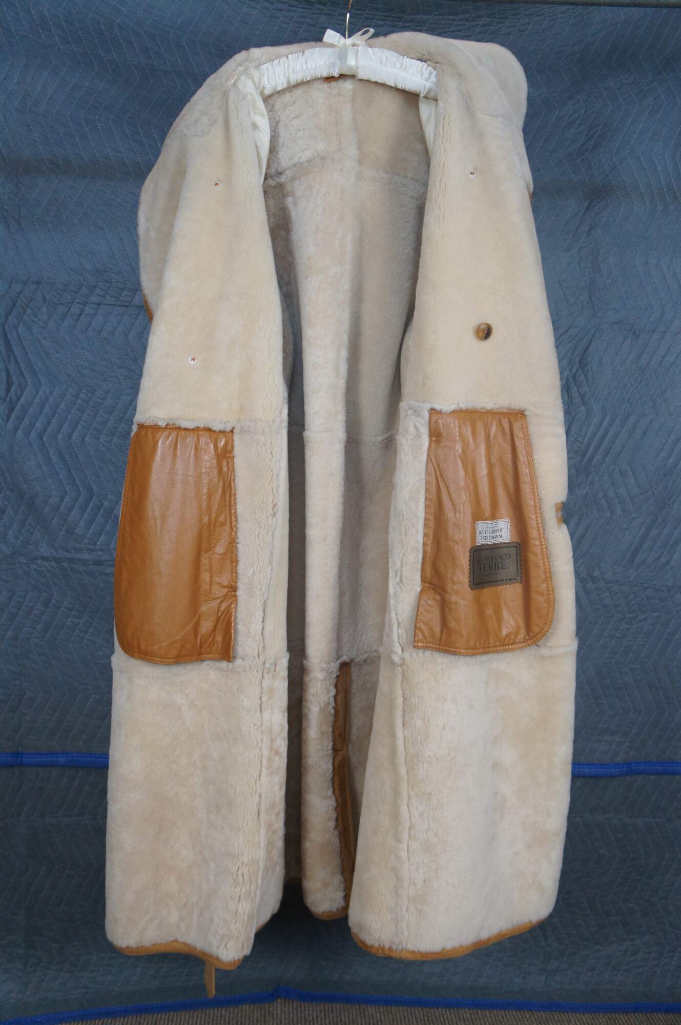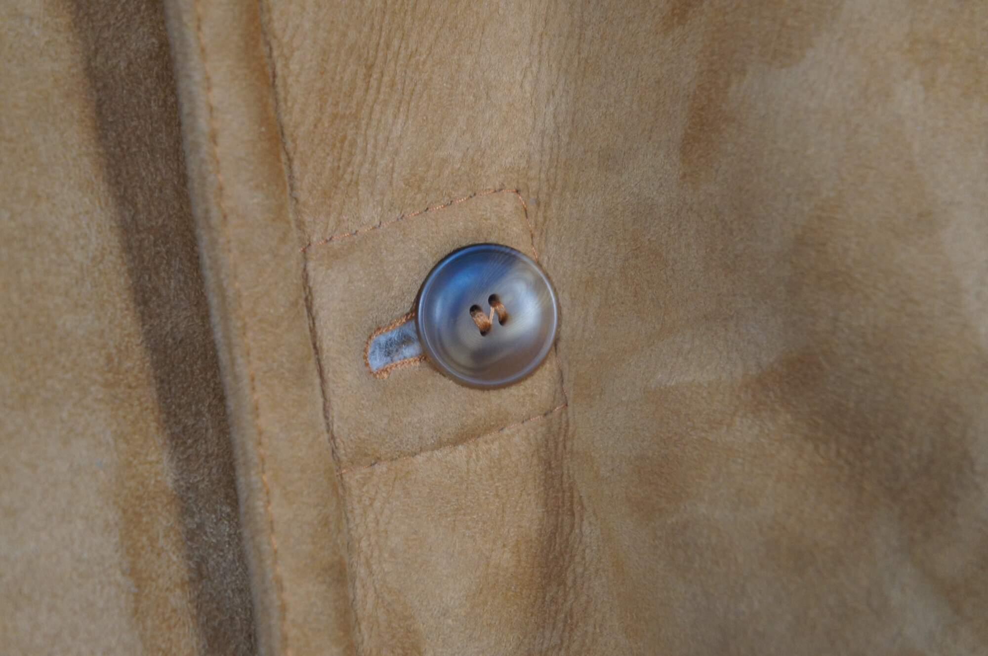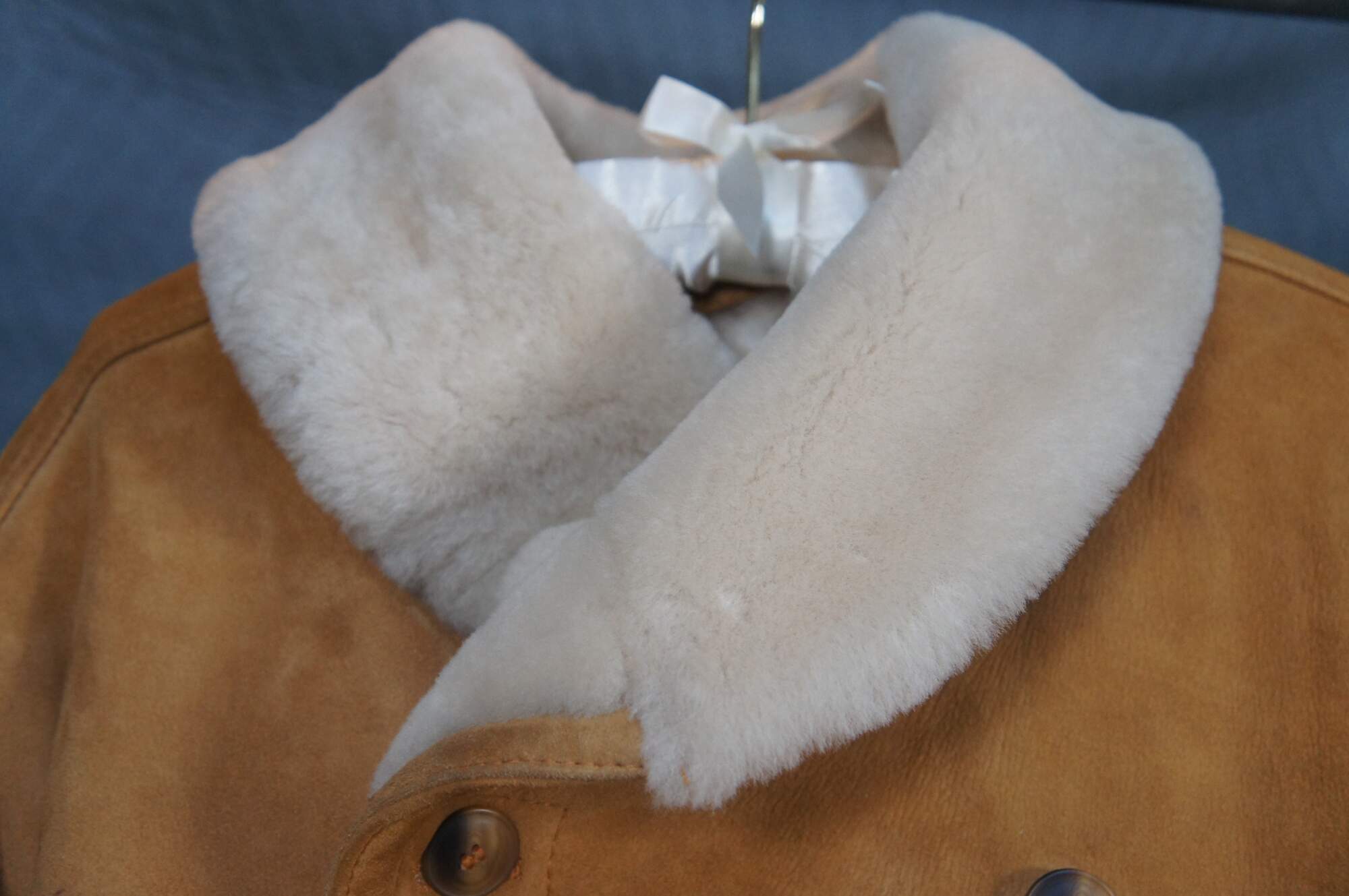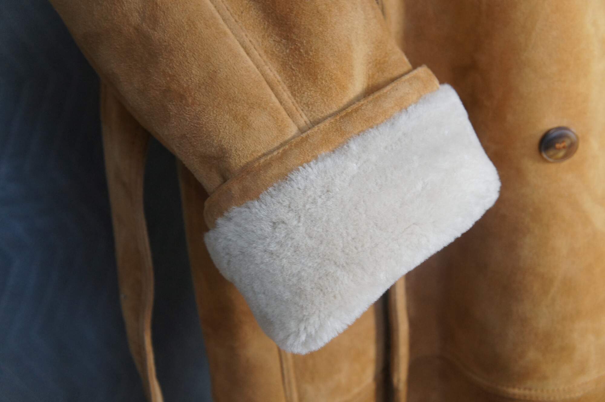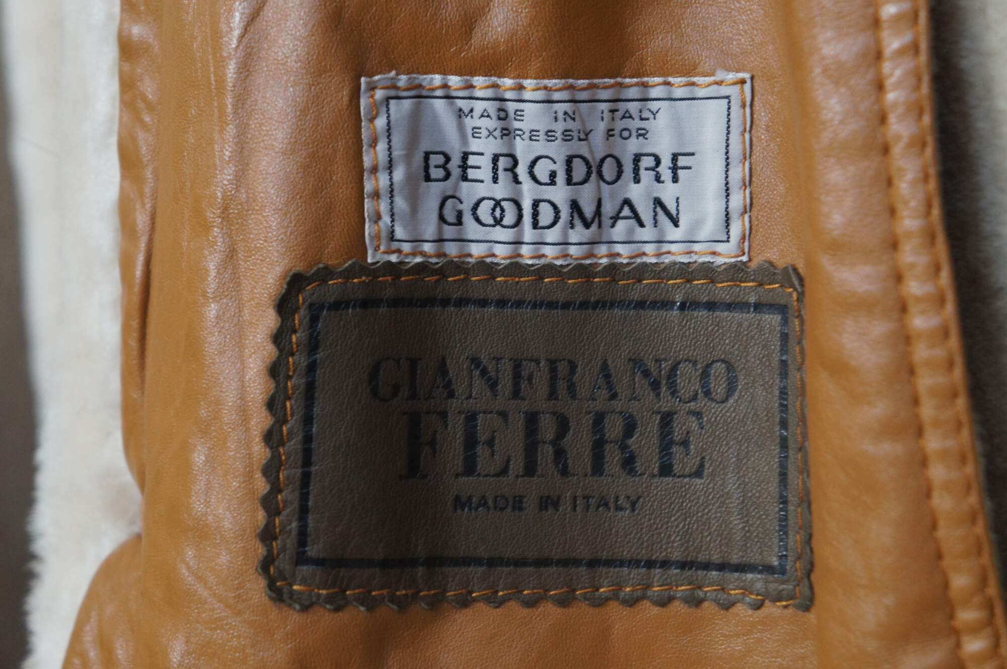 Rare vintage Gianfranco Ferre double breasted button closure lambswool / sheepskin / shearling leather sherpa trench coat or jacket featuring two pockets and buckle belt. Made in Italy for Bergdorf Goodman.